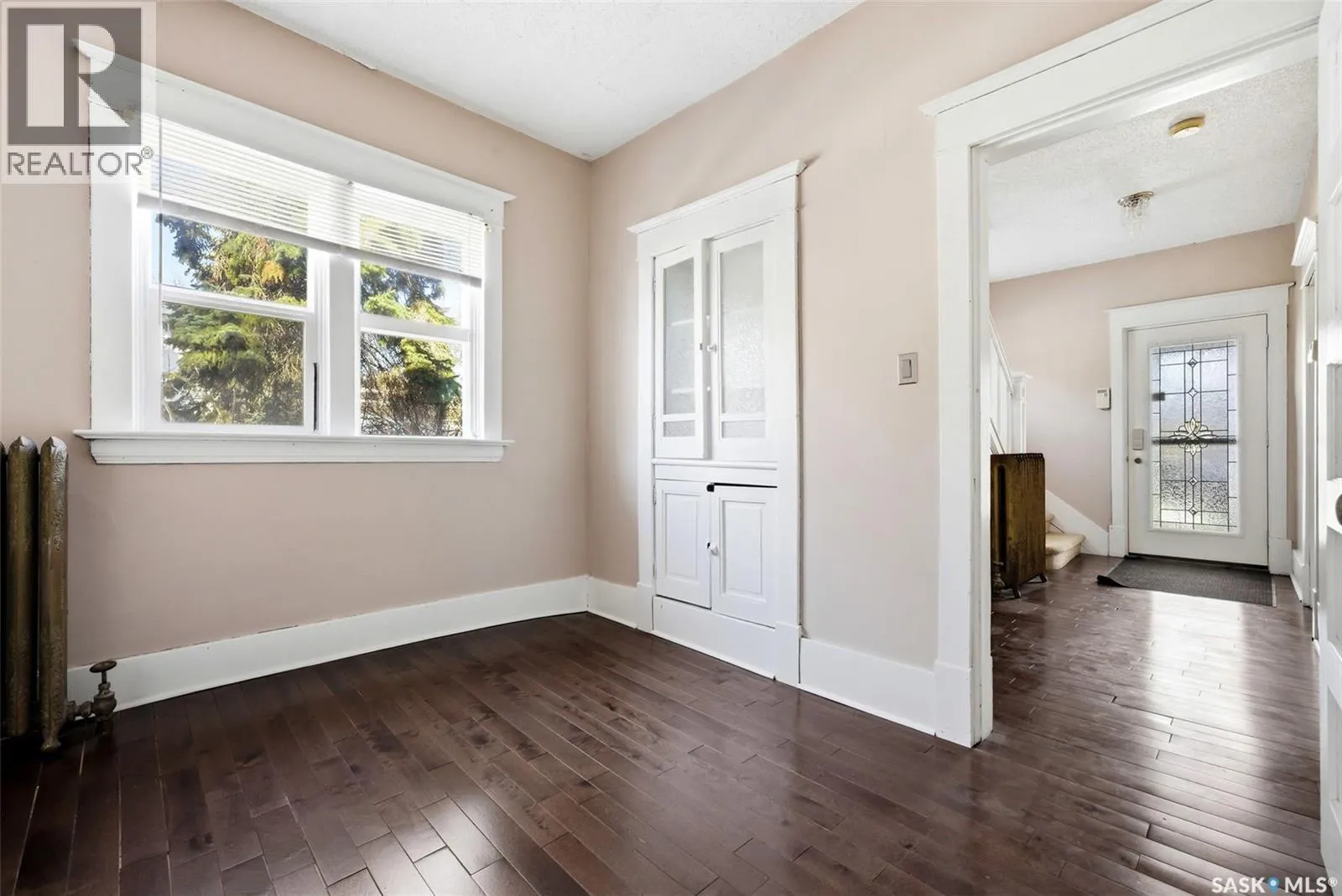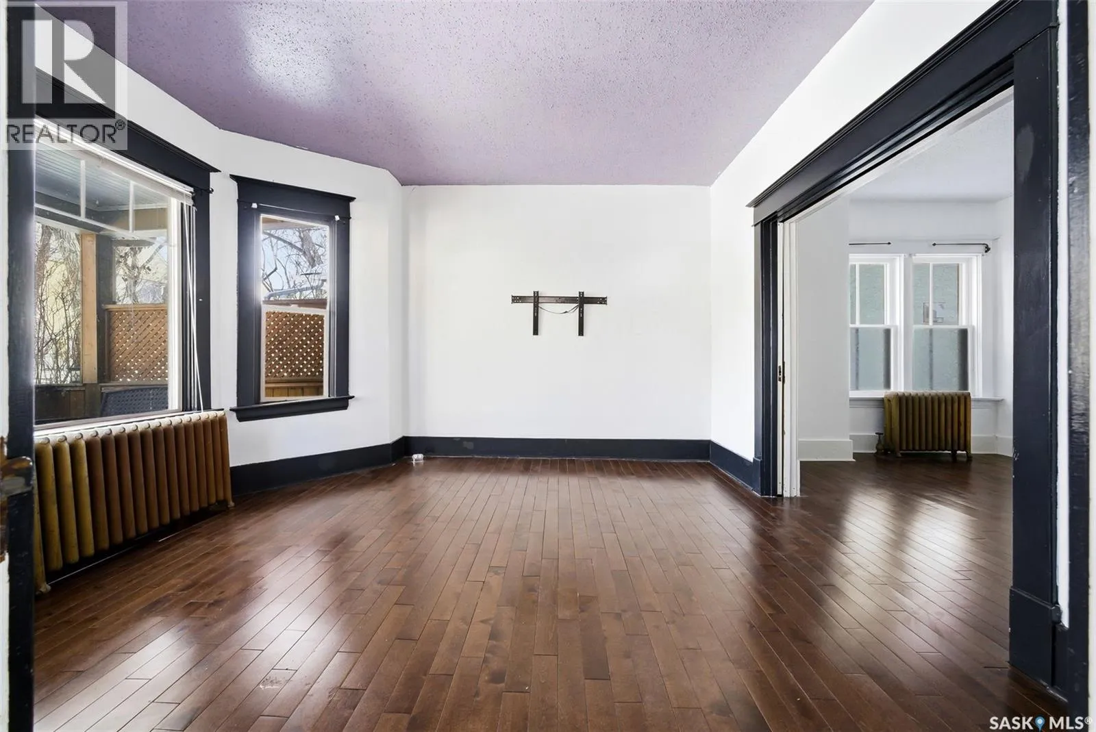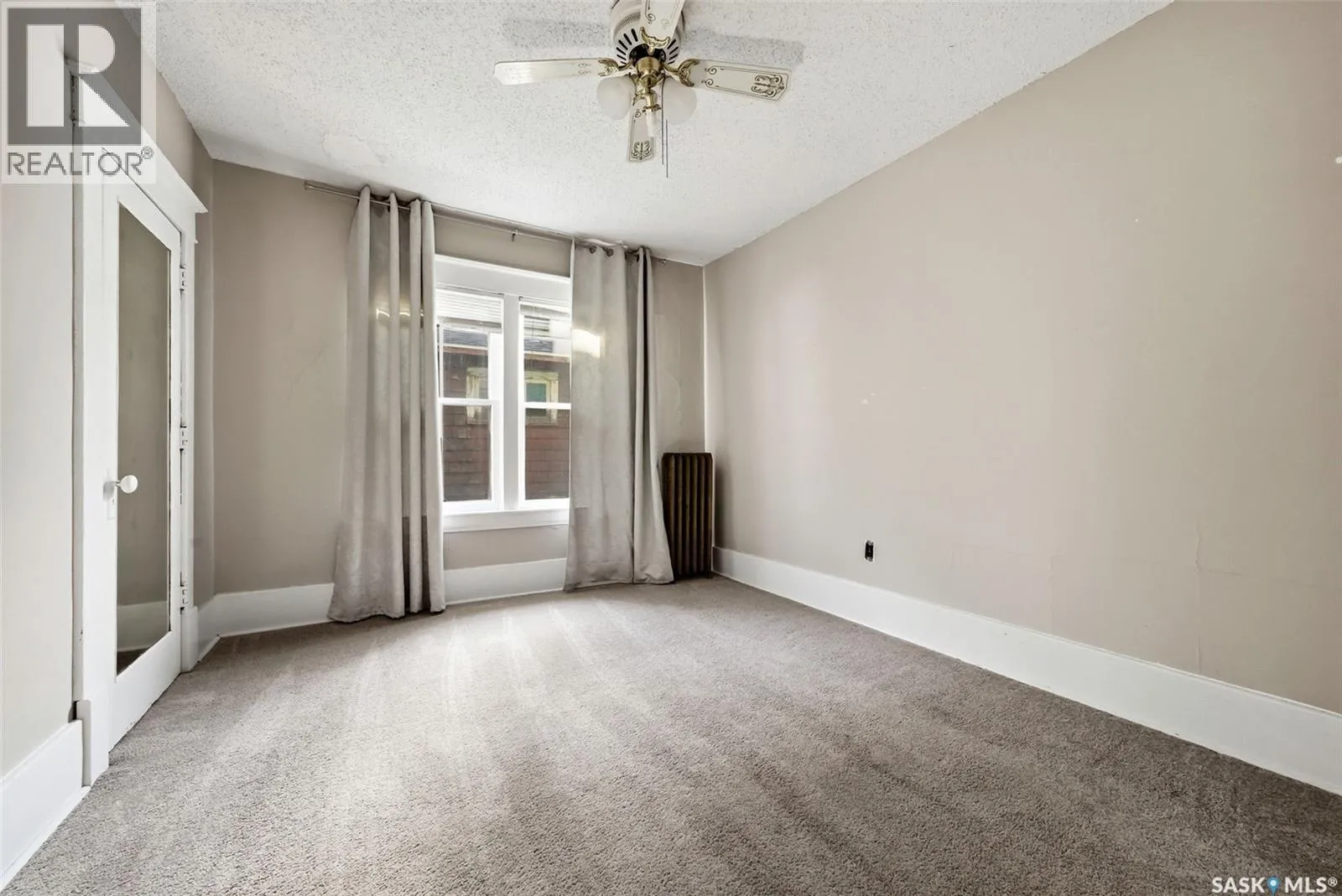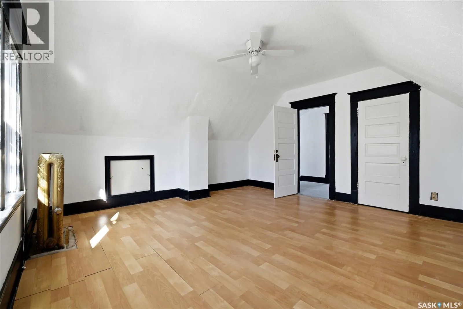 Welcome to this charming 2½ storey character home in the heart of Cathedral, just steps from trendy 13th Avenue, downtown amenities, and Schools. Offering 5 bedrooms and multiple living spaces, this home blends timeless character with thoughtful updates. The main floor features an updated kitchen with granite countertops and tiled flooring, a spacious dining room perfect for hosting, and a bright living room with classic trench doors leading to the foyer. Hardwood floors add warmth and character throughout. A cozy den with a decorative fireplace (not used in recent years) provides a great space for a home office or reading area. On the second level, youâll find three comfortable bedrooms, a 4-piece bathroom, and a convenient laundry area. The primary bedroom also features access to a private balcony deck. The third floor offers two additional versatile rooms, ideal for bedrooms, a studio, or additional living space. The basement has been professionally braced with two pony walls, and an engineerâs certificate available for peace of mind. Additional updates include shingles replaced in 2023 with a 50-year warranty, an updated 100-amp electrical panel, steam boiler system (2017), sump pump (2015), updated kitchen, bathrooms, flooring, and more. Outside, enjoy a rear deck off the kitchen, a fully fenced yard, and a private front deck, perfect for relaxing and enjoying this vibrant neighbourhood. A wonderful opportunity to own a spacious character home in one of Reginaâs most sought-after communities. *Some virtually staged photos* (id:27476)