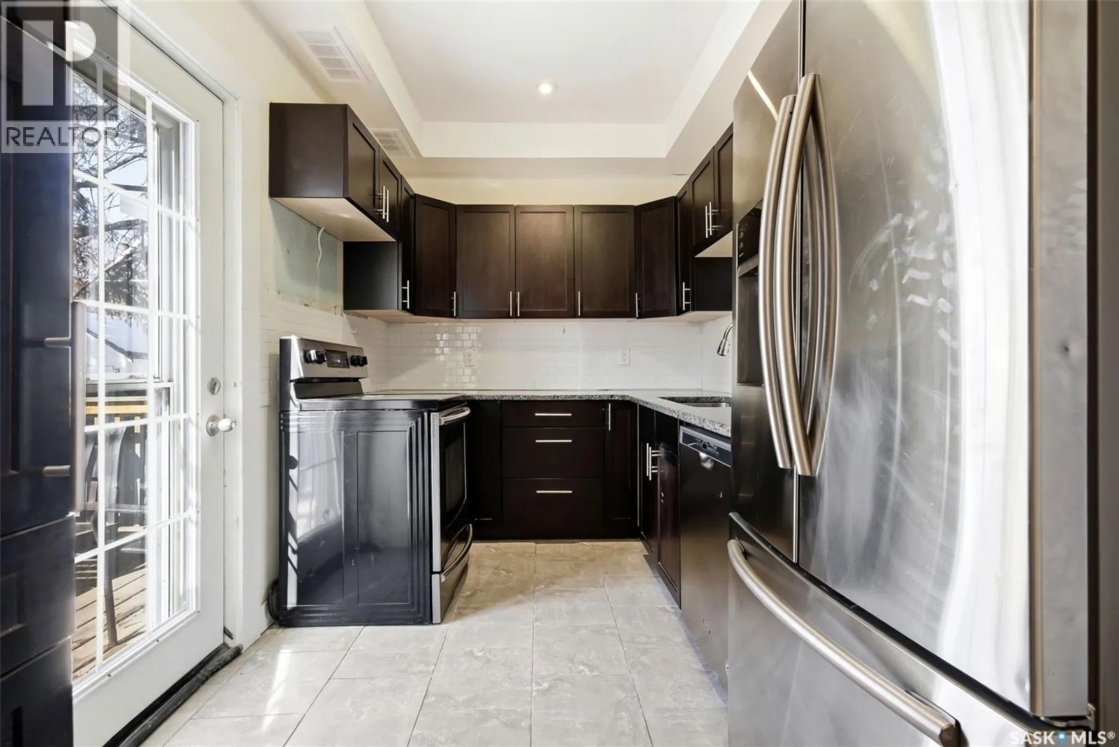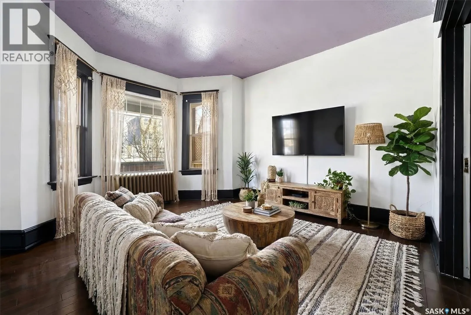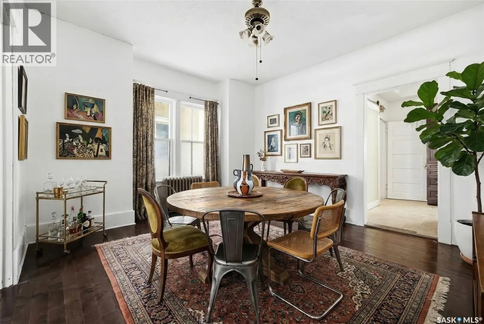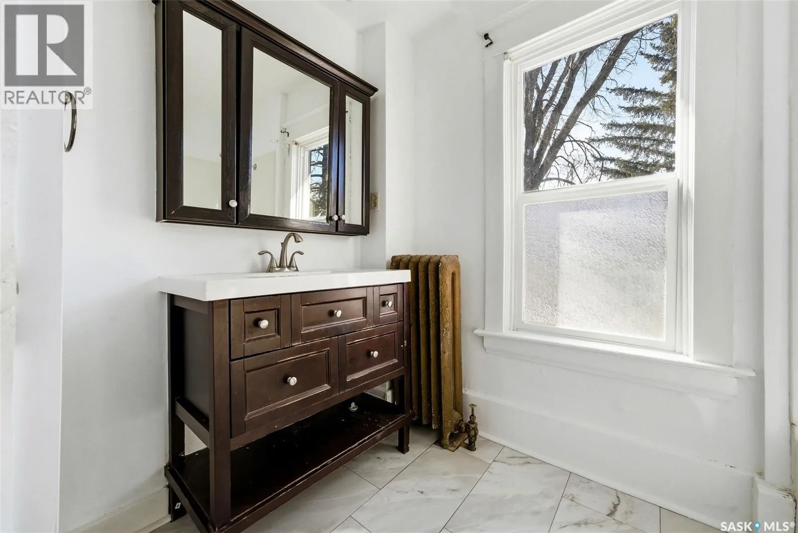 Welcome to this charming 2½ storey character home in the heart of Cathedral, just steps from trendy 13th Avenue, downtown amenities, and Schools. Offering 5 bedrooms and multiple living spaces, this home blends timeless character with thoughtful updates. The main floor features an updated kitchen with granite countertops and tiled flooring, a spacious dining room perfect for hosting, and a bright living room with classic trench doors leading to the foyer. Hardwood floors add warmth and character throughout. A cozy den with a decorative fireplace (not used in recent years) provides a great space for a home office or reading area. On the second level, youâll find three comfortable bedrooms, a 4-piece bathroom, and a convenient laundry area. The primary bedroom also features access to a private balcony deck. The third floor offers two additional versatile rooms, ideal for bedrooms, a studio, or additional living space. The basement has been professionally braced with two pony walls, and an engineerâs certificate available for peace of mind. Additional updates include shingles replaced in 2023 with a 50-year warranty, an updated 100-amp electrical panel, steam boiler system (2017), sump pump (2015), updated kitchen, bathrooms, flooring, and more. Outside, enjoy a rear deck off the kitchen, a fully fenced yard, and a private front deck, perfect for relaxing and enjoying this vibrant neighbourhood. A wonderful opportunity to own a spacious character home in one of Reginaâs most sought-after communities. *Some virtually staged photos* (id:27476)