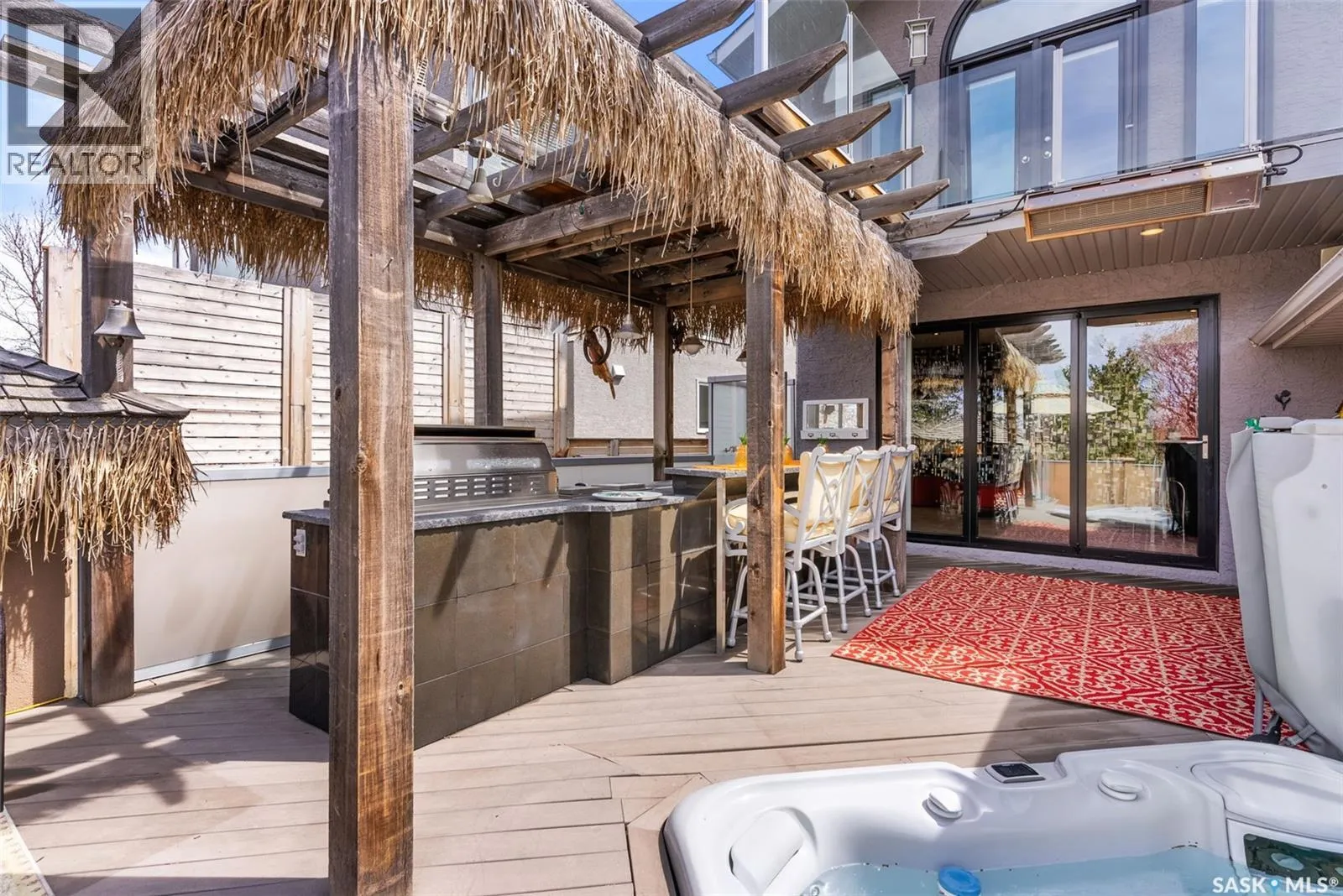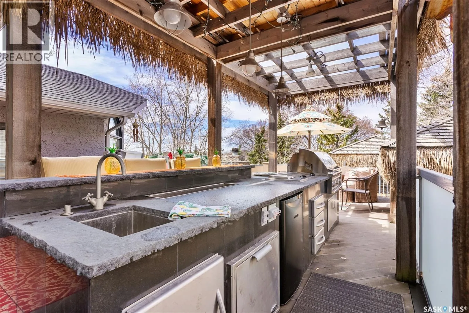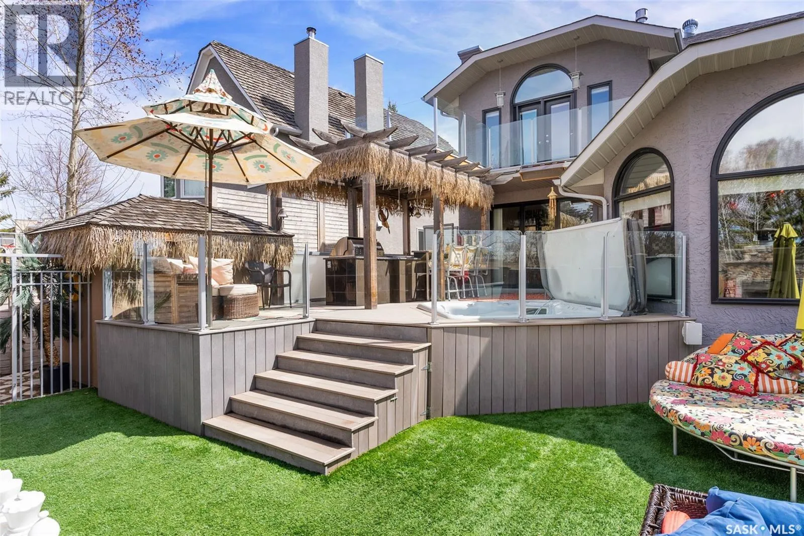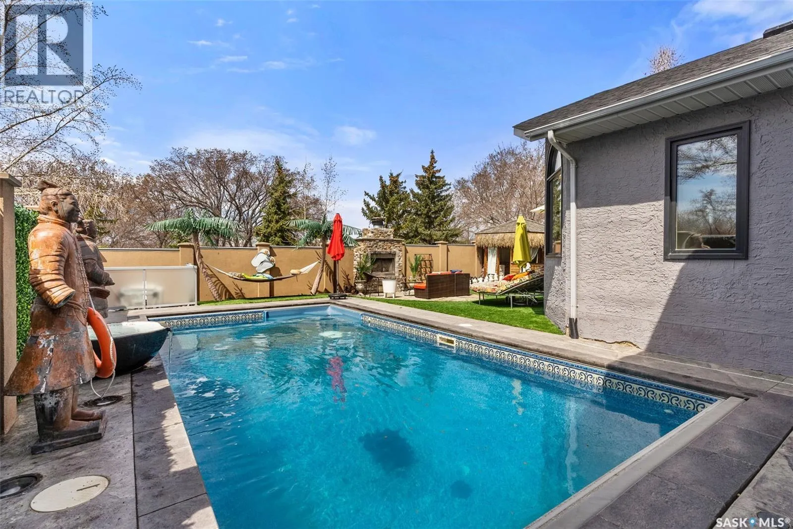 This extraordinary executive residence, masterfully crafted by Sunwest Homes, offers 3,487 sq. ft. of refined living with breathtaking unobstructed views. A striking Tyndall stone façade welcomes you into a grand foyer and elegant living room anchored by a Renaissance Rumford wood-burning fireplace adorned with exquisite Italian marble from Florence. The main level features a sophisticated private office with wet-bar rough-in, a formal dining room highlighted by a dramatic 12-foot reverse tapered ceiling overlooking the resort-style backyard, and a spectacular custom kitchen by Pilandri Bros. showcasing bold Ferrari-red cabinetry and premium appliances including Sub-Zero refrigeration, dual Wolf built-in ovens, a Fisher & Paykel gas range, dual dishwashers, and a built-in Miele espresso system. The inviting family room with gas fireplace opens through impressive Nano doors to a private outdoor sanctuary complete with a fully equipped kitchen, tiki bar, gas BBQ, hot tub, outdoor fireplace, and a sparkling salt-water in-ground pool (approx. 16Ã32) has waterfall features and with potential to reinstall elegant laminar jets, heated by natural gas. Additional conveniences include main floor laundry, a practical boot room, and direct access to a heated 24Ã23 garage with a dog wash station. The 2 floor has 4-bedrooms including a luxurious primary retreat with a private deck overlooking the manicured yard, park, and environmental reserve, along with a spa-inspired ensuite featuring a deep soaker tub, steam shower, and recently replaced Grohe toilet and faucets.The fully finished lower level enhances the home with a private theatre room, expansive craft studio, fifth bedroom, full bath, fitness room with ballet bar, relaxing infrared sauna, and ample storage. Completing this remarkable residence is a whole-home audio/visual system and a reliable standby generator by Cumminsâan exceptional and rare offering designed for luxurious living and unforgettable entertaining. (id:27476)