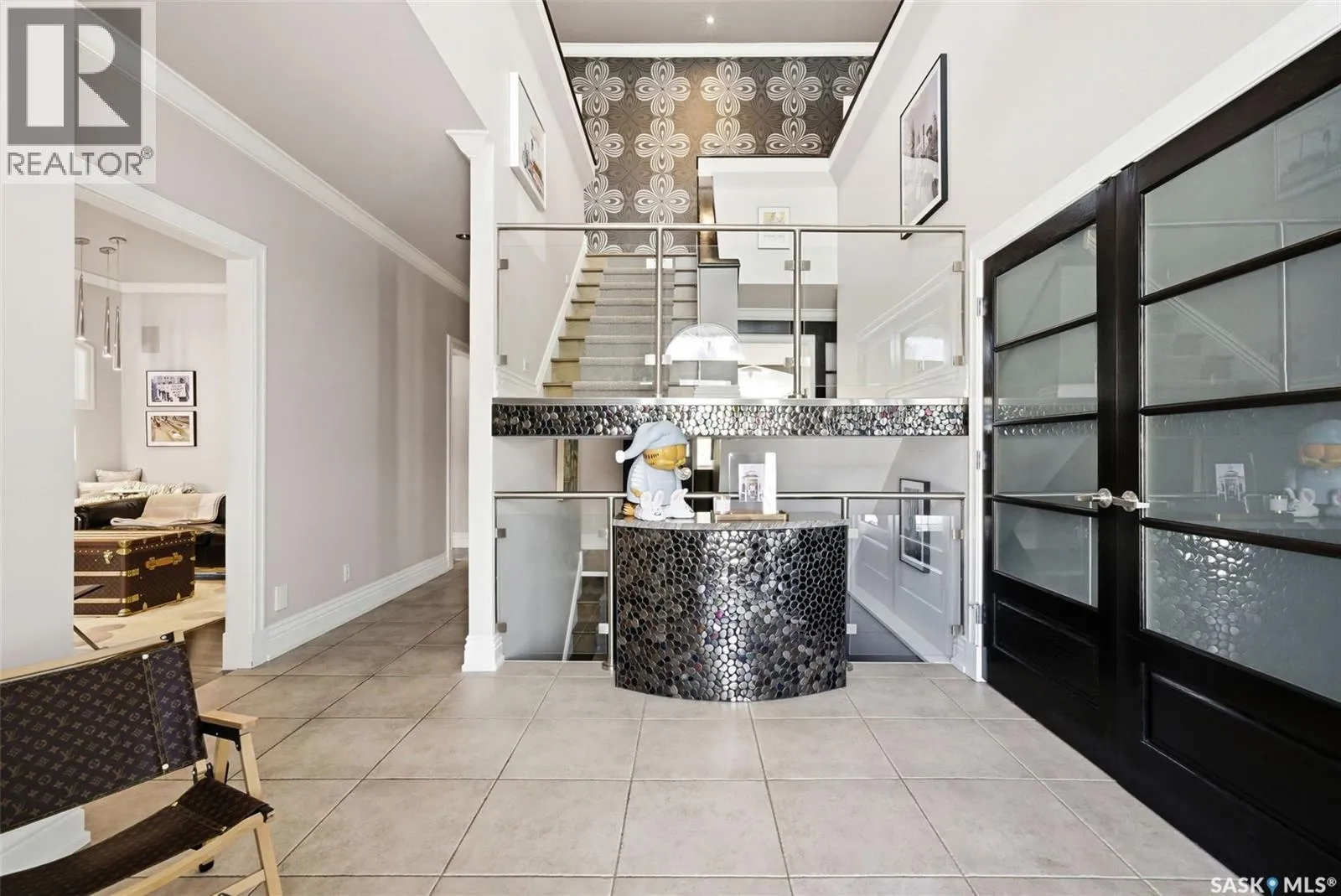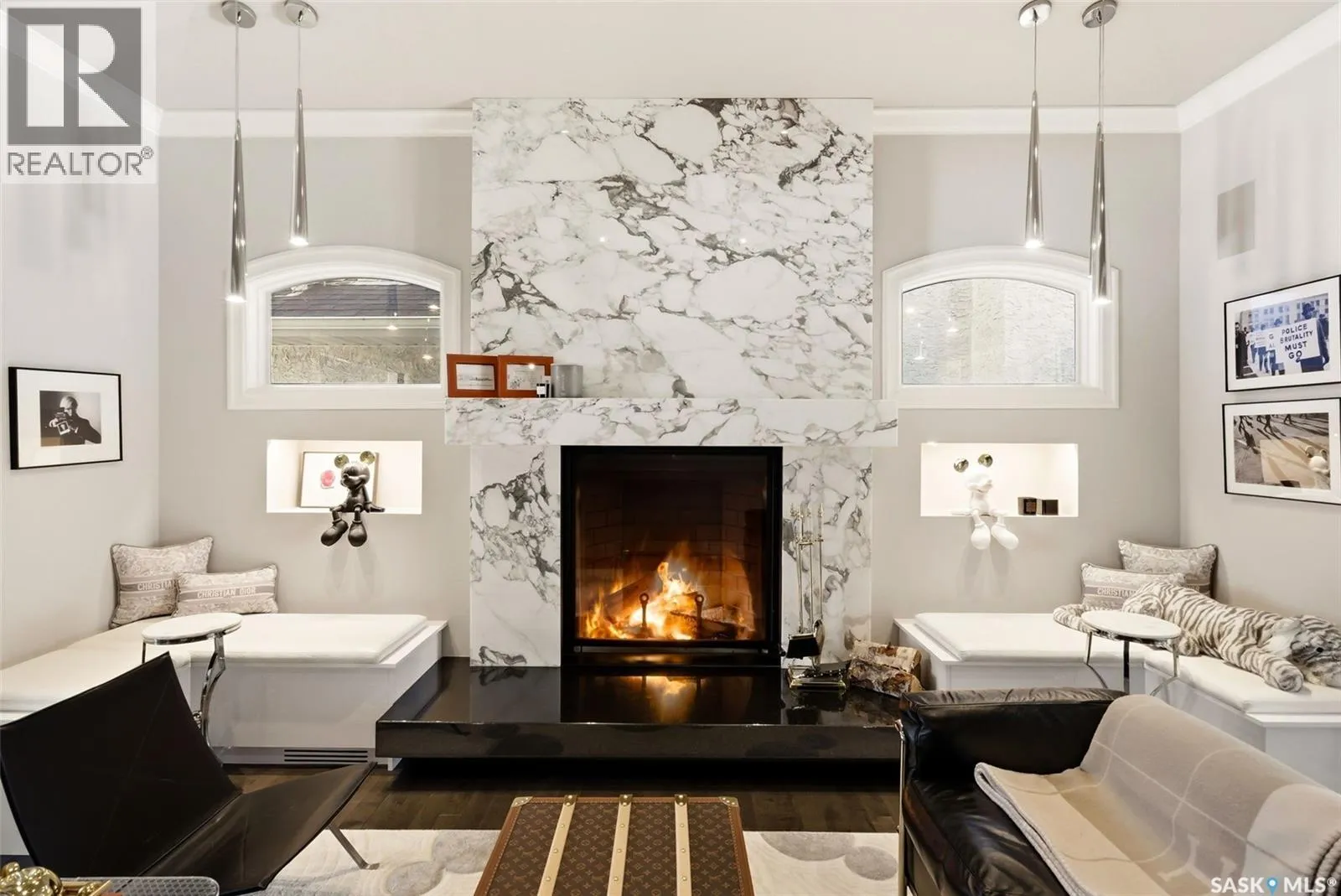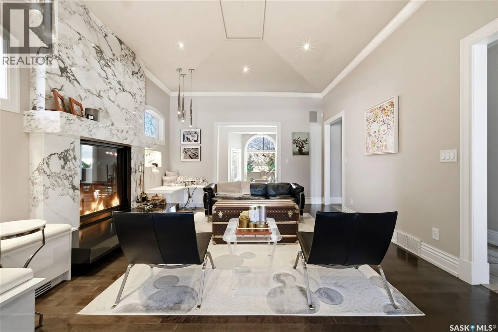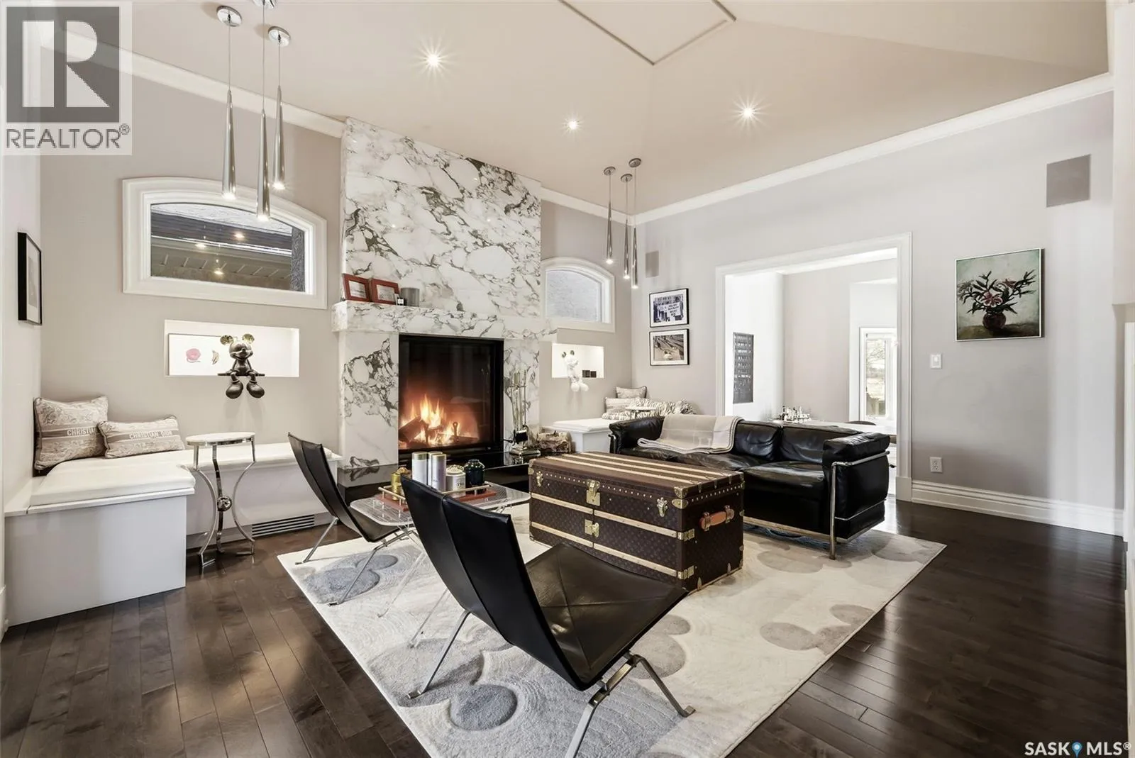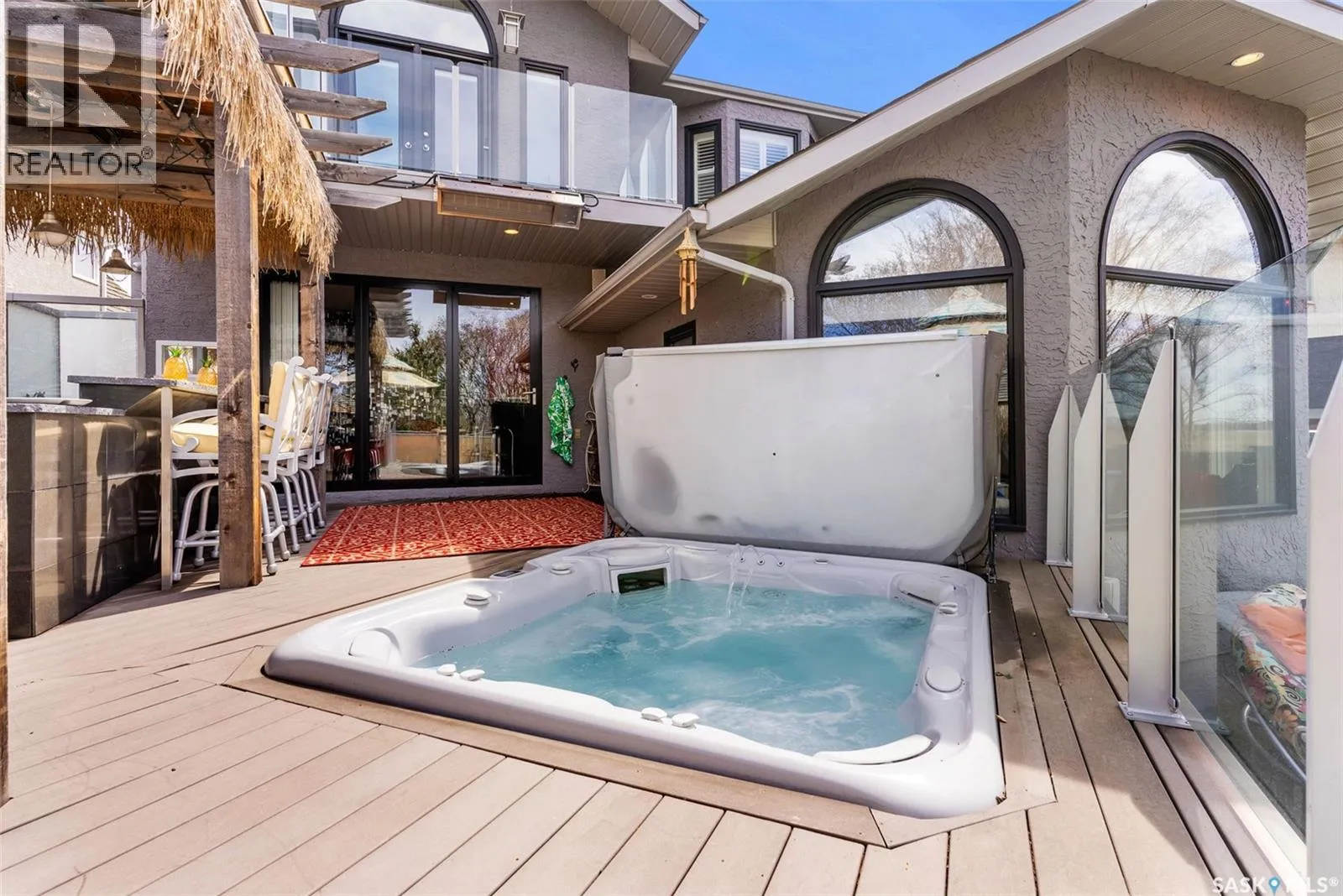 This extraordinary executive residence, masterfully crafted by Sunwest Homes, offers 3,487 sq. ft. of refined living with breathtaking unobstructed views. A striking Tyndall stone façade welcomes you into a grand foyer and elegant living room anchored by a Renaissance Rumford wood-burning fireplace adorned with exquisite Italian marble from Florence. The main level features a sophisticated private office with wet-bar rough-in, a formal dining room highlighted by a dramatic 12-foot reverse tapered ceiling overlooking the resort-style backyard, and a spectacular custom kitchen by Pilandri Bros. showcasing bold Ferrari-red cabinetry and premium appliances including Sub-Zero refrigeration, dual Wolf built-in ovens, a Fisher & Paykel gas range, dual dishwashers, and a built-in Miele espresso system. The inviting family room with gas fireplace opens through impressive Nano doors to a private outdoor sanctuary complete with a fully equipped kitchen, tiki bar, gas BBQ, hot tub, outdoor fireplace, and a sparkling salt-water in-ground pool (approx. 16Ã32) has waterfall features and with potential to reinstall elegant laminar jets, heated by natural gas. Additional conveniences include main floor laundry, a practical boot room, and direct access to a heated 24Ã23 garage with a dog wash station. The 2 floor has 4-bedrooms including a luxurious primary retreat with a private deck overlooking the manicured yard, park, and environmental reserve, along with a spa-inspired ensuite featuring a deep soaker tub, steam shower, and recently replaced Grohe toilet and faucets.The fully finished lower level enhances the home with a private theatre room, expansive craft studio, fifth bedroom, full bath, fitness room with ballet bar, relaxing infrared sauna, and ample storage. Completing this remarkable residence is a whole-home audio/visual system and a reliable standby generator by Cumminsâan exceptional and rare offering designed for luxurious living and unforgettable entertaining. (id:27476)