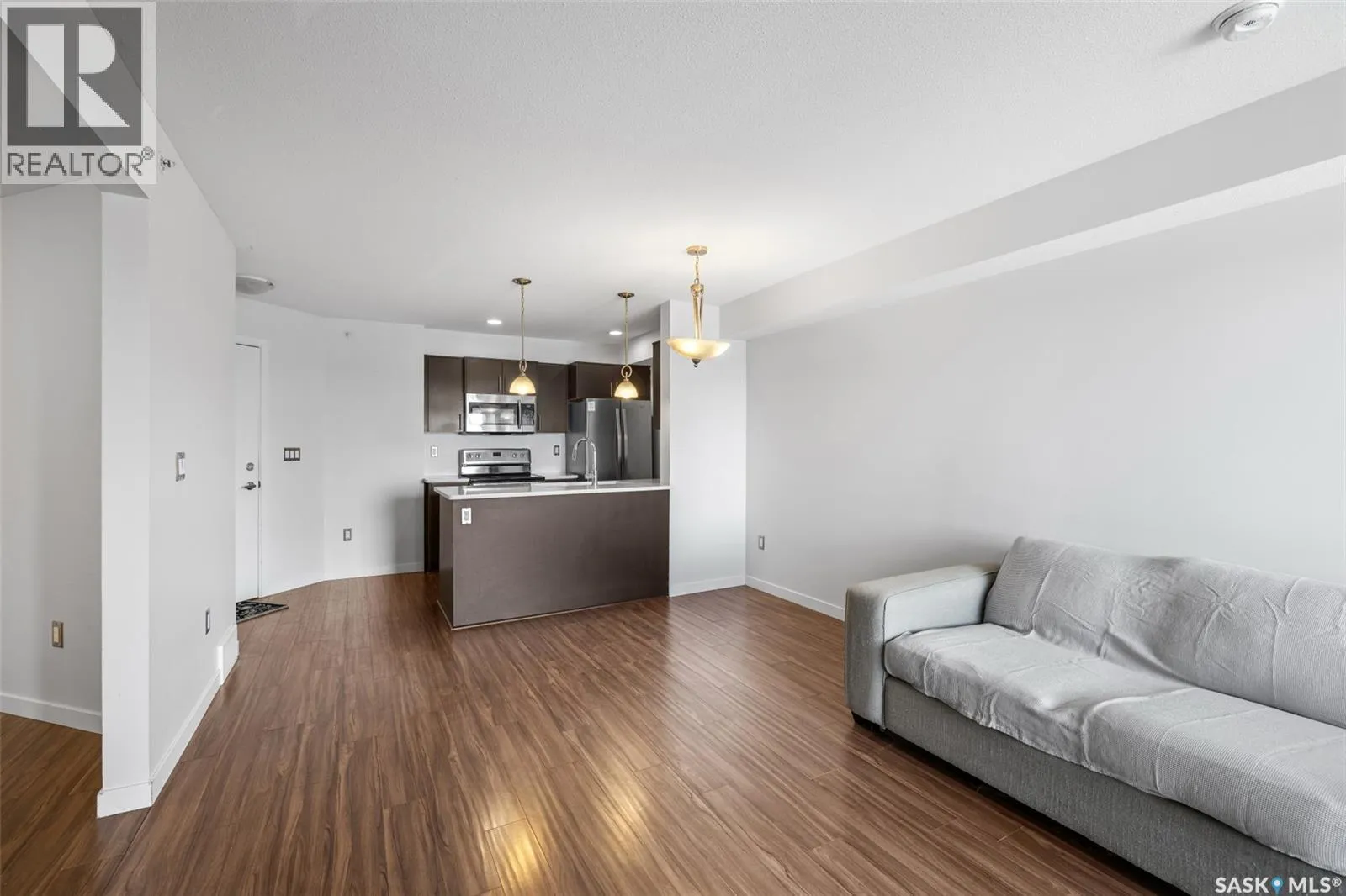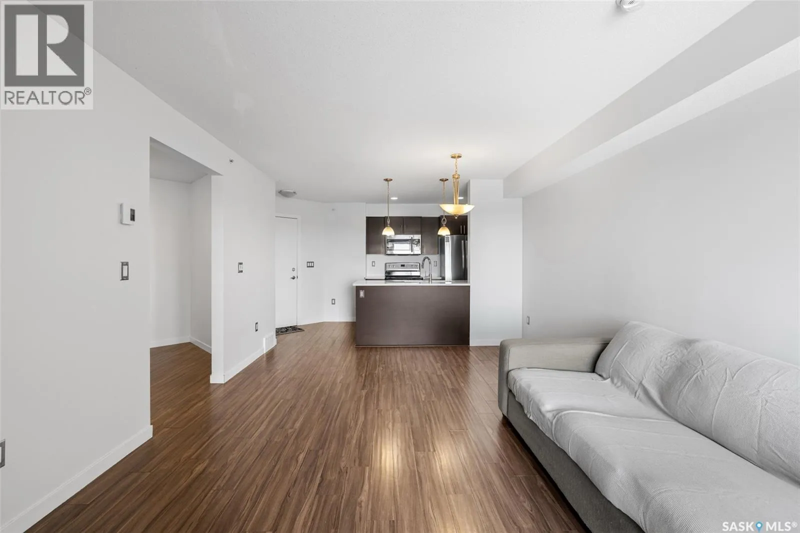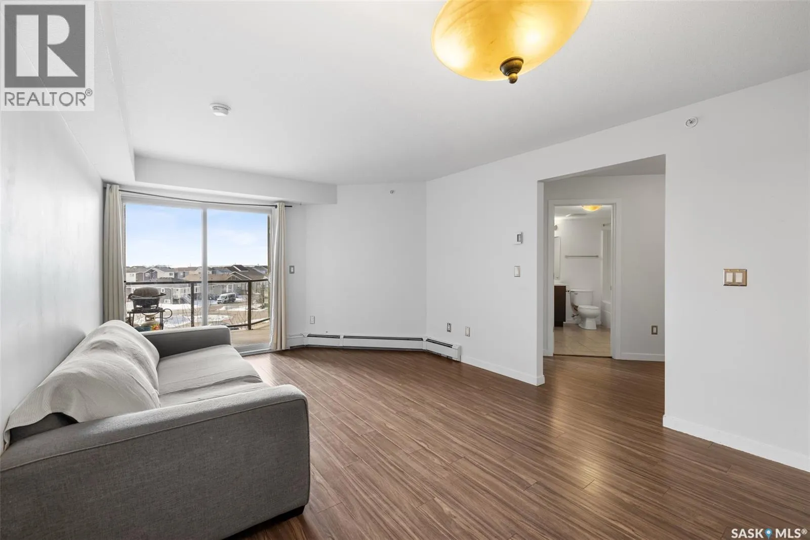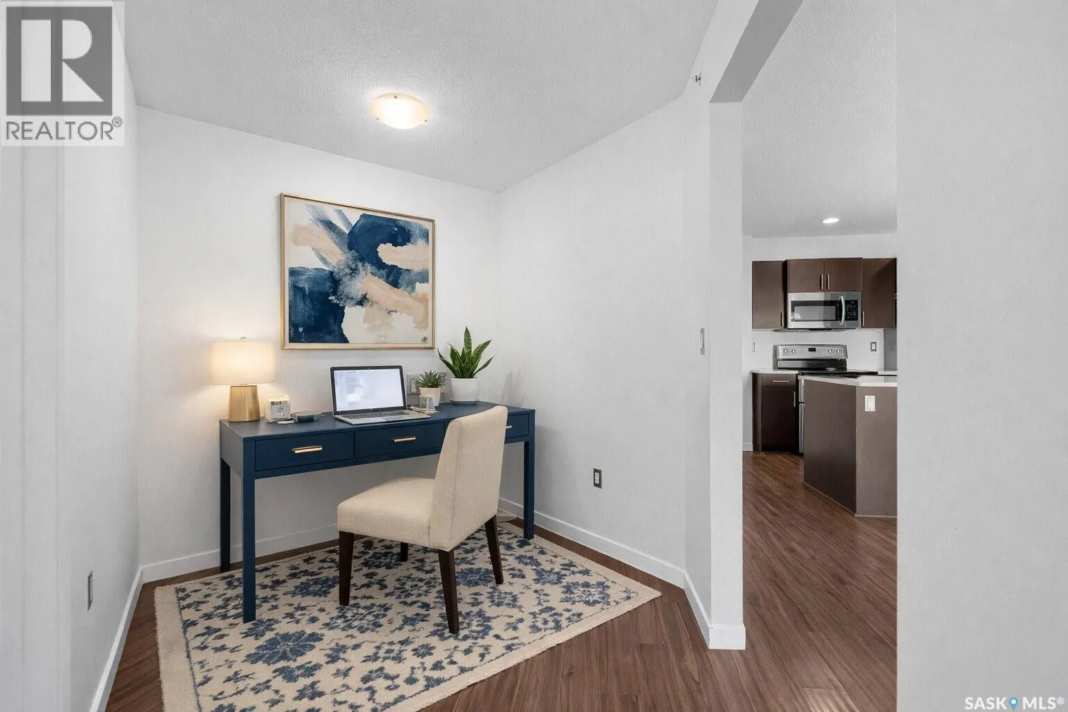 Welcome to #1414 â 5500 Mitchinson Way, located on the fourth floor of this well-maintained Harbour Landing complex. The moment you step inside, youâll notice this isnât your typical condo. It offers added privacy and a unique layout that truly stands out. The open-concept living space is warm and inviting, featuring laminate and tile flooring throughout, stone countertops, stainless steel appliances, and a functional eat-up island that flows seamlessly into the dining area and bright living room. Just off the living room, youâll find your own private balcony - the perfect spot to start your morning with a coffee or unwind at the end of the day. The generous-sized bedroom is complemented by a full four-piece bathroom and convenient in-suite laundry. A versatile flex space offers endless possibilities - create a home office, library, nursery, or workout area to suit your lifestyle. This unit also includes underground parking and additional storage. As a resident, youâll appreciate the simplicity of condo living blended with both style and practicality. All of this is located in one of Reginaâs most convenient neighbourhoods, just steps from Grasslands shopping, schools, parks, and more. Book your private showing today! Some Virtually Staged Photos are labeled. (id:27476)