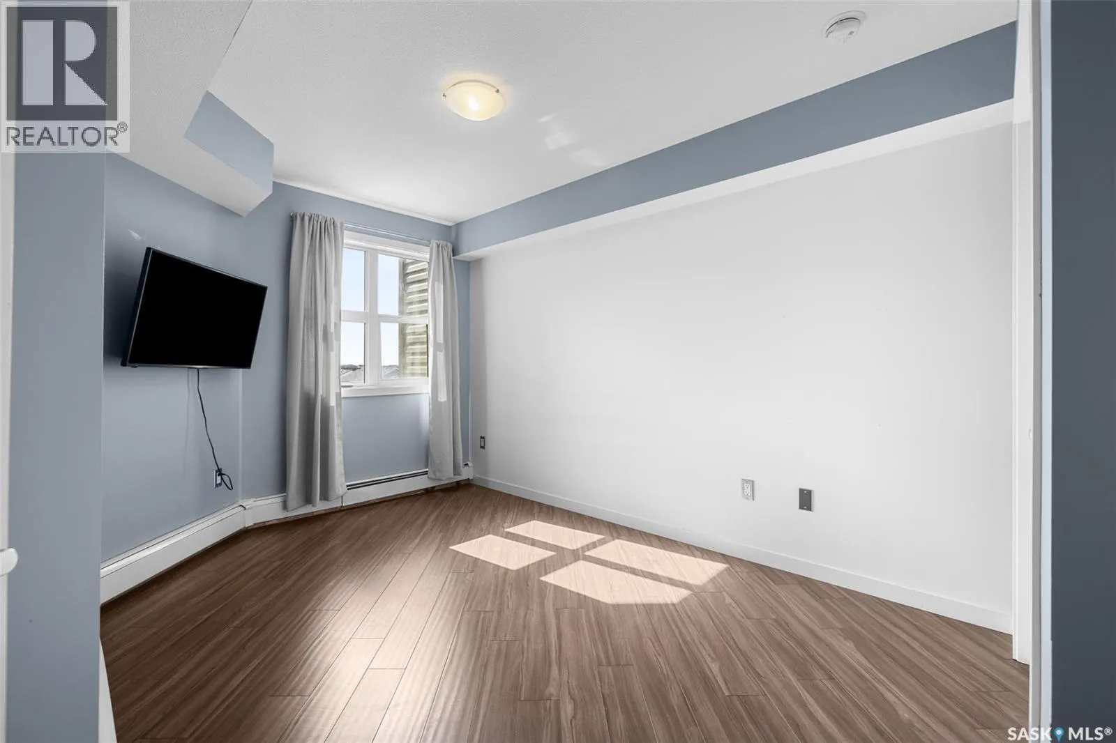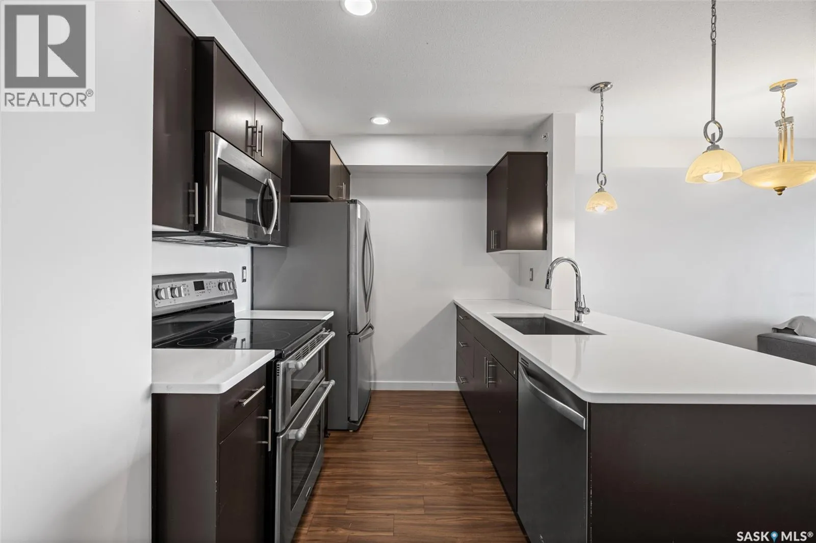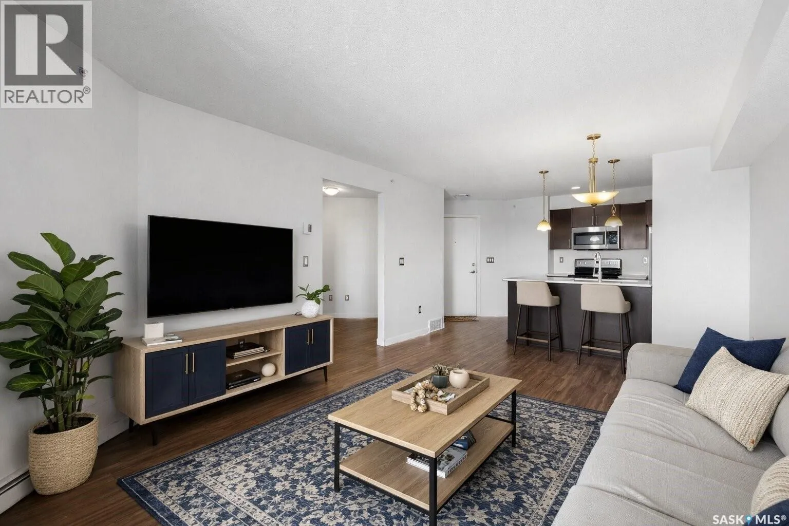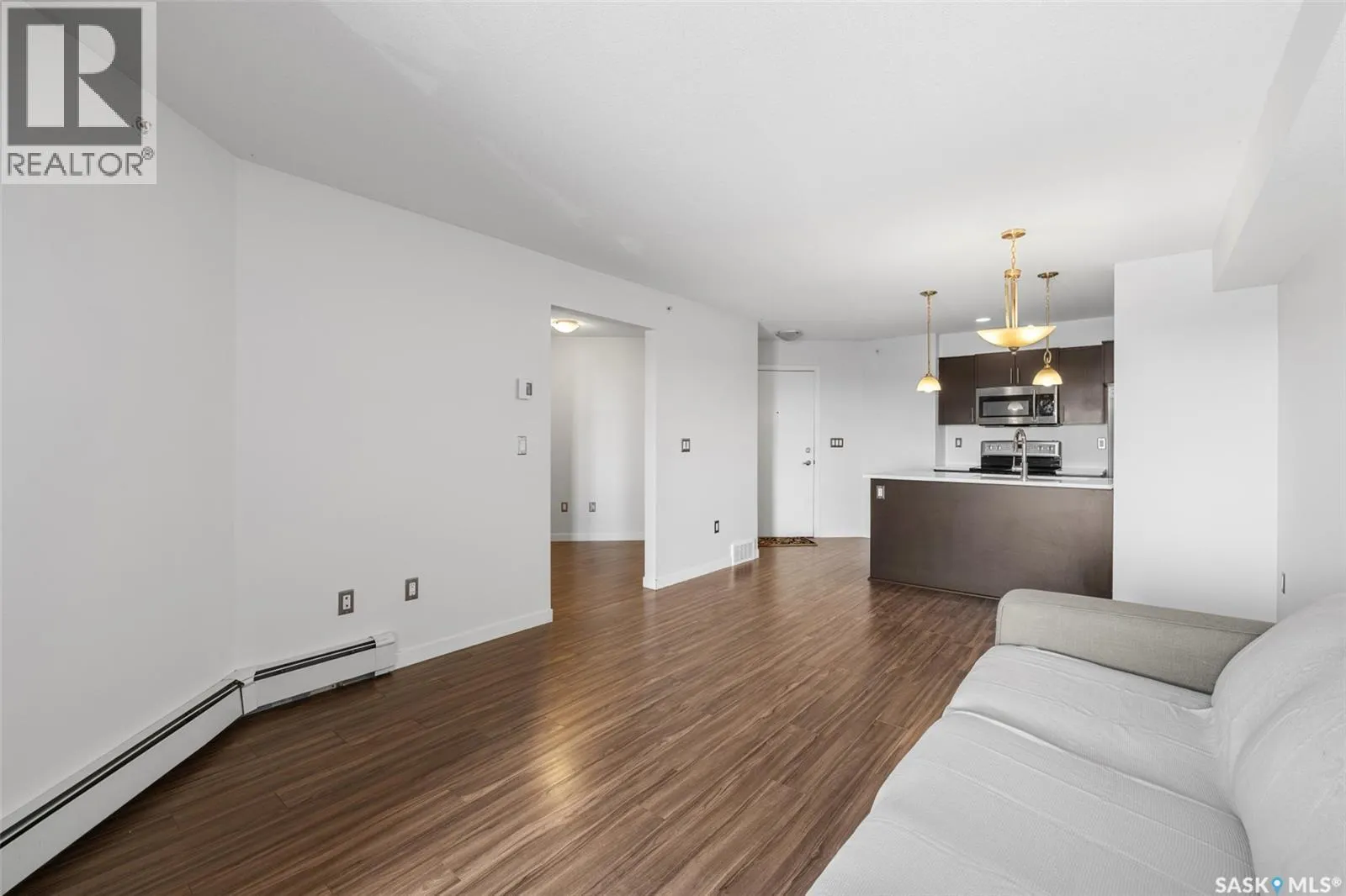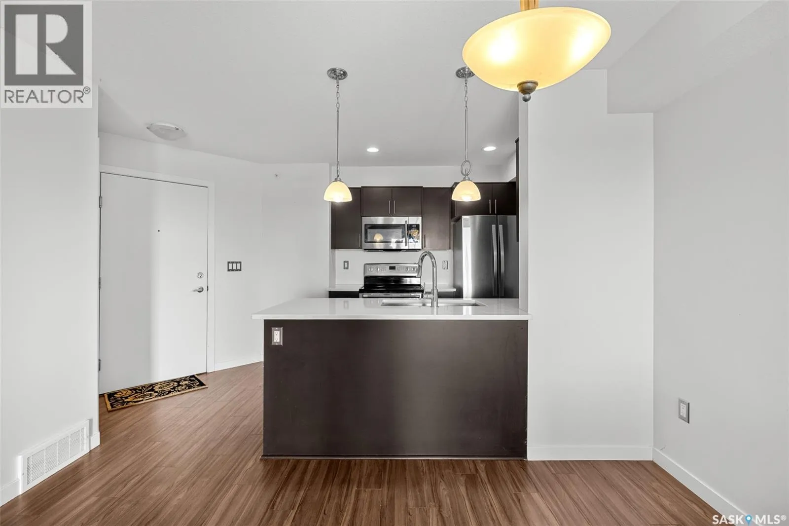 Welcome to #1414 â 5500 Mitchinson Way, located on the fourth floor of this well-maintained Harbour Landing complex. The moment you step inside, youâll notice this isnât your typical condo. It offers added privacy and a unique layout that truly stands out. The open-concept living space is warm and inviting, featuring laminate and tile flooring throughout, stone countertops, stainless steel appliances, and a functional eat-up island that flows seamlessly into the dining area and bright living room. Just off the living room, youâll find your own private balcony - the perfect spot to start your morning with a coffee or unwind at the end of the day. The generous-sized bedroom is complemented by a full four-piece bathroom and convenient in-suite laundry. A versatile flex space offers endless possibilities - create a home office, library, nursery, or workout area to suit your lifestyle. This unit also includes underground parking and additional storage. As a resident, youâll appreciate the simplicity of condo living blended with both style and practicality. All of this is located in one of Reginaâs most convenient neighbourhoods, just steps from Grasslands shopping, schools, parks, and more. Book your private showing today! Some Virtually Staged Photos are labeled. (id:27476)
