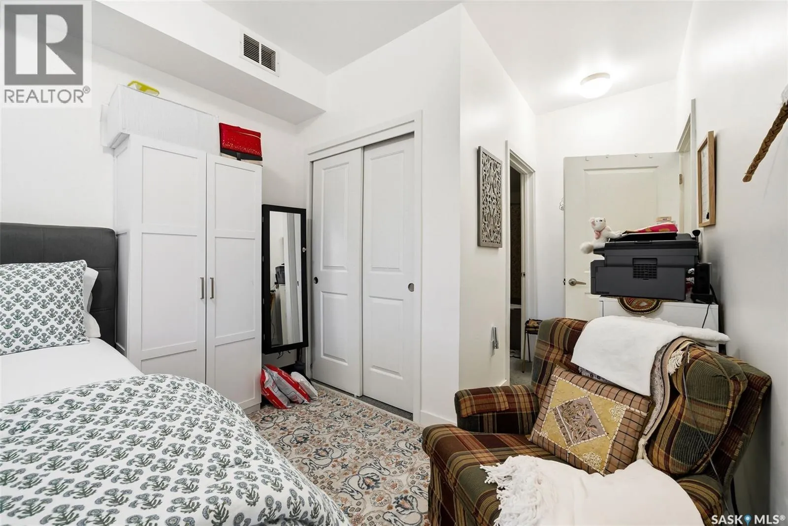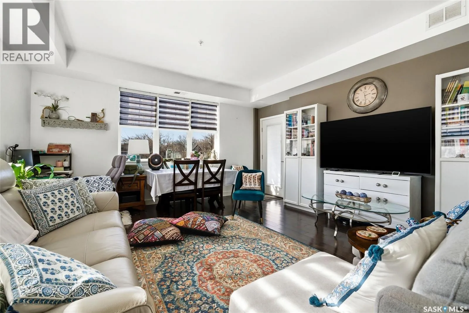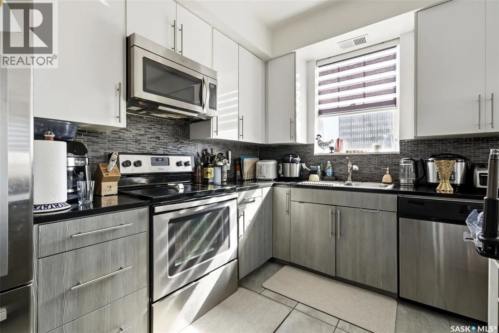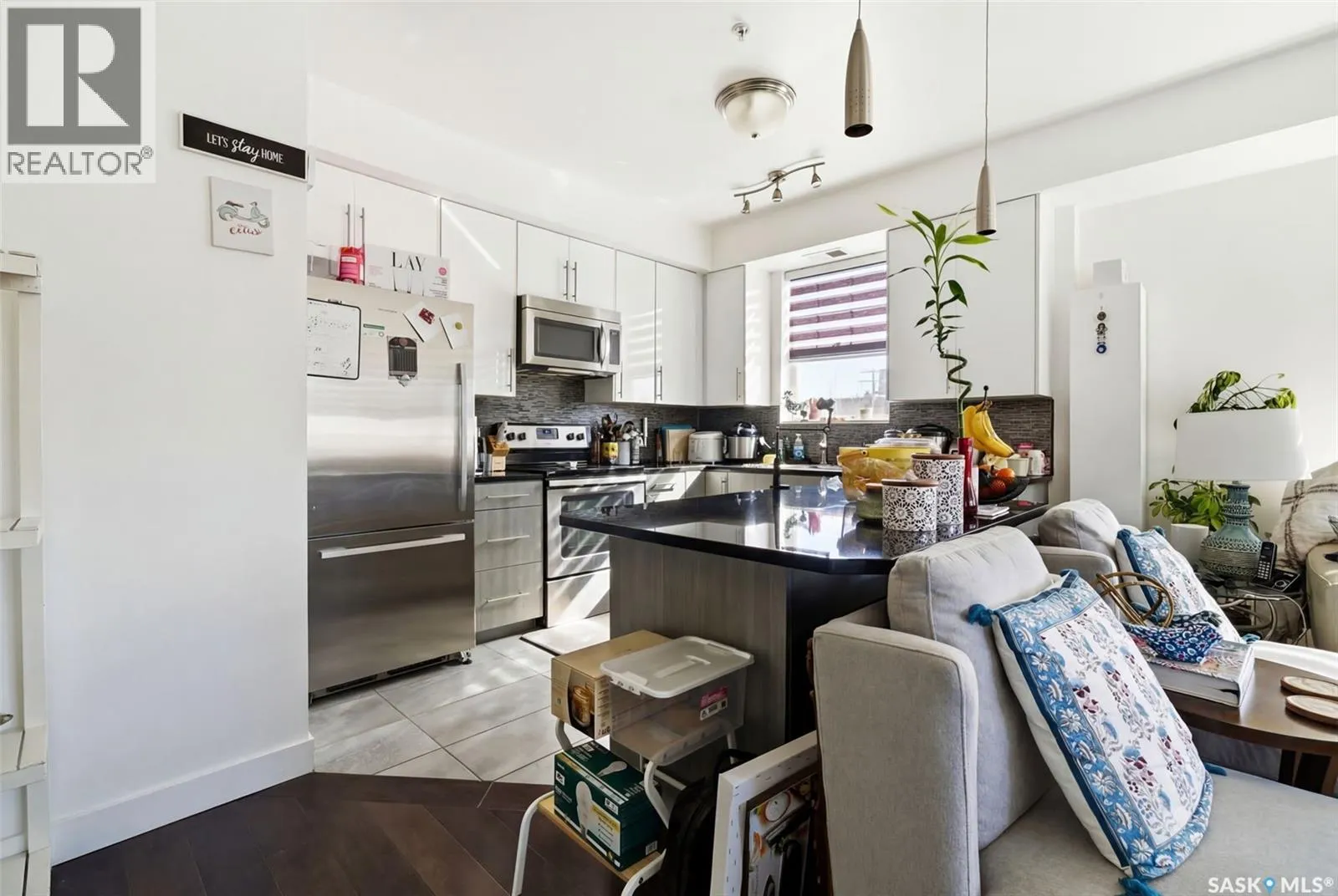 The Strathmore is well located just one block off Albert Street and two blocks off 13th Ave. Everything you need from restaurants, locally-owned retail shops, groceries, downtown offices and parks are all well within walking distance. This 2nd floor, South West corner unit provides plenty of great light throughout and features two bedrooms and two bathrooms. The two tone kitchen has stainless appliances and a large island that overlooks the living room space. A spacious balcony faces West giving great evening sun as you people watch the vibrant Cathedral Village neighbourhood. The primary bathroom has a large ensuite featuring dual sinks and a tub/shower. Laundry is conveniently located in the suite. This unit has easy access to both the stairs and elevator. The underground parking stall is easily accessed off the back alley. Also included is a large fenced storage space in the heated parking area. Condos fees of $706.12 include water, common area maintenance, reserve fund and more. A great unit for those who appreciate access to community and having amenities within walking distance. (id:27476)