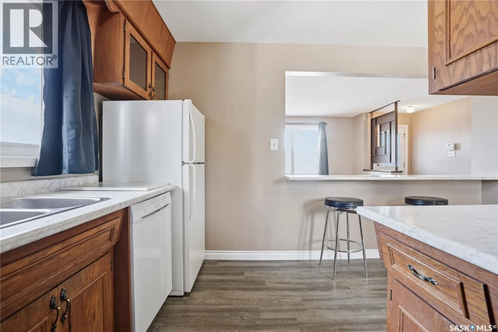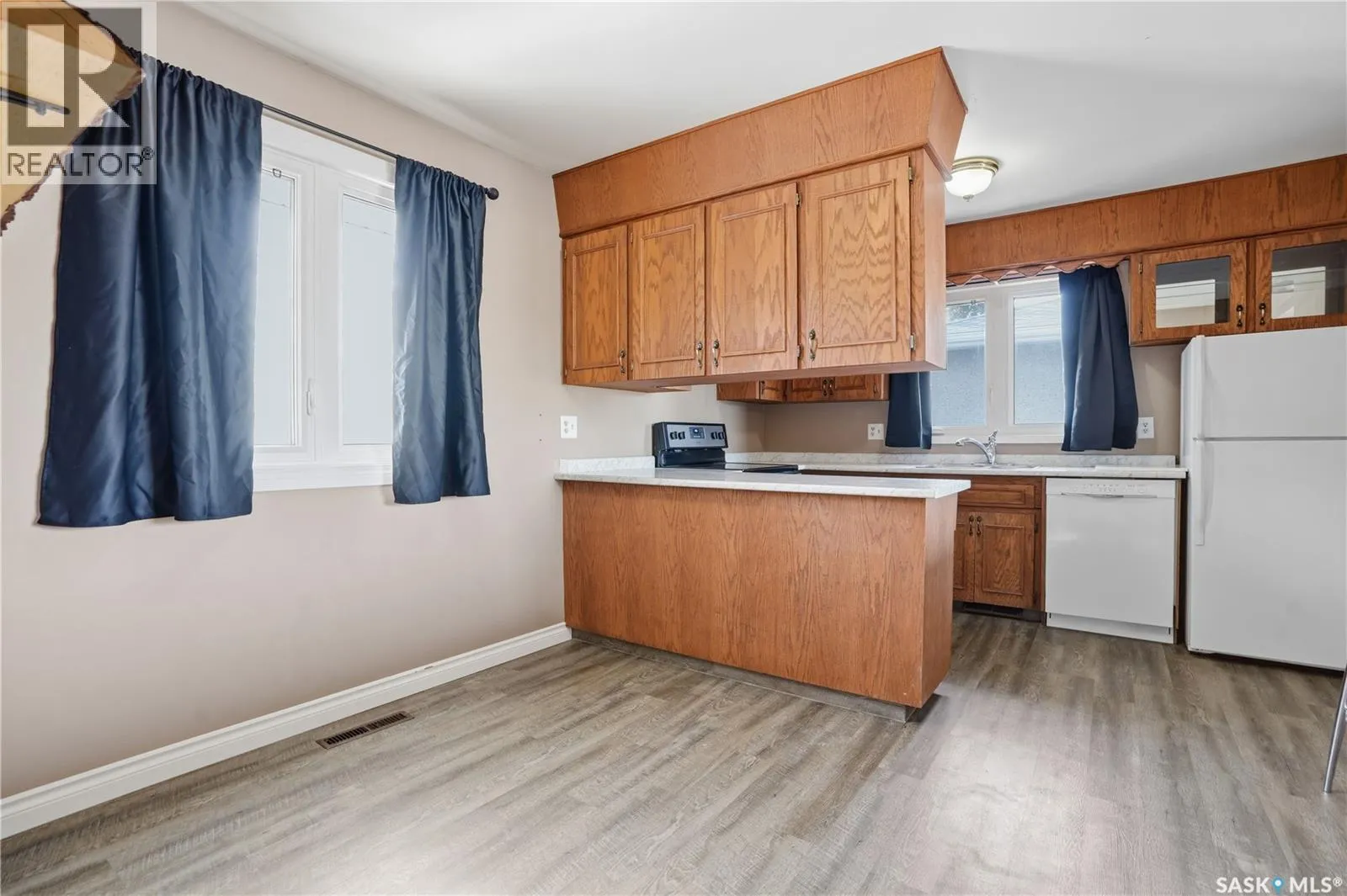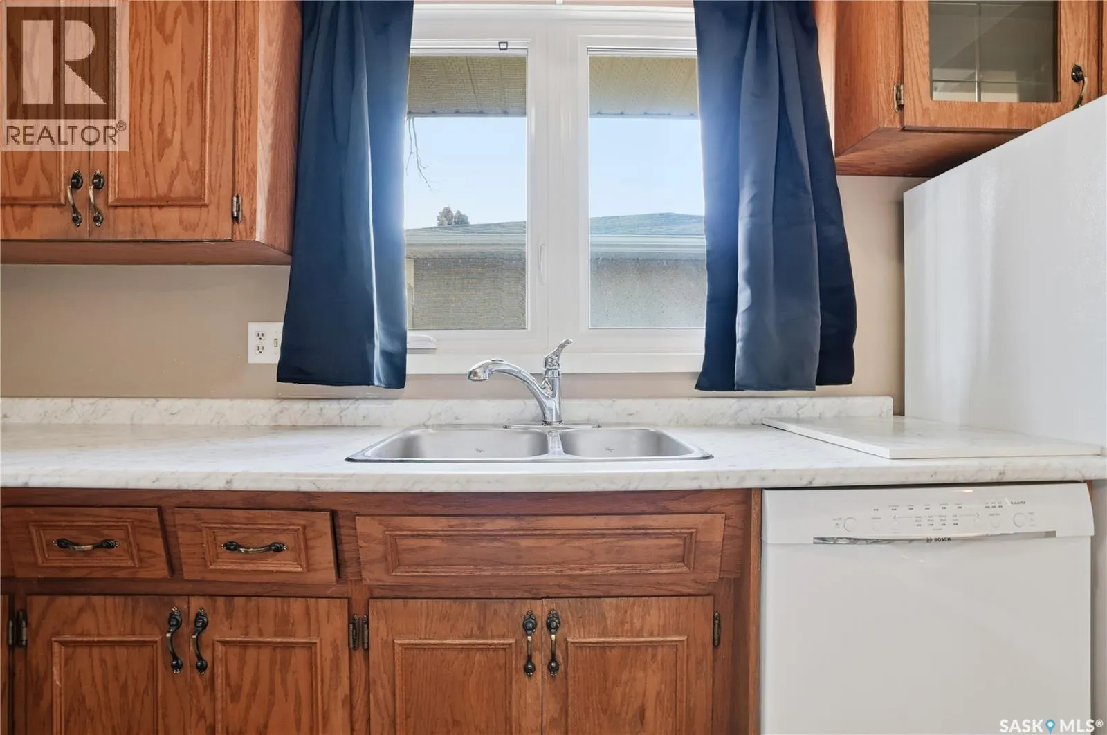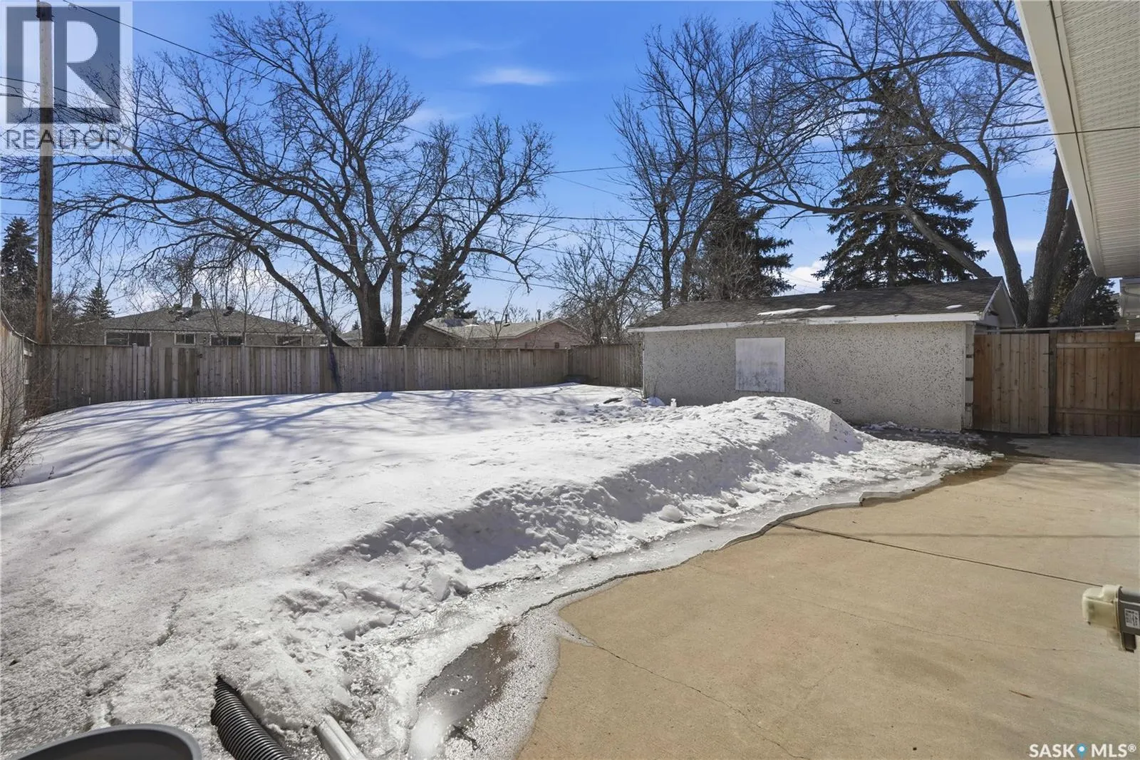 Welcome to this immaculate 990 sq ft bungalow, perfectly situated on a quiet, established crescent in Regina's Coronation Park neighborhood. This solid home features 3 bedrooms and 2 bathrooms, making it an ideal choice for first-time buyers or growing families. The main floor boasts beautifully refinished hardwood floors (2026), a bright living area, a functional kitchen with an open view, and an updated 4-piece bathroom. All windows on the main level were replaced in 2022, providing energy efficiency and natural light. The lower level is fully developed, offering a spacious recreation room, an additional three-piece bathroom, ample storage, and utility space. Significant big-ticket updates provide peace of mind for future owners: a new sewer line with a backflow prevention valve (2026), a new electrical panel (2016), shingles (2015), and a furnace and AC unit (2007). Outside, you'll find a fully fenced yard and a single detached garage. This charming bungalow is move-in ready and waiting for its next owners. Don't miss out on this fantastic opportunity! Schedule your viewing today. (id:27476)