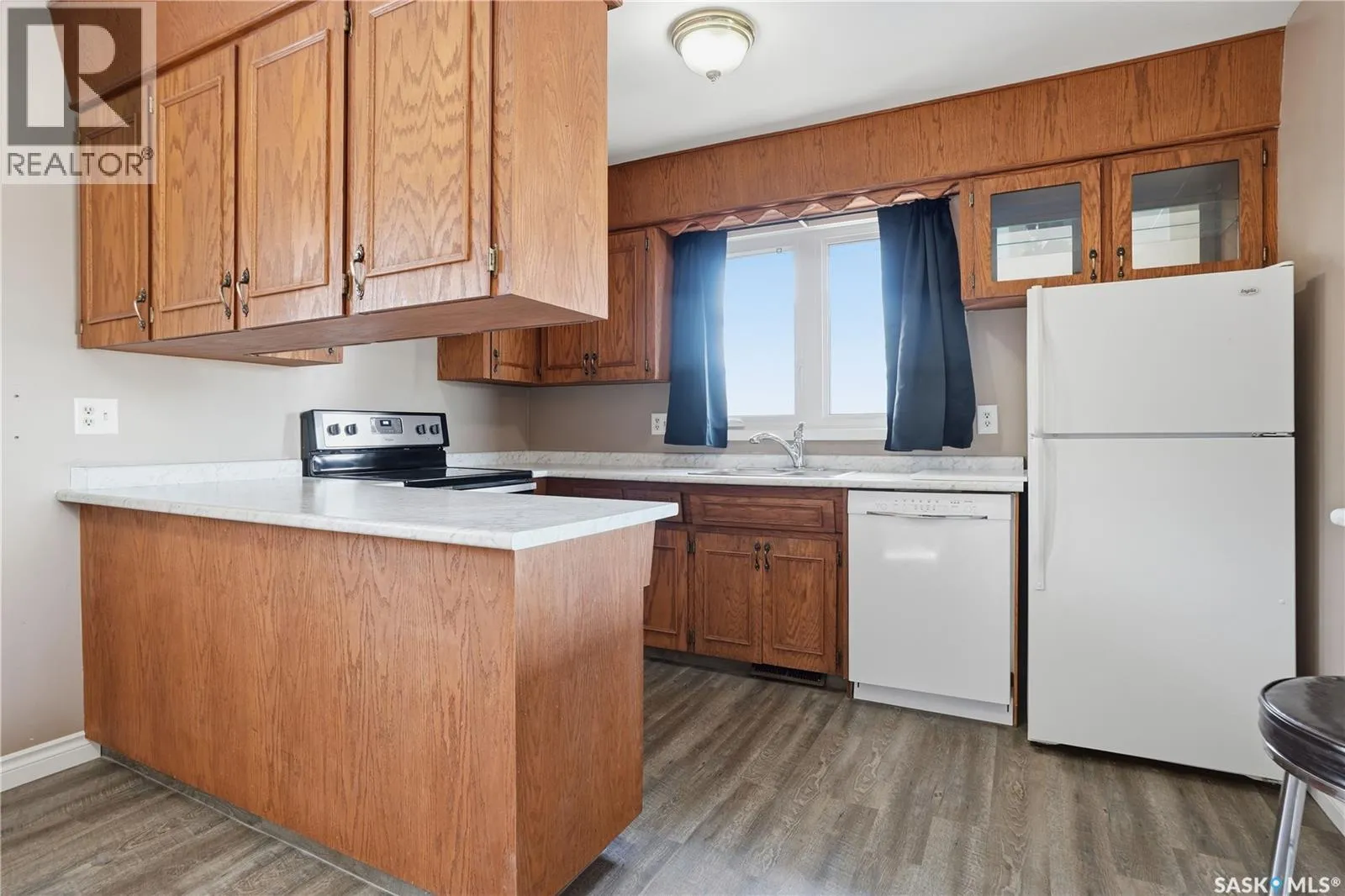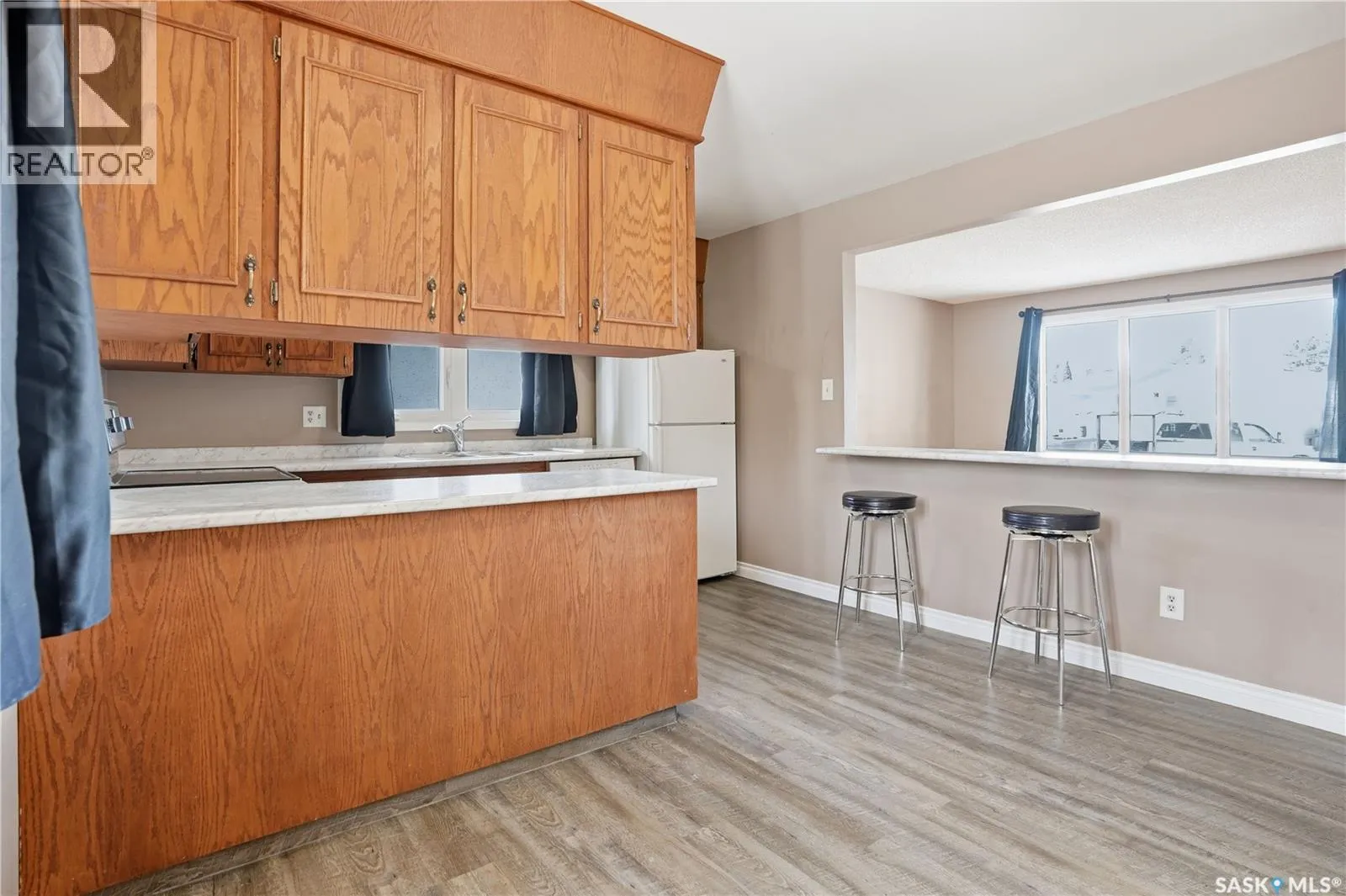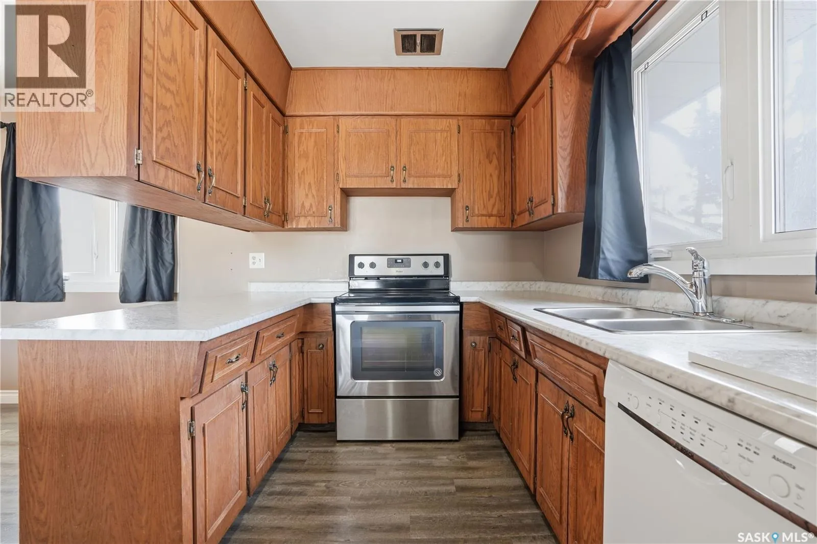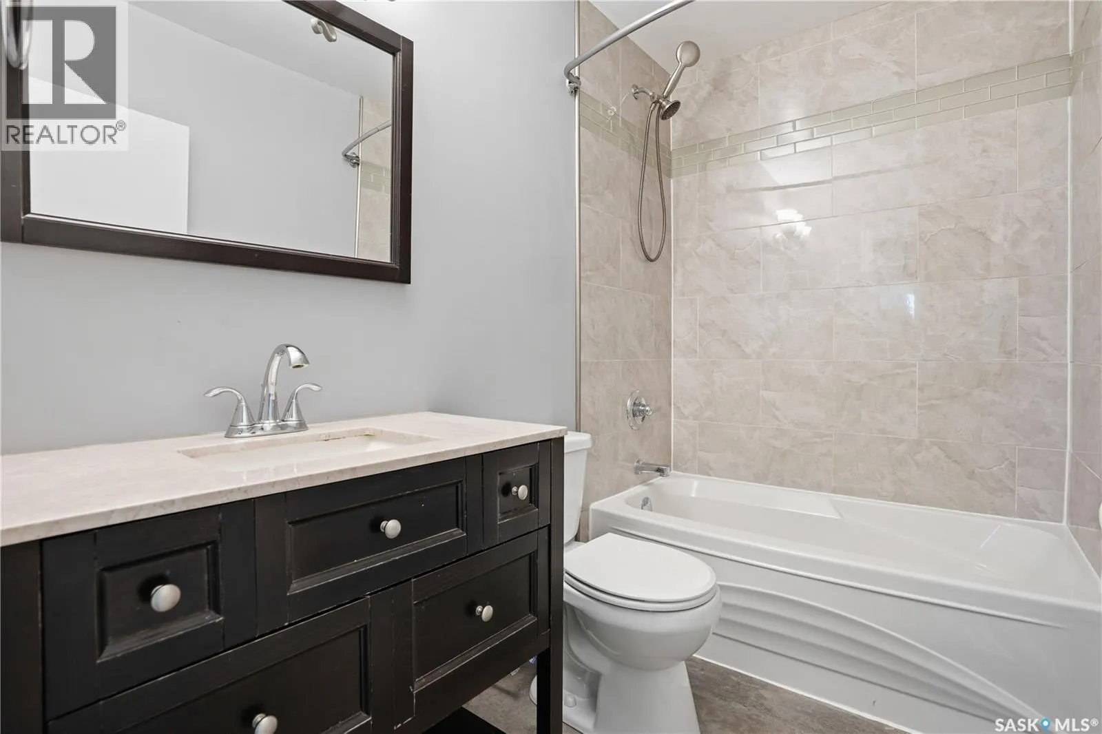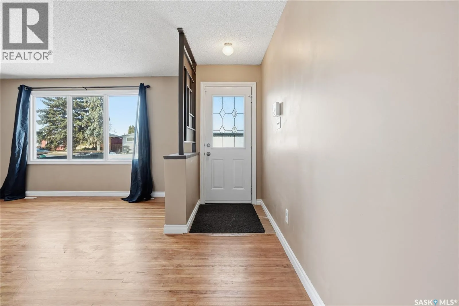 Welcome to this immaculate 990 sq ft bungalow, perfectly situated on a quiet, established crescent in Regina's Coronation Park neighborhood. This solid home features 3 bedrooms and 2 bathrooms, making it an ideal choice for first-time buyers or growing families. The main floor boasts beautifully refinished hardwood floors (2026), a bright living area, a functional kitchen with an open view, and an updated 4-piece bathroom. All windows on the main level were replaced in 2022, providing energy efficiency and natural light. The lower level is fully developed, offering a spacious recreation room, an additional three-piece bathroom, ample storage, and utility space. Significant big-ticket updates provide peace of mind for future owners: a new sewer line with a backflow prevention valve (2026), a new electrical panel (2016), shingles (2015), and a furnace and AC unit (2007). Outside, you'll find a fully fenced yard and a single detached garage. This charming bungalow is move-in ready and waiting for its next owners. Don't miss out on this fantastic opportunity! Schedule your viewing today. (id:27476)