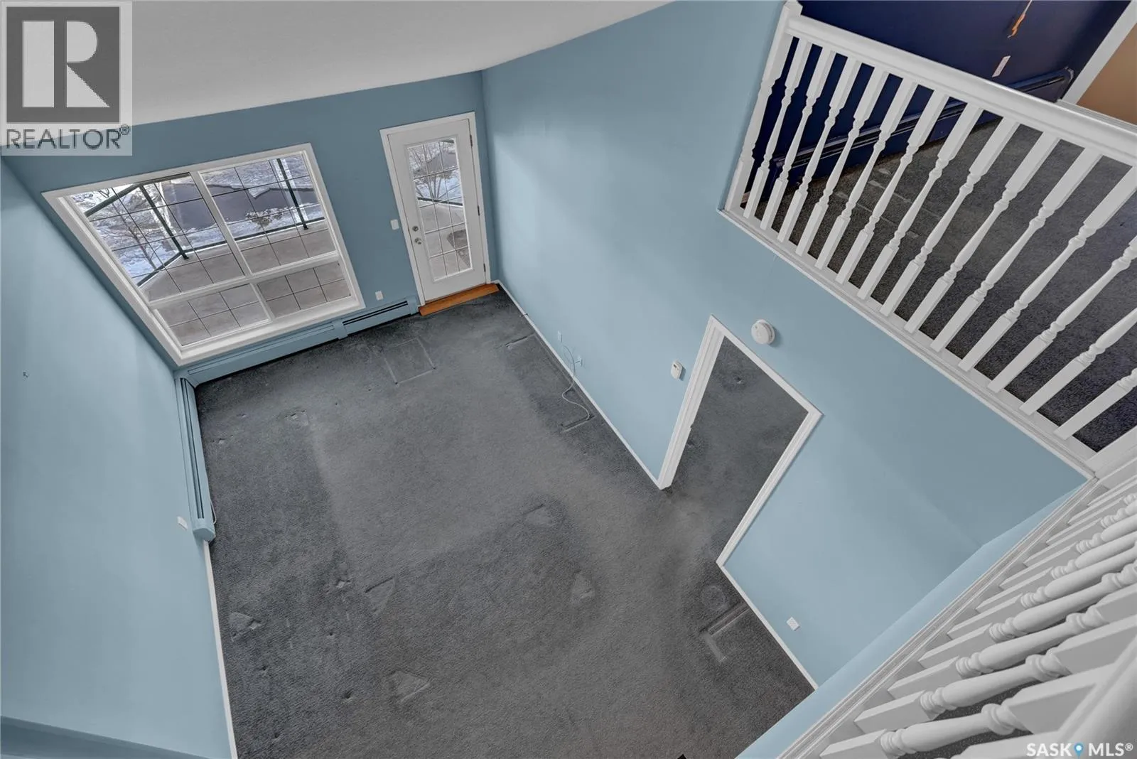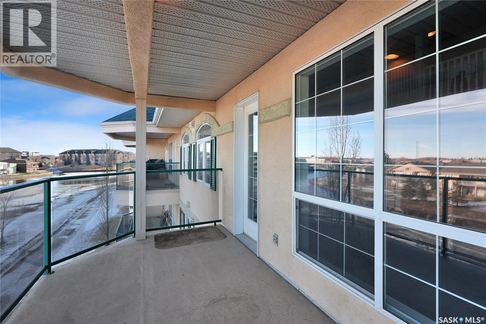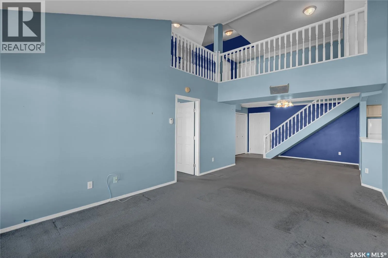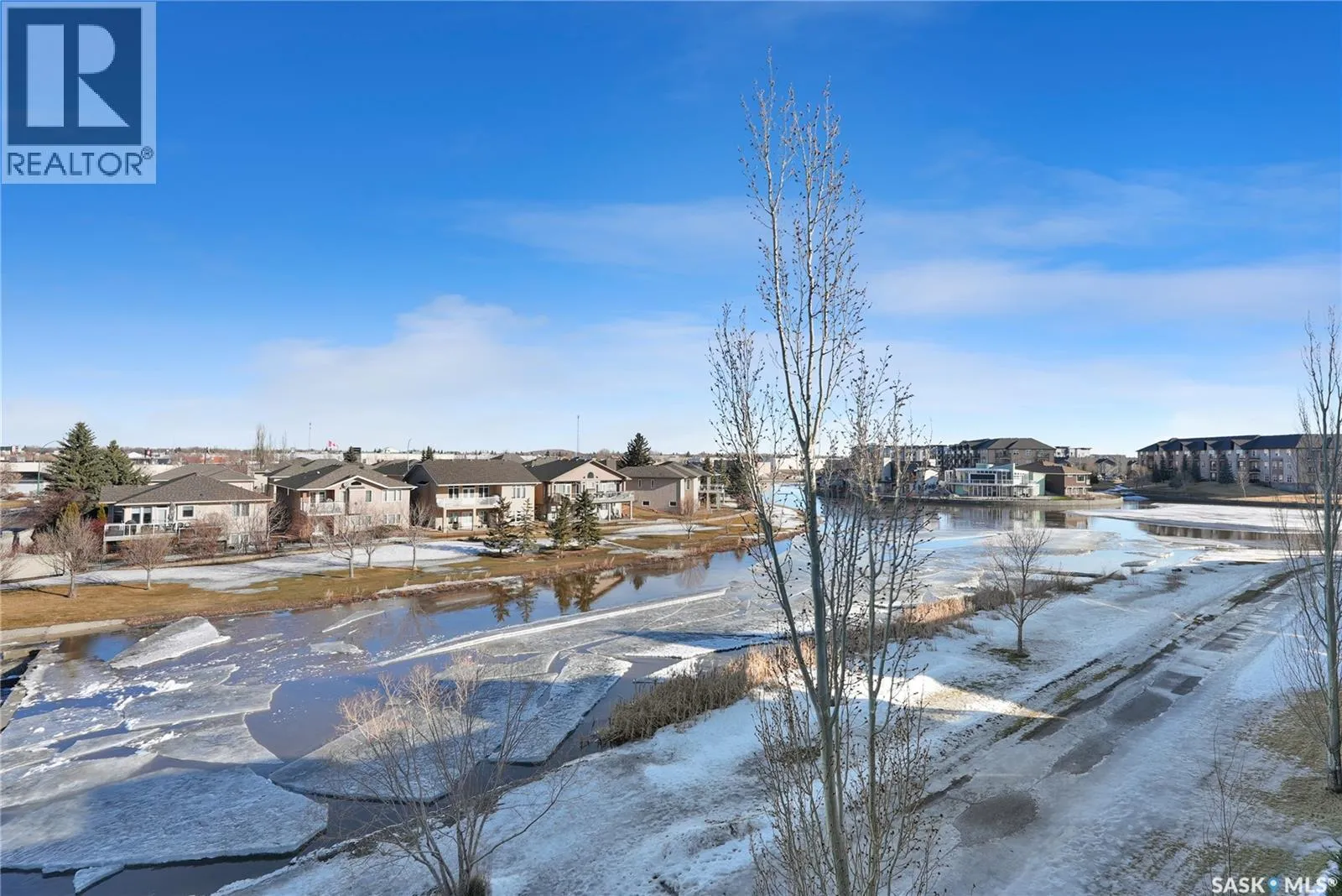 Excellent 1,475 sq. ft. top-floor apartment condo offering stunning views of the pond in Riverbend. Ideally located in East Regina with convenient access to shopping, restaurants, and public transit, this home combines comfort, style, and convenience. The main level features a spacious living room with vaulted ceiling and a garden door leading to a large, covered balconyâperfect for relaxing and enjoying the peaceful surroundings. The bright kitchen showcases white cabinetry and a built-in dishwasher. The primary bedroom includes a walk-in closet and a ¾ ensuite with an oversized shower. A second bedroom, full bathroom, and in-suite laundry complete the main floor. Upstairs, the versatile loft offers a generously sized family room overlooking the main living area, along with a convenient half bathâideal for additional living or entertaining space. Enjoy the quiet lifestyle of this well-maintained, pet-free building, complete with a dedicated craft room and amenities roomâperfect for socializing, games, or hosting gatherings. This unit also includes exclusive use of a heated underground parking stall (#307). (id:27476)