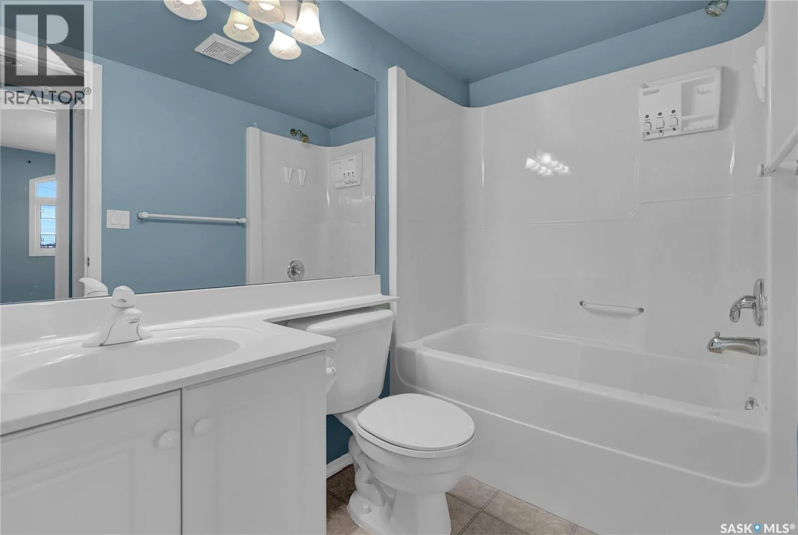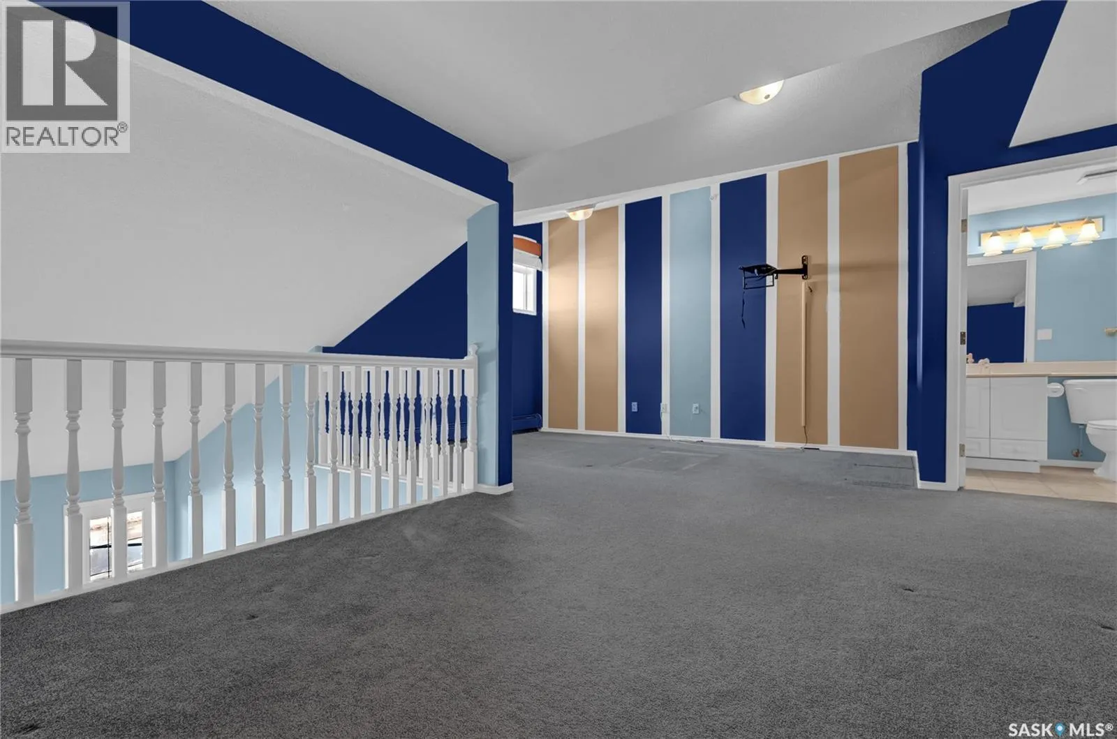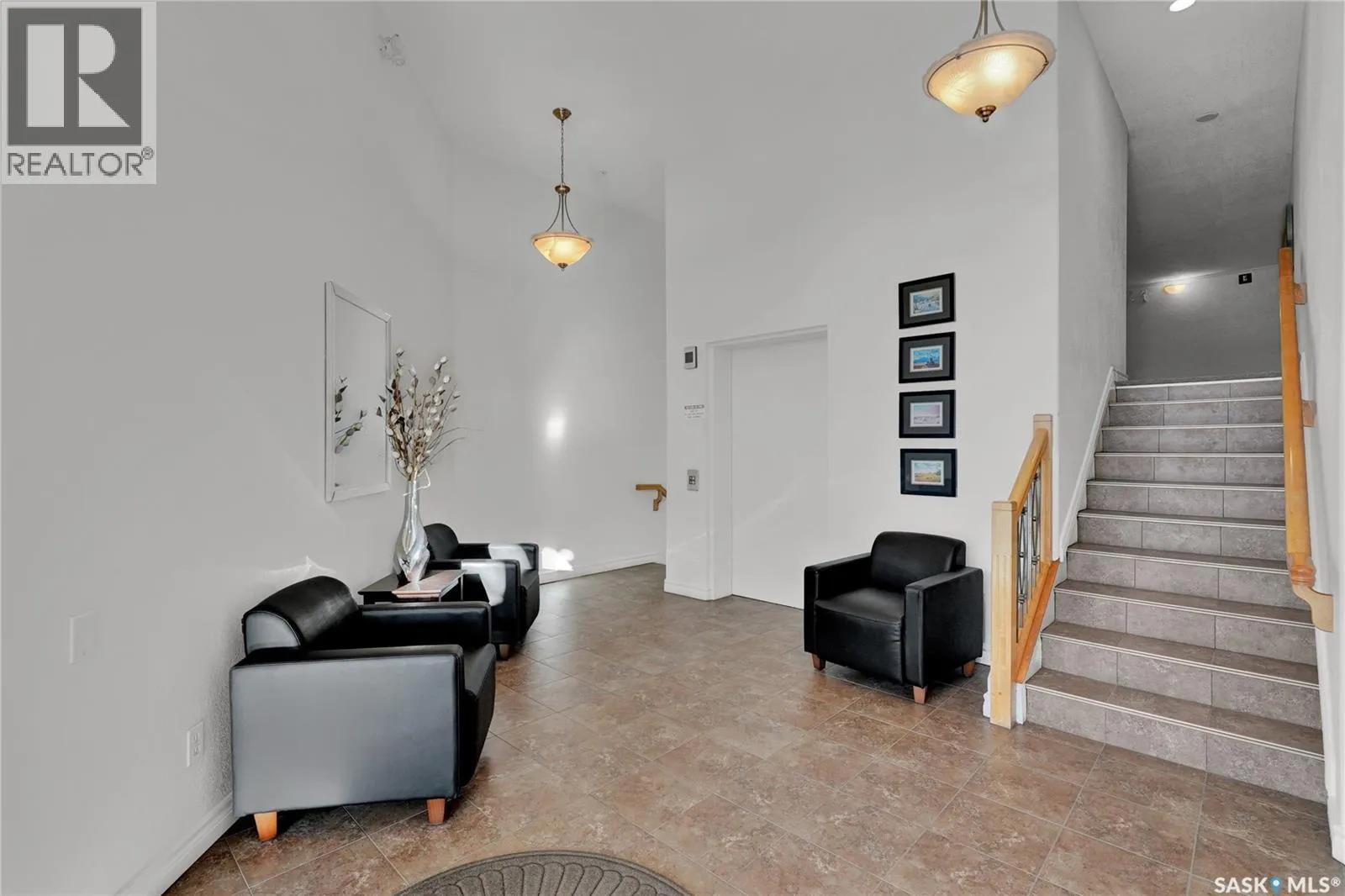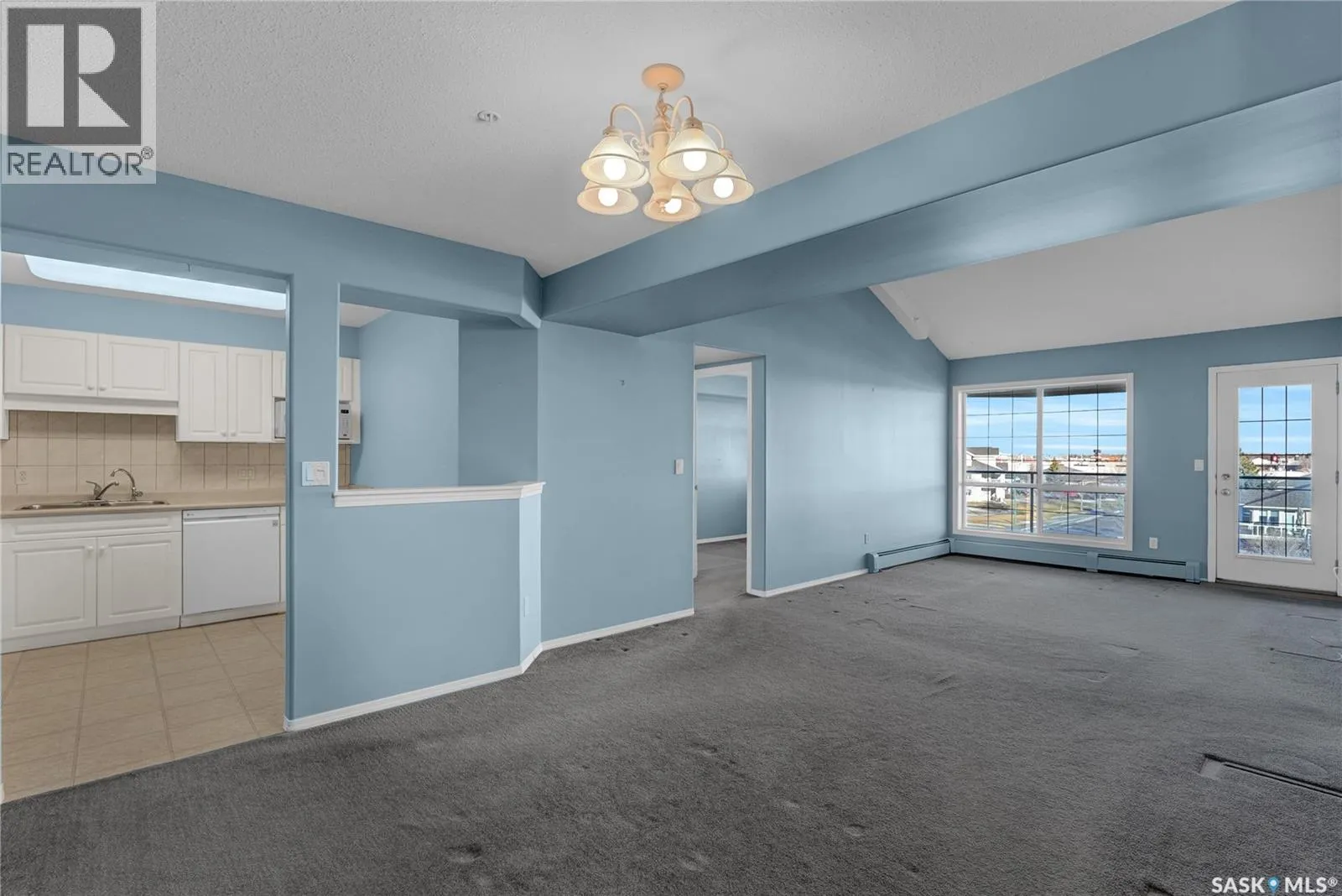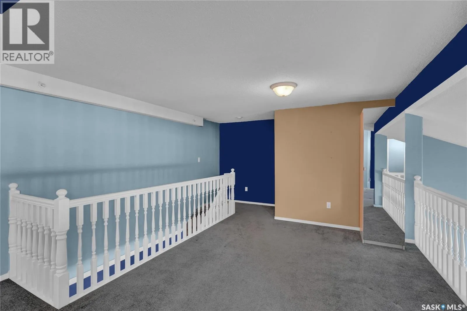 Excellent 1,475 sq. ft. top-floor apartment condo offering stunning views of the pond in Riverbend. Ideally located in East Regina with convenient access to shopping, restaurants, and public transit, this home combines comfort, style, and convenience. The main level features a spacious living room with vaulted ceiling and a garden door leading to a large, covered balconyâperfect for relaxing and enjoying the peaceful surroundings. The bright kitchen showcases white cabinetry and a built-in dishwasher. The primary bedroom includes a walk-in closet and a ¾ ensuite with an oversized shower. A second bedroom, full bathroom, and in-suite laundry complete the main floor. Upstairs, the versatile loft offers a generously sized family room overlooking the main living area, along with a convenient half bathâideal for additional living or entertaining space. Enjoy the quiet lifestyle of this well-maintained, pet-free building, complete with a dedicated craft room and amenities roomâperfect for socializing, games, or hosting gatherings. This unit also includes exclusive use of a heated underground parking stall (#307). (id:27476)