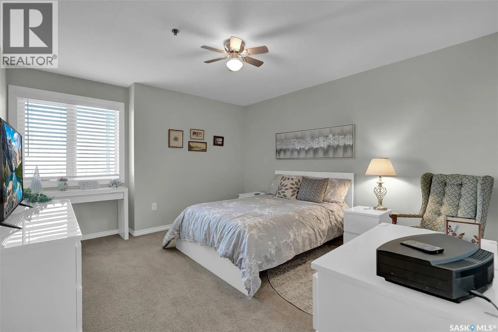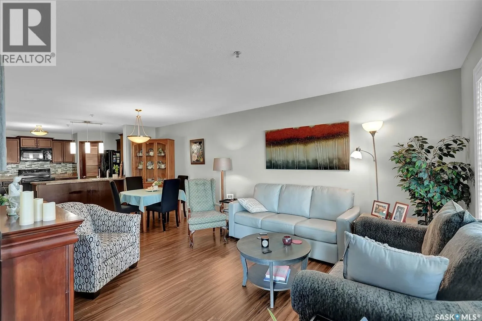 Fantastic East Regina Condo with 2 Bedrooms, 2 Bathrooms, Underground Parking and convenient location to all shopping and amenities. A spacious foyer entry with large closet welcomes you into this immaculate home with laminate flooring throughout the main living areas. Beautiful dark cabinetry is featured in the kitchen with corner pantry, lots of counter preparation space including eating bar that is open the dining and living room. All appliances are included. Bright and sunny with west facing window in the living room and a garden door opens to a balcony with city views. Two spacious bedrooms, including a very large primary bedroom that has walk-through closet leading to a 3pc ensuite. There is full main bathroom and in-suite laundry with plenty of storage. Secure building with underground parking and amenities rooms. (id:27476)