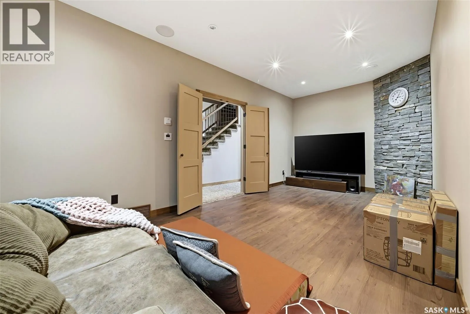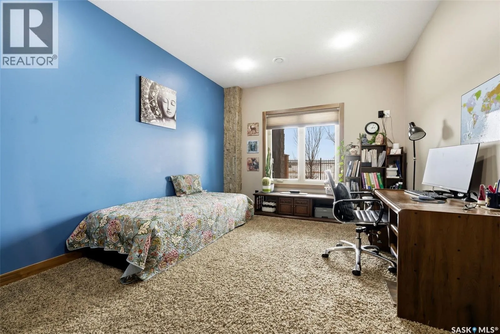 Welcome to 7502 Lilac Place, an exceptional executive two storey walkout nestled in the prestigious Fairways West neighbourhood, backing directly onto the golf course. Offering 2,893 sq. ft. of refined living space plus a fully developed walkout level, this remarkable home showcases exquisite walnut millwork and cabinetry throughout, highlighted by a stunning curved walnut staircase that creates a grand first impression. The main floor is designed for both everyday luxury and upscale entertaining, featuring a chef inspired kitchen with an oversized island, granite countertops, hidden built-in walnut refrigerator and freezer, bar fridge, gas cooktop, and double wall ovens, all complemented by a spacious walk-in pantry. The dining area is equally impressive with custom built-ins and a cozy gas fireplace, while the former deck has been thoughtfully converted into a four-season room, complete with fireplace, air conditioning, electric heat, and an additional 240 sq. ft. of year round living space not included in total square footage. Upstairs, youâll find an open den/office with built-in cabinetry, a luxurious primary retreat with a spa like 5 piece ensuite and dual walk-in closets, along with three additional generously sized bedrooms, a full 4 piece bath, and a well appointed laundry room with sink and granite counters. The fully developed walkout basement offers bright and inviting living space, including a spacious family room, dedicated theatre room, fifth bedroom, 3 piece bathroom, and utility area. Radiant in-floor heating extends through both the basement and triple attached garage, enhancing comfort year round. Situated on a beautifully xeriscaped 5,393 sq. ft. lot with drip irrigation, this property also features a covered patio, natural gas BBQ hookup, built-in speaker system, multiple fireplaces (three gas and one electric), and a fully fenced yard, all designed to maximize enjoyment of its serene golf course setting. (id:27476)