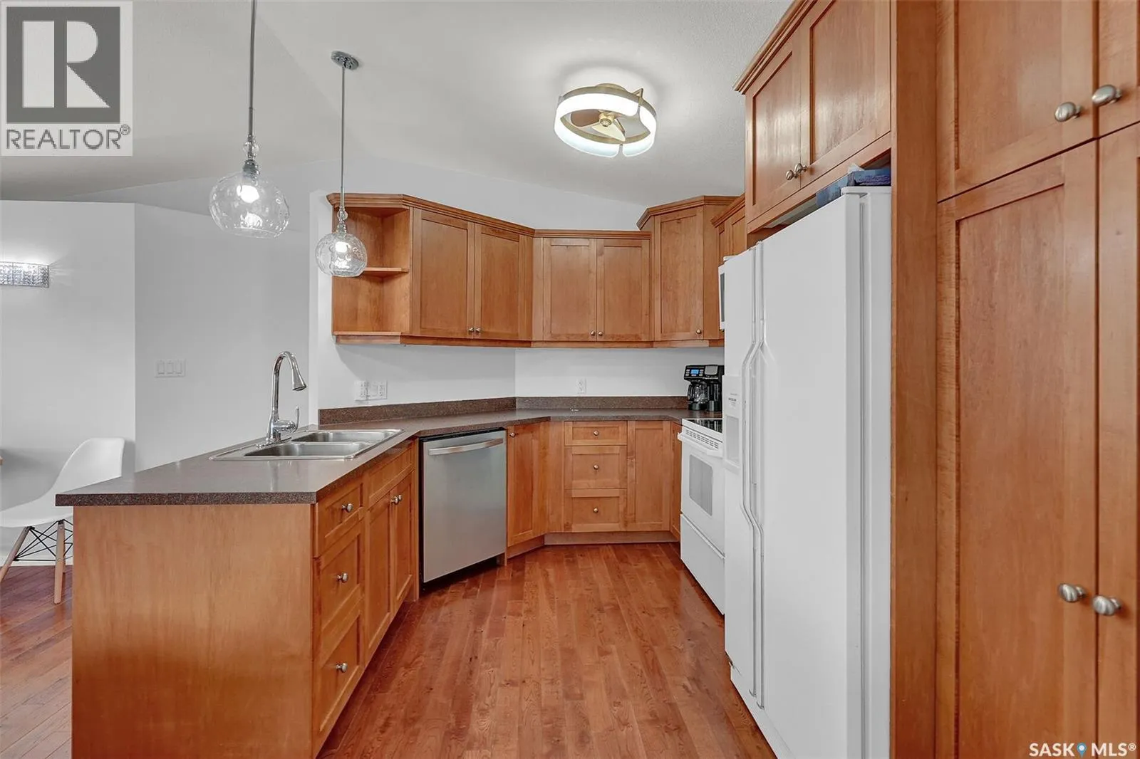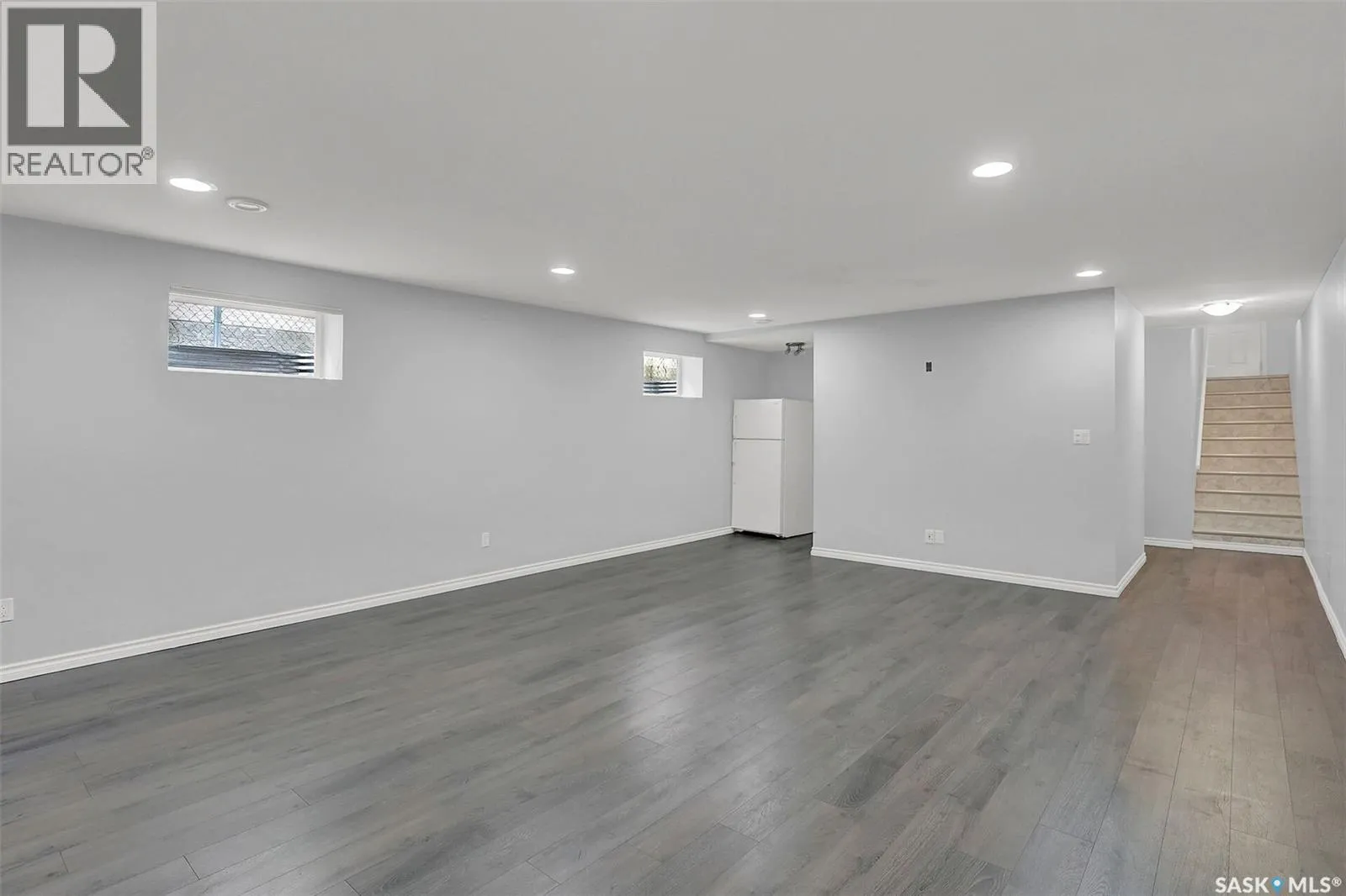 Just a short walk to Wascana Creek and its walking & bike paths, this charming Mount Royal bungalow is move-in ready. The open concept main features attractive hardwood flooring, a large living room, dining area and open kitchen. There are two good sized bedrooms on the main level and a four piece bath. In the basement, youâll enjoy the additional living space in the family room, third bedroom and a three piece bathroom. A roughed-in wet bar offers the potential for a basement suite. The fenced backyard offers a place for kids or pets to play. The off-street parking area would make an ideal location for a future garage. Call today to book your viewing! (id:27476)