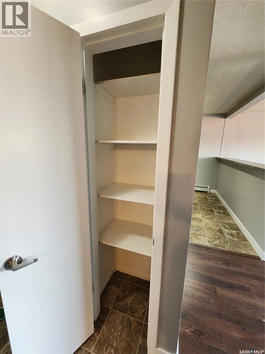 Welcome to your new home or investment property! This bright and open top-floor unit overs an inviting living space ready for it's new owners. Enjoy the peace and quiet of top-floor living, free from overhead noise. Located close to all of the South end amenities and close to the University of Regina, this condo is perfect for students, professionals, or anyone looking for convenience. The family-friendly building fosters a welcoming community atmosphere ideal for all ages. Inside, you'll find a spacious living area with an open layout, providing ample space for relaxation and entertaining. The bedroom is a good size and offers plenty of natural light. The kitchen has ample cupboard space in an updated kitchen and a pantry. This area is spacious enough to also accommodate a small table and chairs. The in suite storage closet also has it's own washing machine with shared laundry for dryers or additional washers in the building. Whether you're a first time homebuyer, downsizing or looking for an investment property this condo offers everything you need and more. Don't miss out on this incredible opportunity to own a piece of prime real estate in a highly sought after neighborhood. (id:27476)