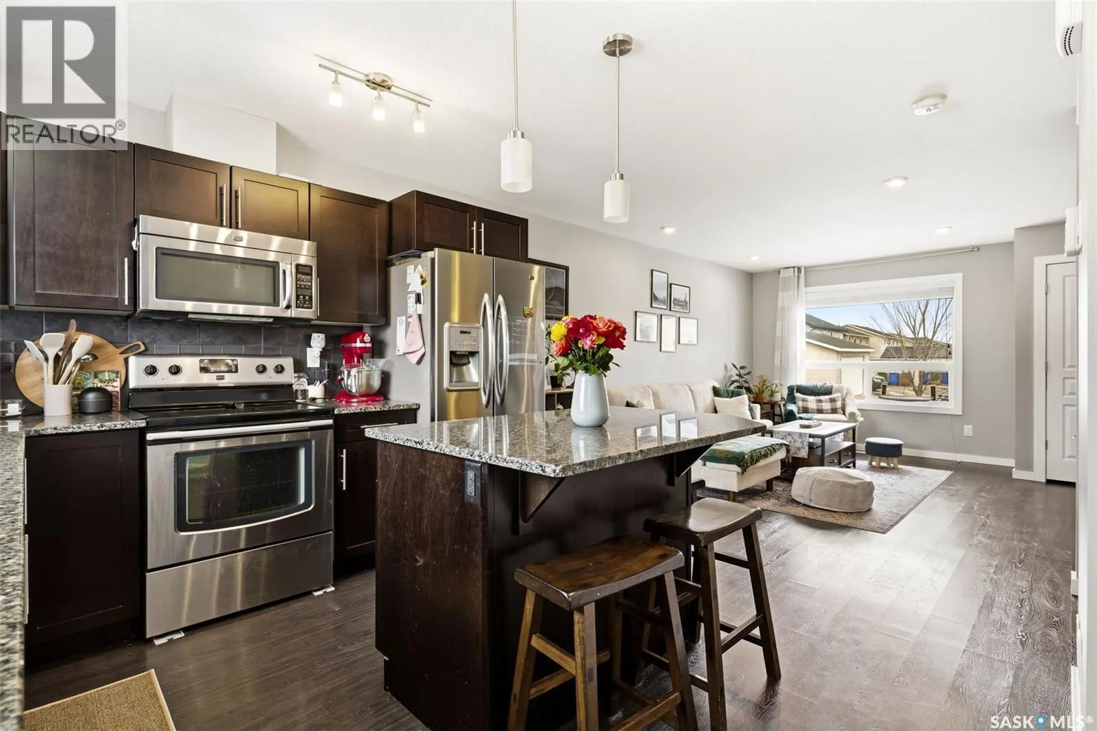 Welcome to 5219 Beacon Way, an end-unit two-storey townhouse, perfectly situated in a family-friendly neighborhood close to parks, walking paths, schools, and all south-end amenities. Enjoy quick and easy access to Lewvan Drive and Ring Road, making commuting a breeze. With no condo fees, this home is an excellent opportunity for first-time buyers and growing families seeking comfort, convenience, and value. Step inside to an inviting open-concept main floor with vinyl plank flooring throughout. The cozy living room is highlighted by dimmable pot lights and upgraded wood blinds, seamlessly flowing into the dining area and kitchen. The kitchen offers ample counter space, stainless steel appliances, a stylish tile backsplash, pantry, enhanced lighting, and an oversized granite islandâperfect for meal prep and entertaining. A garden door leads to the fully fenced backyard, complete with a single detached garageâideal for both relaxation and functionality. A convenient 2-piece bathroom completes the main level. Upstairs, youâll find two spacious primary bedrooms, each boasting its own private 4-piece ensuite and professionally designed custom walk-in closet. A second-floor laundry area adds to the homeâs everyday convenience. The unfinished basement provides a blank canvas for future development, the walls are already sealed and insulated. This home offers the perfect blend of space, style, and accessibilityâready for you to move in and enjoy. (id:27476)