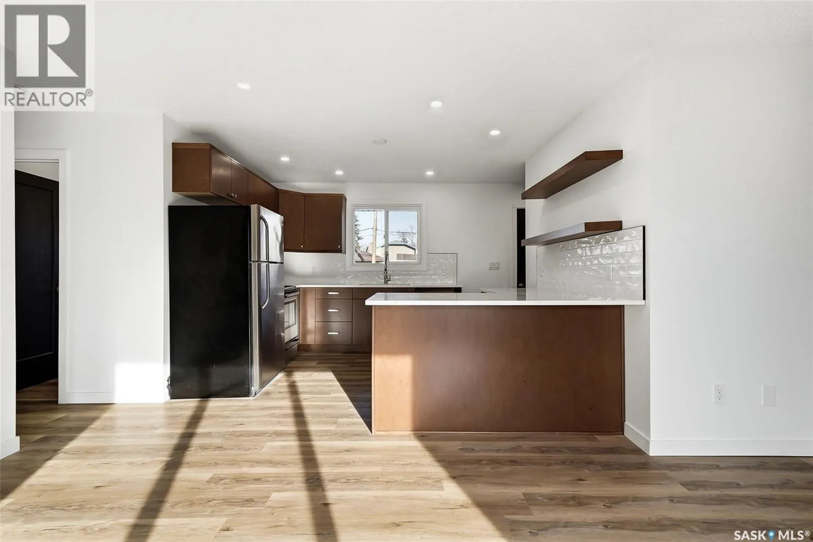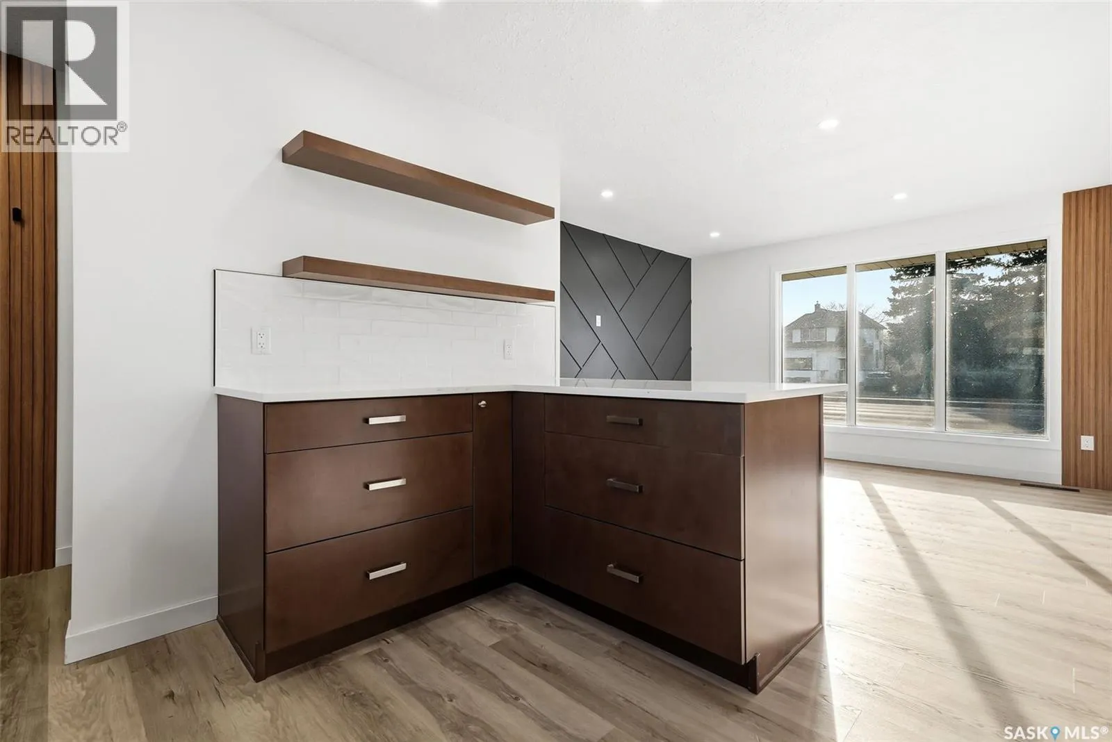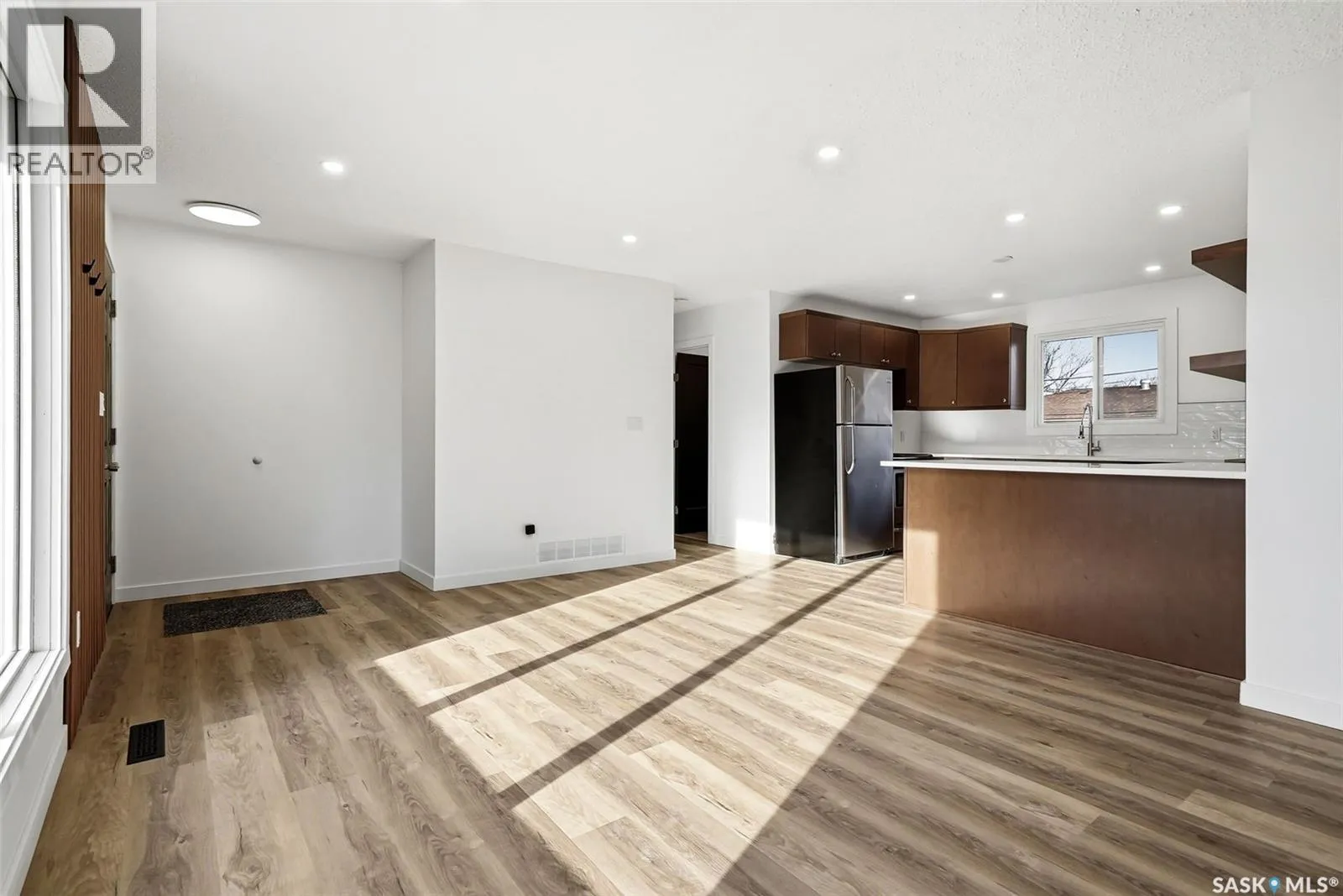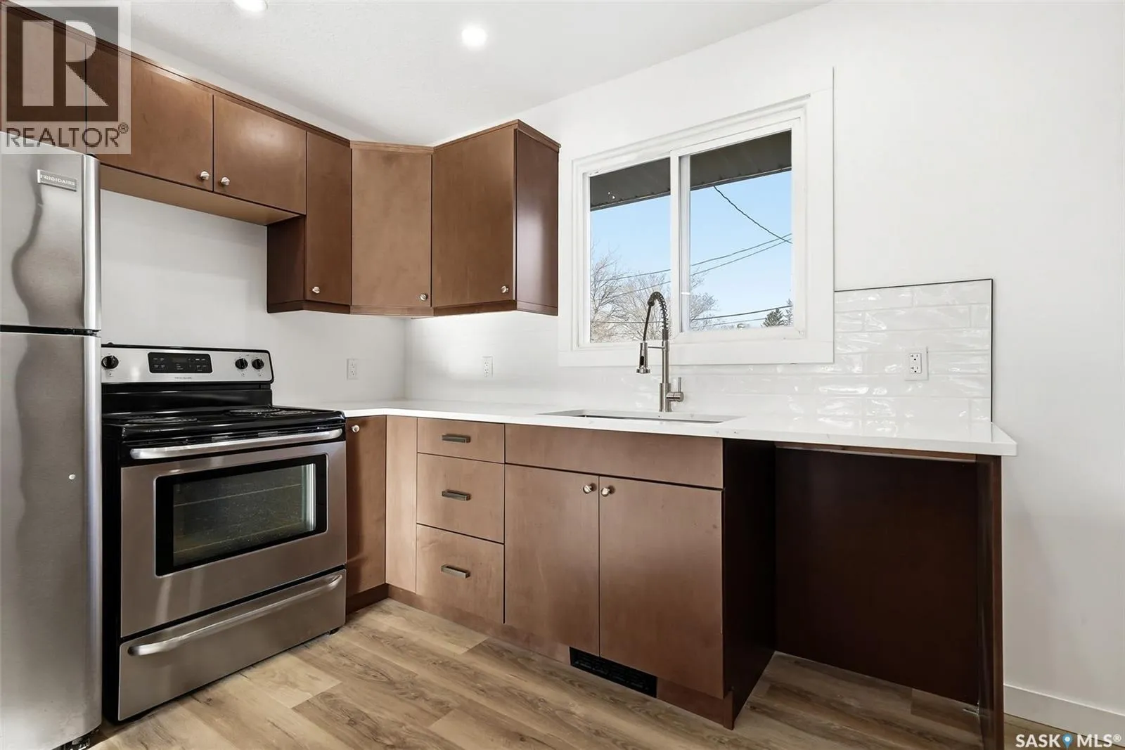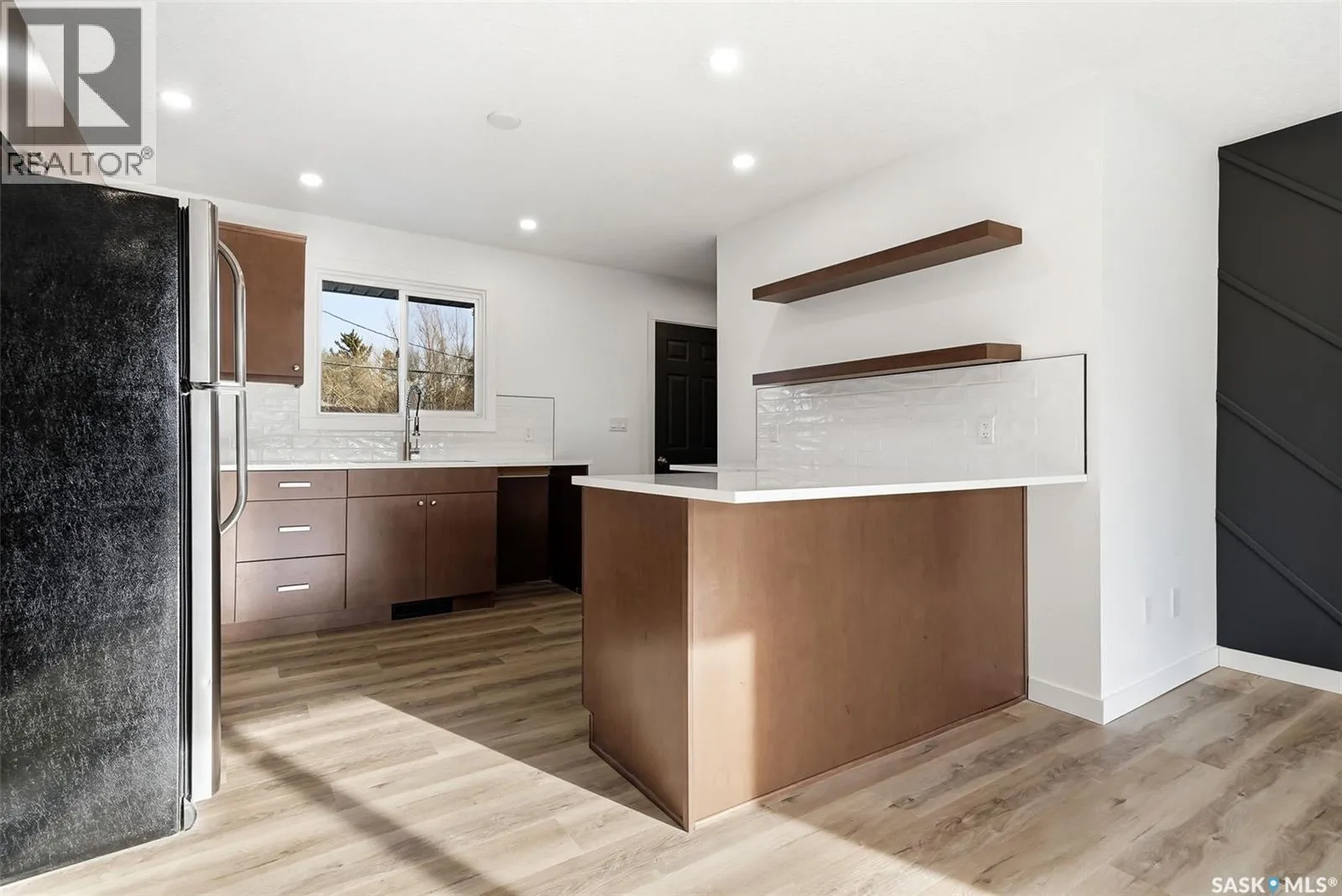Welcome to this beautifully renovated bungalow in Churchill Downs offering modern style, functional living, and exceptional potential. Situated on a generous 6,000+ sq ft lot, this move-in ready home is perfect for first-time buyers, investors, or those looking to downsize without compromising quality. Step inside to a bright, open-concept main floor featuring updated vinyl plank flooring, fresh finishes, and large windows that fill the space with natural light. The spacious living room is highlighted by a stunning feature wall, while the kitchen offers rich cabinetry, sleek countertops, and stainless steel appliancesâideal for both everyday living and entertaining. Two comfortable bedrooms and a fully updated 4-piece bathroom complete the main level. The partially finished basement is clean, open, and ready for future development with a bathroom rough-in already in place and potential for an additional bedroomâproviding excellent opportunity to expand your living space. Outside, youâll find a large backyard with mature trees, a spacious deck perfect for summer gatherings, and plenty of room for a future garage. With ample off-street parking and convenient access to schools, parks, and north-end amenities, this property offers both comfort and long-term value. Stylish, affordable, and full of potentialâthis is one you wonât want to miss! (id:27476)