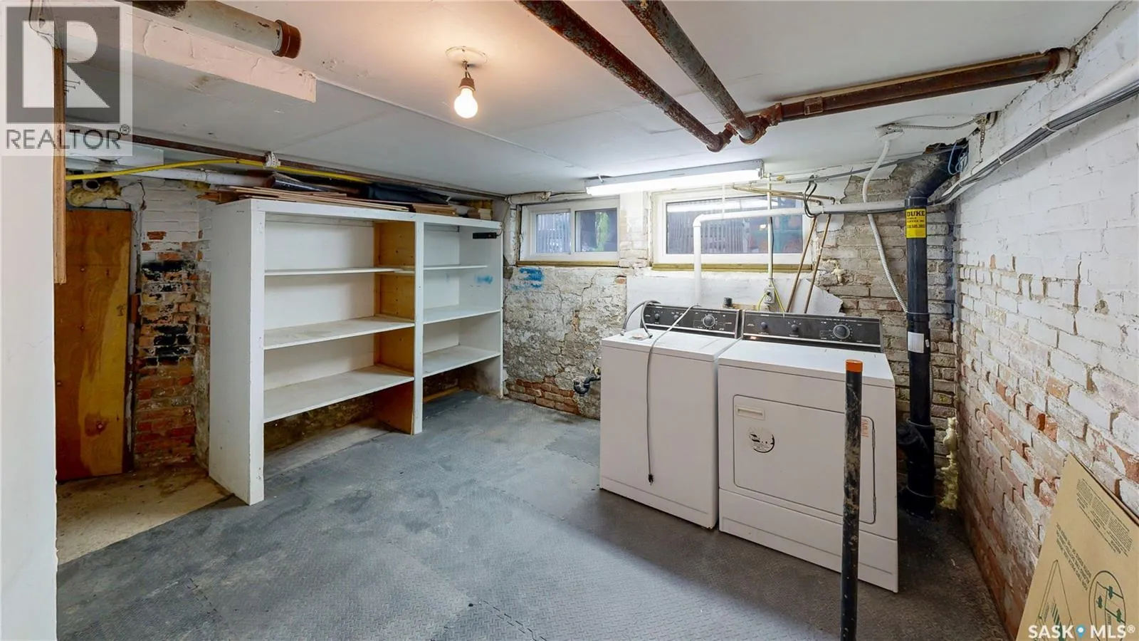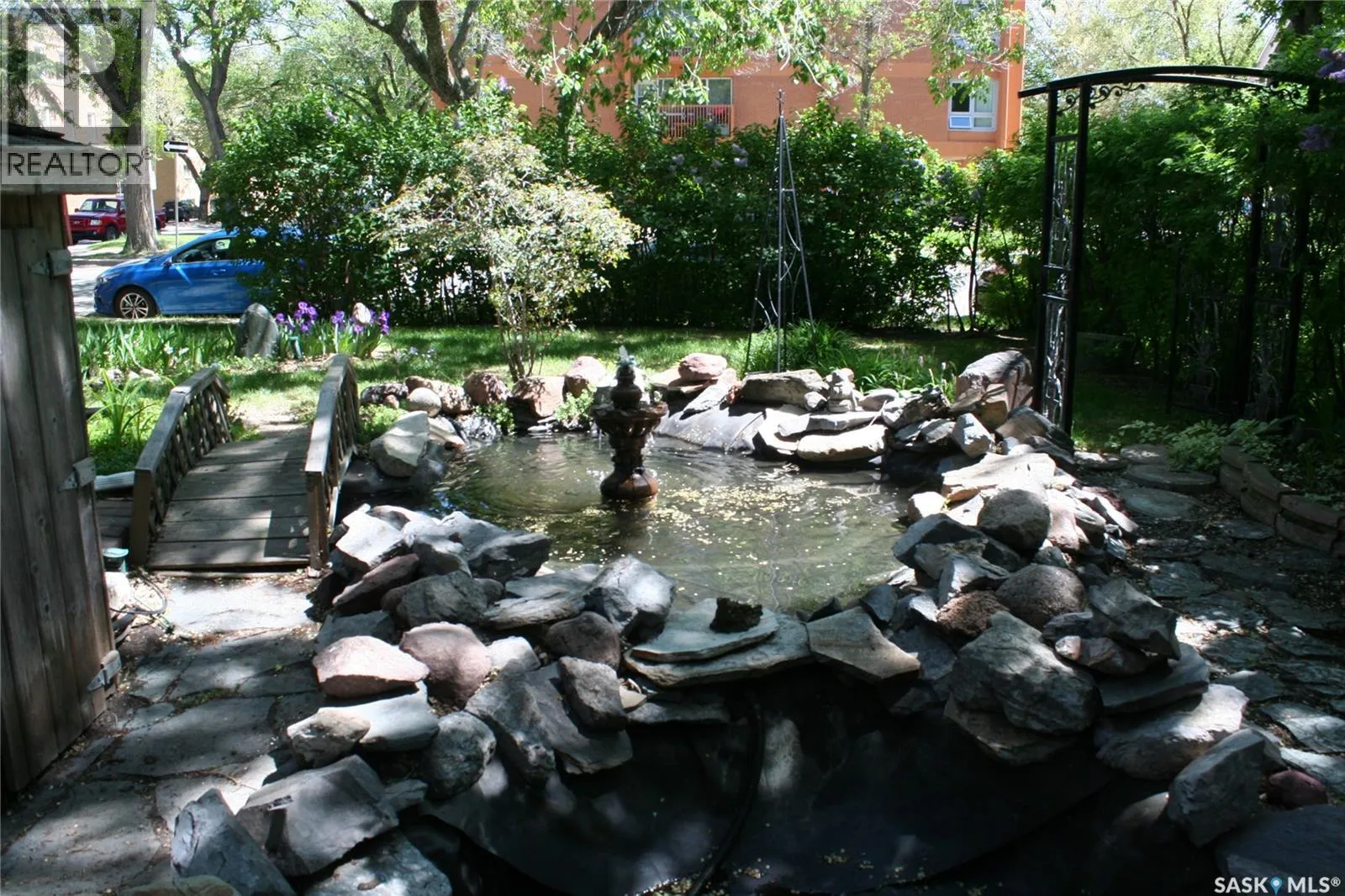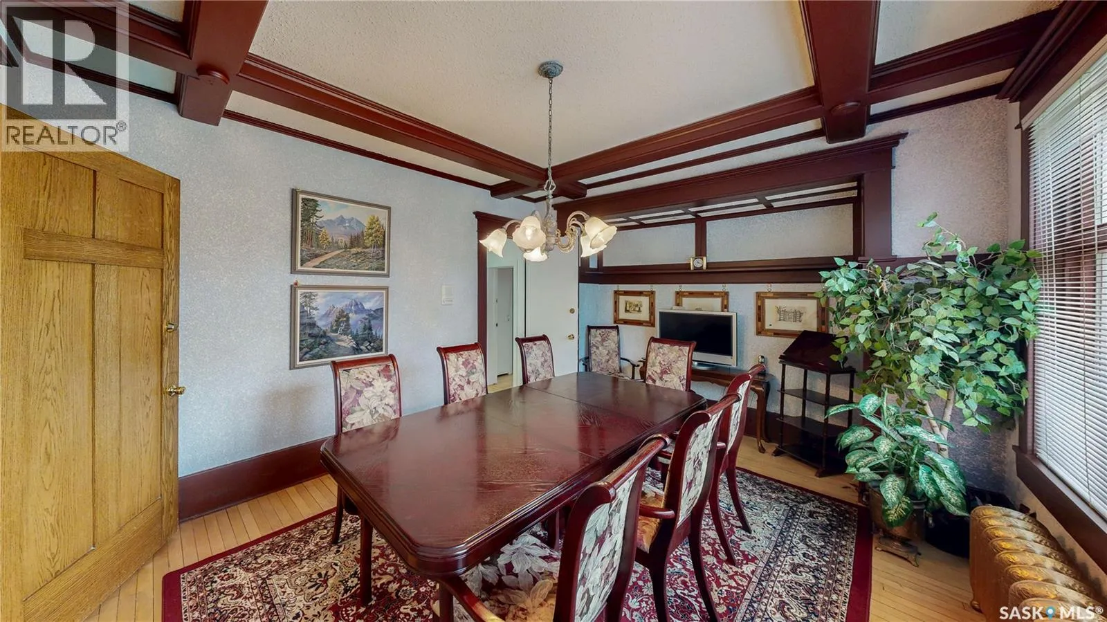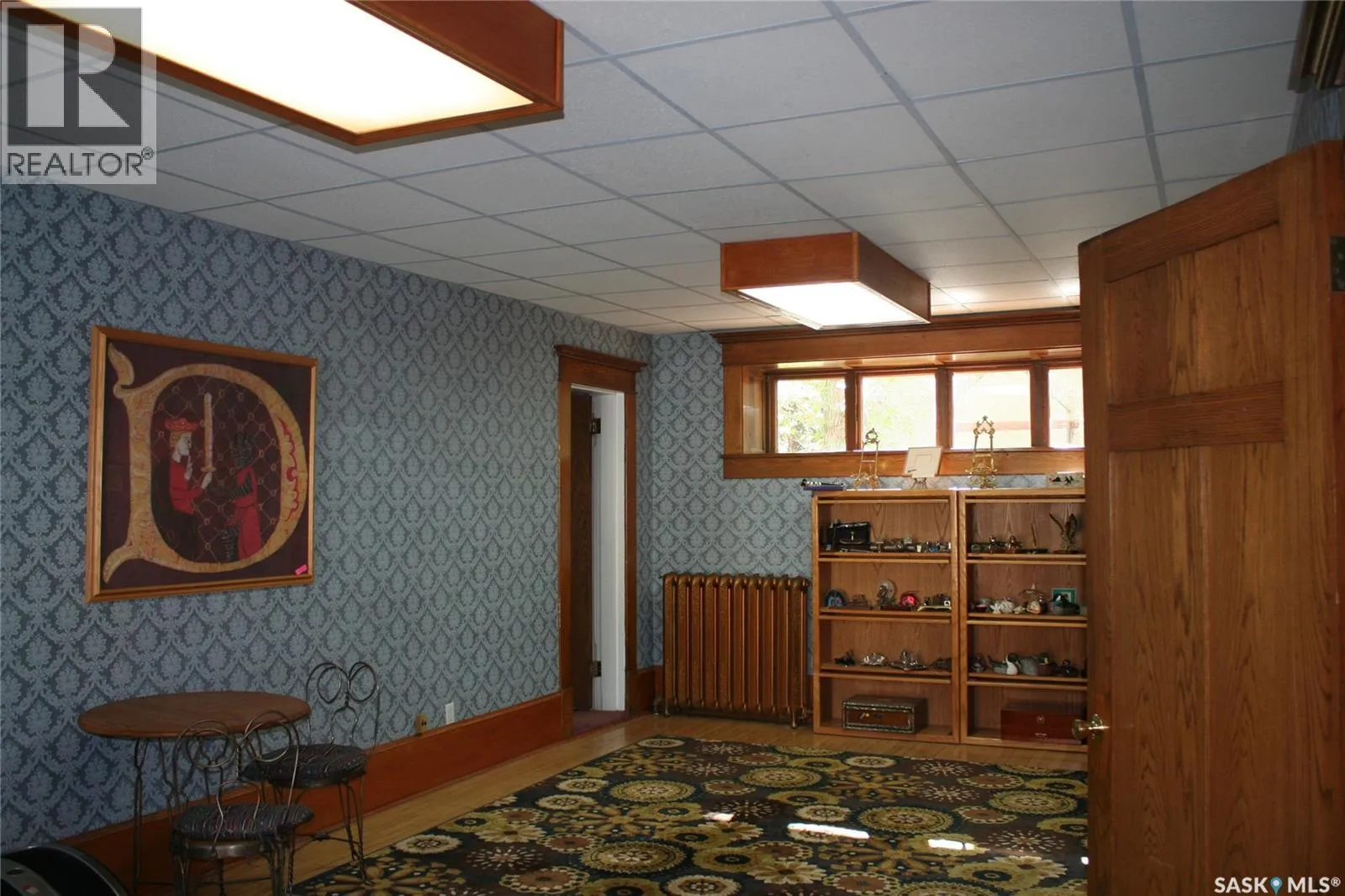 Welcome to 2301 â 15th Avenue in Regina, a rare opportunity to own and reimagine a designated municipal Heritage property in the Transition/City Centre. Ideal for a boutique business, professional office, or mixed-use concept, this landmark blends architectural character with flexible commercial potential. Built in 1910 by J.L. Rowlett Parsons, the home showcases Shingle-style Arts & Crafts design with Late Gothic Revival elements. Notable features include a central frontispiece, half-timbered gable, oriel window, and a Tudor arch entry framed by two lion figures and a functioning fountainâcreating a memorable client experience. Inside, original fireplaces, woodwork, and stained-glass windows add warmth and distinction. Two large south-facing stained-glass windows and a grape-motif feature imported from England enhance natural light and character. Spanning three levels plus a basement, the layout includes five bedrooms, five bathrooms, and multiple flexible spaces suited for offices, treatment rooms, or meeting areas. Two kitchens and laundry on the upper and lower levels support varied commercial uses. The landscaped yard features a patio and two-tiered pond, ideal for outdoor meetings or events. Underground sprinklers add convenience. Ample west-side parking and a single garage provide accessibility for staff and clients. As a Heritage property, owners may be eligible for the Cityâs Heritage Incentive Program for approved work. A unique opportunity to establish your business in one of Reginaâs most distinctive properties. (id:27476)