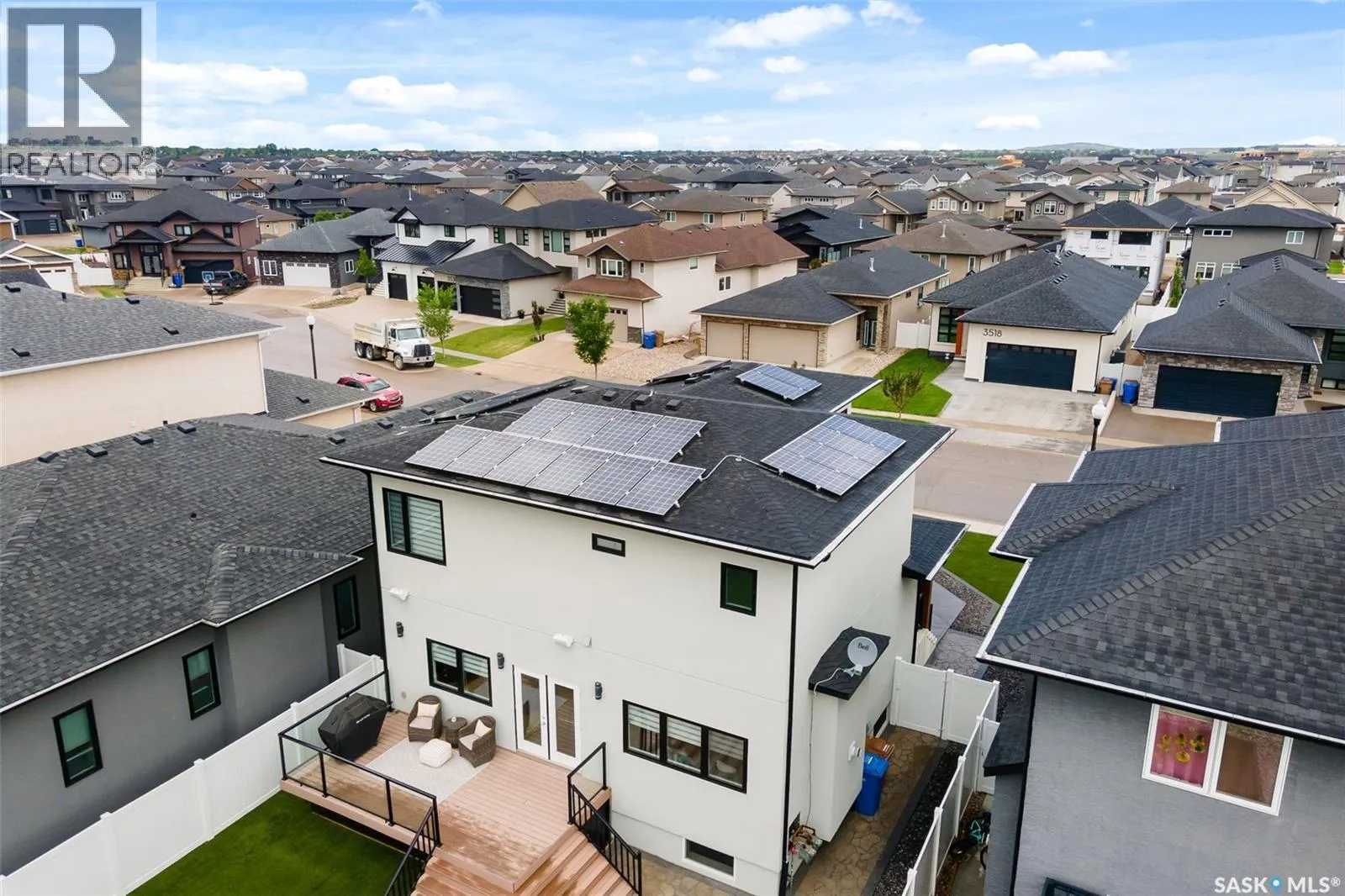 Looking for a custom-built, stunning home located in Regina's east end? You need to check out 3517 Green Marsh Crescent, a home that will save you money on your power bill and mortgage payment! This main floor is grand and spacious, with all the modern finishes you've been hunting for. The kitchen is the home's hub with a central eat-up island with storage, updated smart stainless steel appliances, quartz counters, two-toned cabinetry, and white subway tile backsplash. It's open to the substantial dining room and the cozy living room with a gas fireplace and newly installed engineered hardwood floors. A 2pc. bath completes this level. Up the stairs, you'll find a spacious bonus room, perfect for a hang-out space for the kiddos or a home office. The primary suite offers a gorgeous 4pc. Ensuite featuring heated porcelain tile floors, a stand-alone shower, and leads you to the fantastic custom walk-in closet. Two more bedrooms complete the top floor, along with another 4pc. bath and upper floor laundry! Downstairs, you'll find a gorgeous, two-bedroom regulation suite with a separate entrance and 9 foot ceilings that will help you offset your mortgage payments. There's a beautifully landscaped backyard featuring three raised garden beds, a large concrete patio, artificial turf, and a low-maintenance deck. So many extras to include: a double heated garage, solar panels to help with that power bill, built-in speakers, and the blinds. Walking distance from the elementary schools and incredibly close to all the Acre 21 amenities like grocery, gas, and restaurants. This one is an absolute showstopper and needs to be seen in person. (id:27476)