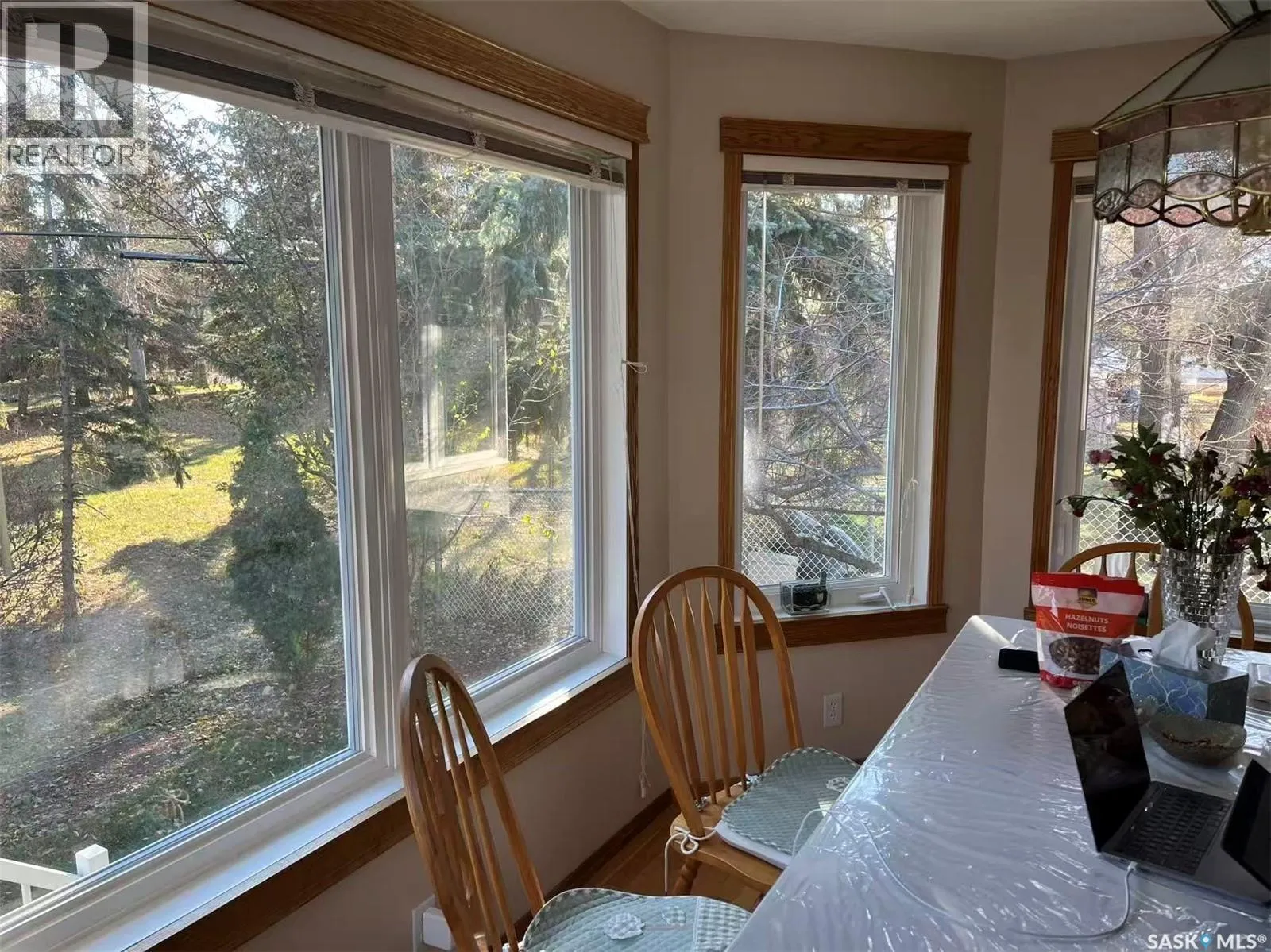 Situated in one of the most sought-after locations, this impressive property sits on a premium second lot adjacent to Wascana Parkway and the University of Regina, backing onto a peaceful forested area. Offering 2,345 sq. ft. of well-designed living space, the home features a striking stucco and stone exterior, shake roof, and aggregate driveway and walkways. The fully insulated triple attached garage includes in-floor hot water heating, direct entry, and backyard access. Inside, a spacious foyer with ceramic tile leads to a bright main level with a formal living and dining area, and a functional kitchen with island, track lighting, and dinette with bay window overlooking mature trees. Garden doors open to a 22â x 14â tiered composite deck (2012). Oak hardwood flooring enhances both the kitchen and dinette. The family room features a full oak feature wall with built-ins and a gas fireplace with stone surround. A main floor office and 2-piece bath add convenience. Upstairs, the primary suite offers hardwood flooring, a large walk-in closet, and a 5-piece ensuite with jetted tub, dual sinks, separate shower, and heated tile floors. Additional highlights include triple-pane PVC windows, high-efficiency furnace, air-to-air exchanger, and energy-efficient water heater (2014). A rare opportunity combining location, privacy, and quality upgrades in a prestigious setting. (id:27476)