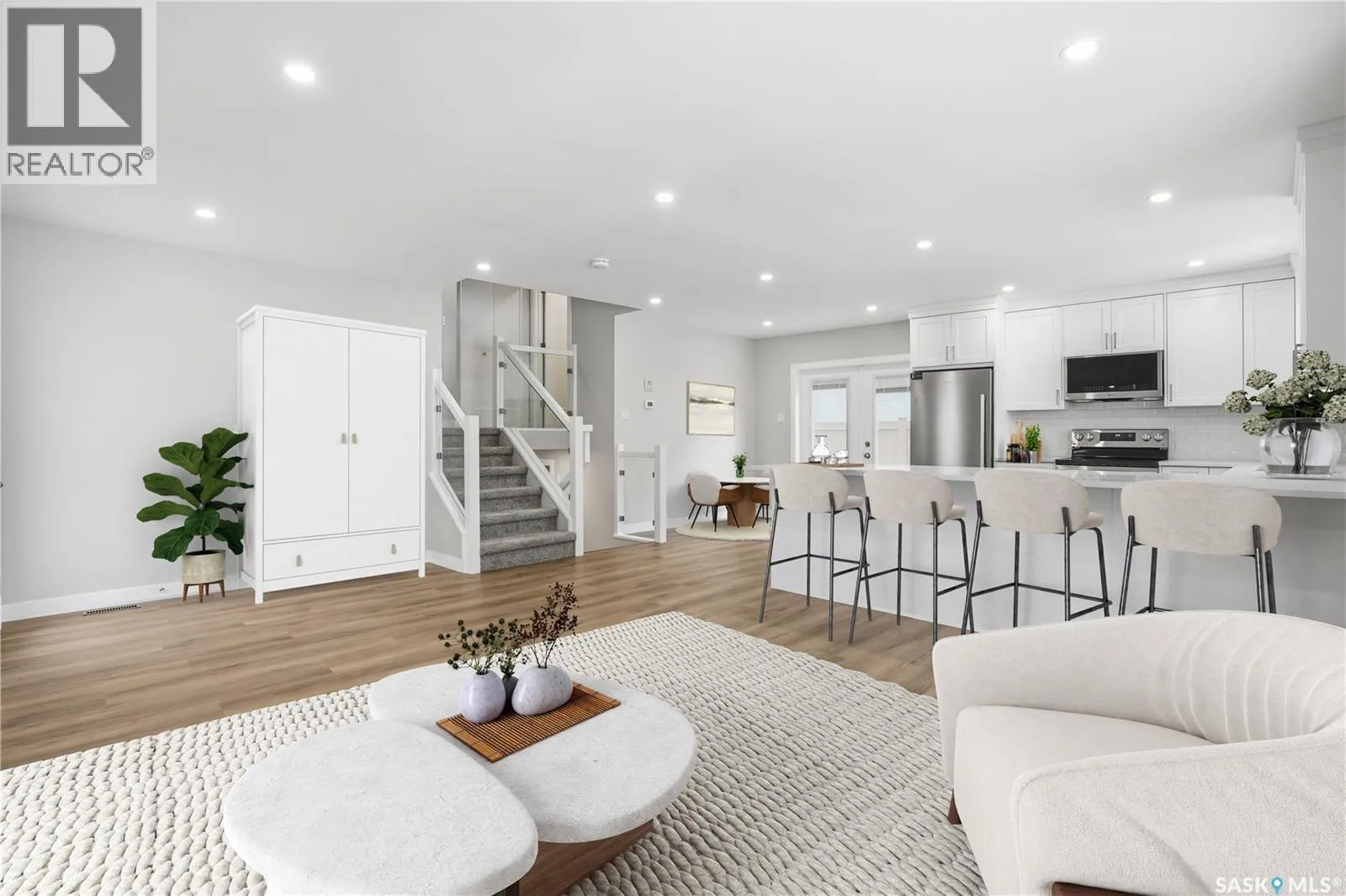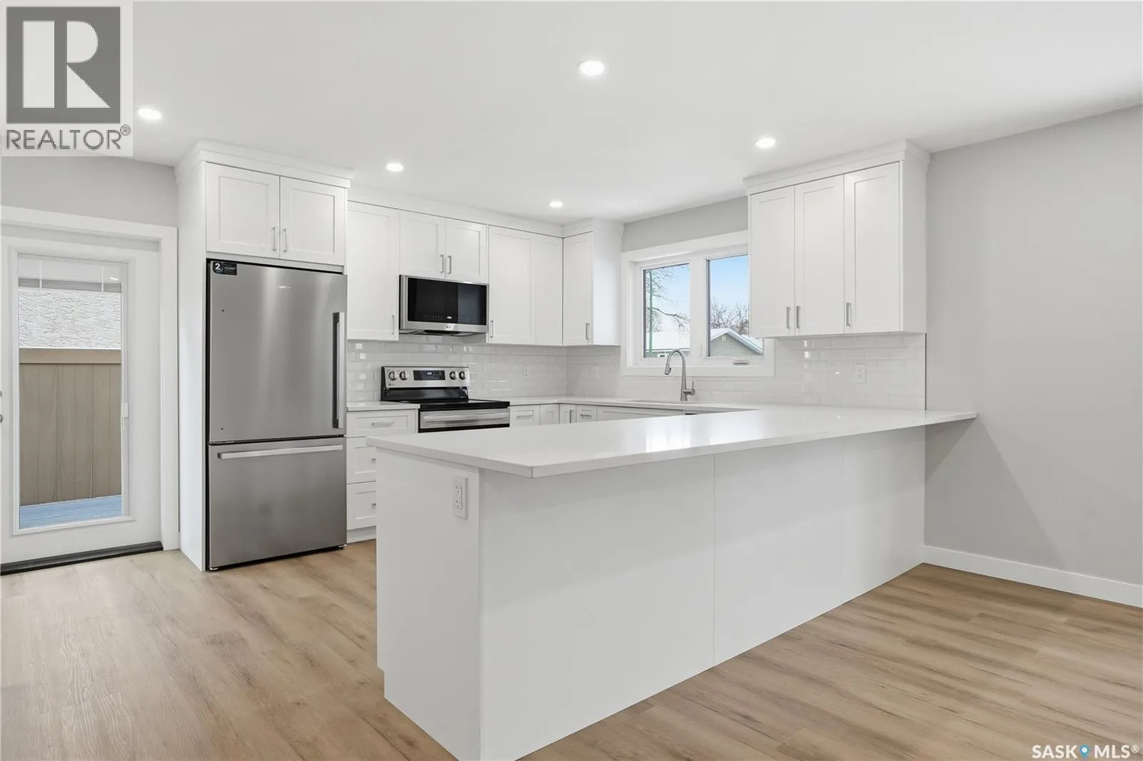 ⢠SHOWHOME STYLE LIVING ⢠PROFESSIONALLY RENOVATED ⢠PRIVATE YARD ⢠1.5 CAR GARAGE ⢠1,536 SQ FT ⢠This gorgeous home delivers a true open-concept layout, designed for both everyday living and effortless entertaining. The stunning chefâs kitchen is the centerpiece, featuring locally crafted custom cabinetry and modern hardware, quartz countertop, designer beveled tile backsplash, brand-new stainless steel appliances, soft-close drawers/doors, handy double drawer for garbage/recycling and an oversized sit-up island with seating for up to five. The main level showcases vinyl plank flooring, modern pot lighting throughout and garden doors off the dining area leading to a new composite deck, perfect for BBQs. Custom glass railings guide you up to three spacious bedrooms with plush carpet, including a generous primary retreat. The main bathroom is beautifully finished with a quartz counter vanity and tile surround. Down a few steps to the third level you will find large windows, a bright and roomy family space, fourth bedroom or office, a stylish two-piece bathroom with a marble counter vanity and full-sized stacked laundry. Additional upgrades include a high-efficiency furnace and A/C, windows, private side ABS sewer line is in great shape, new doors, new shingles on both the house and garage, plus a new overhead and man door on the garage. The garage slab and interior are in excellent condition. Some pictures shown have virtual staging. A complete package - beautiful home and truly excellent neighbors. (id:27476)