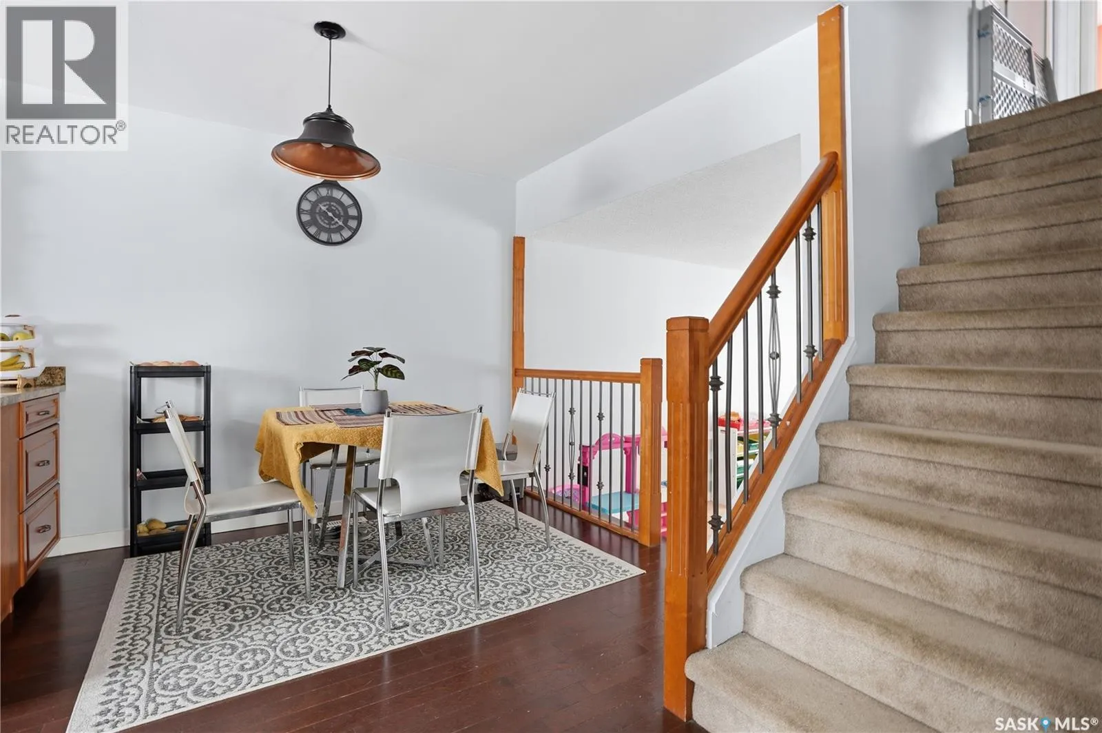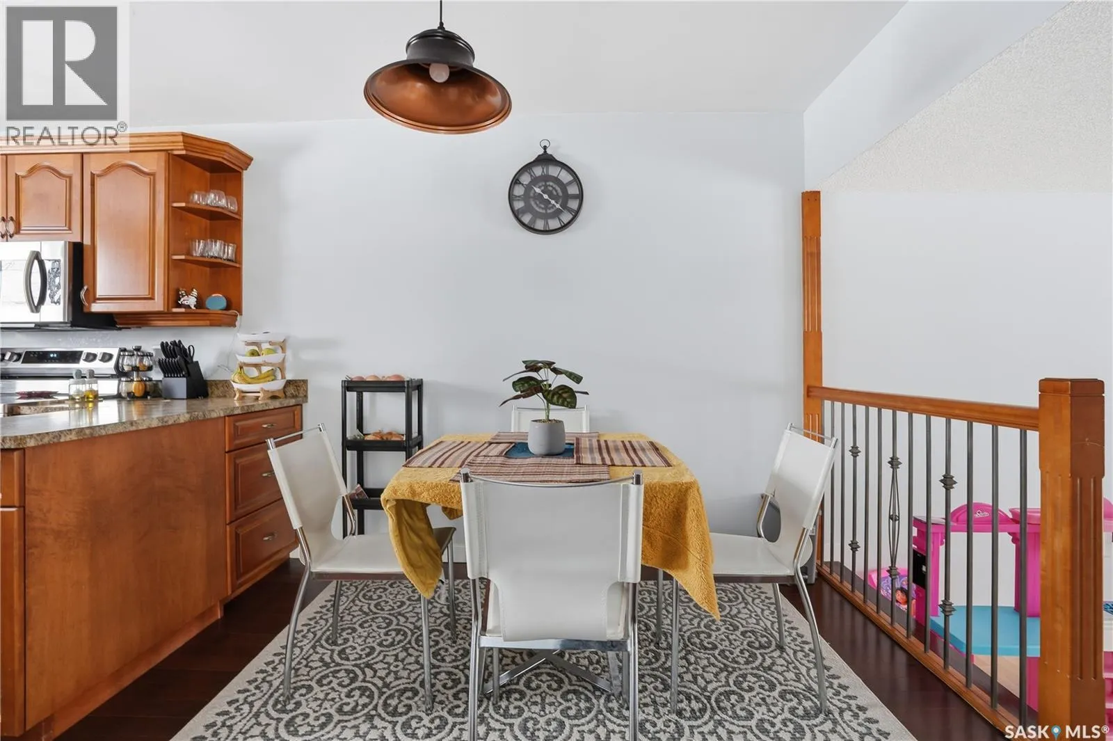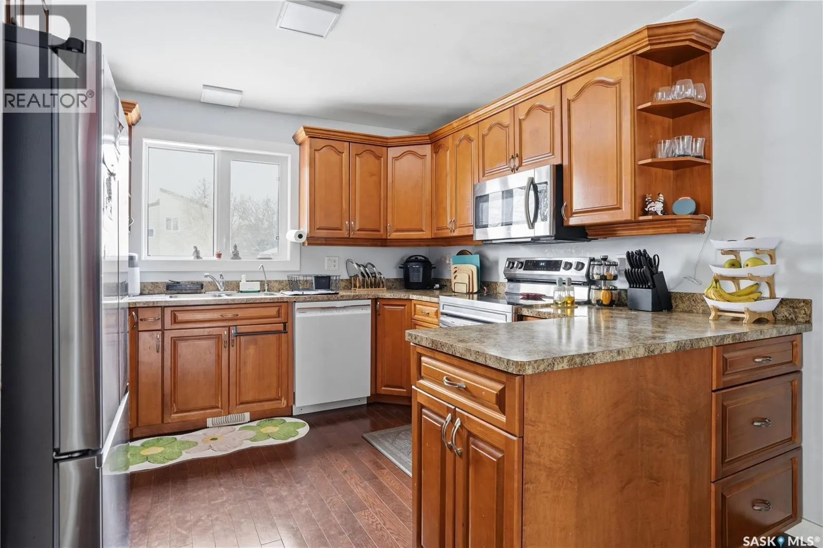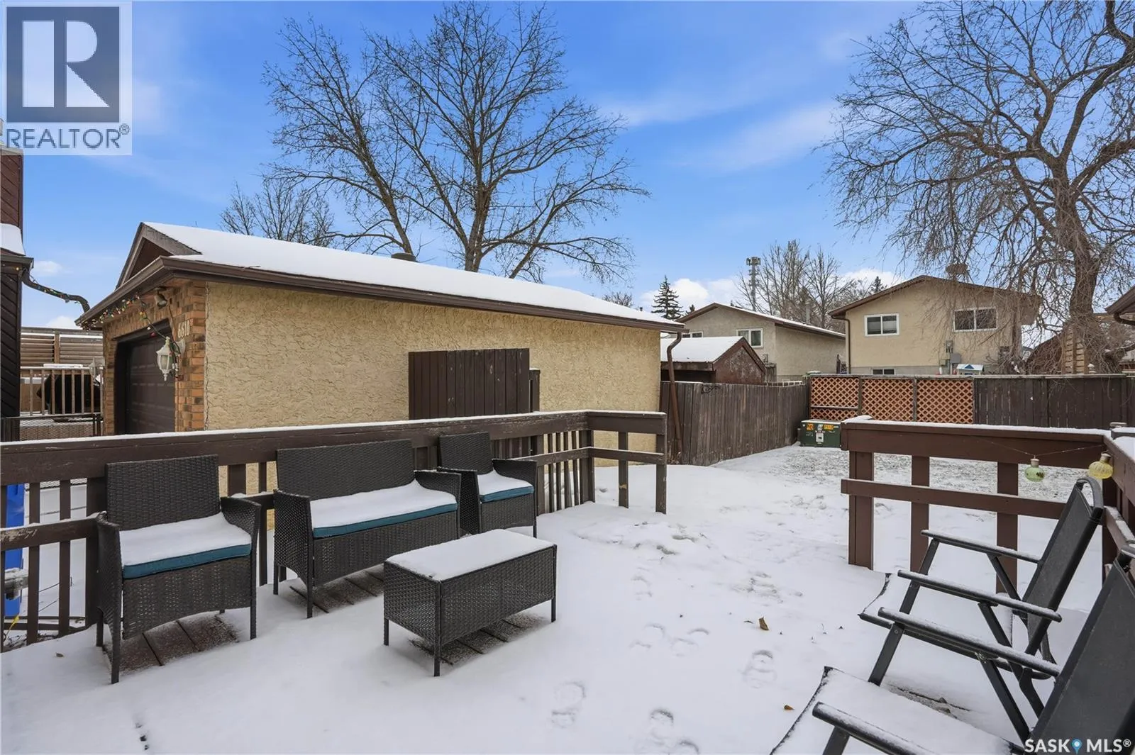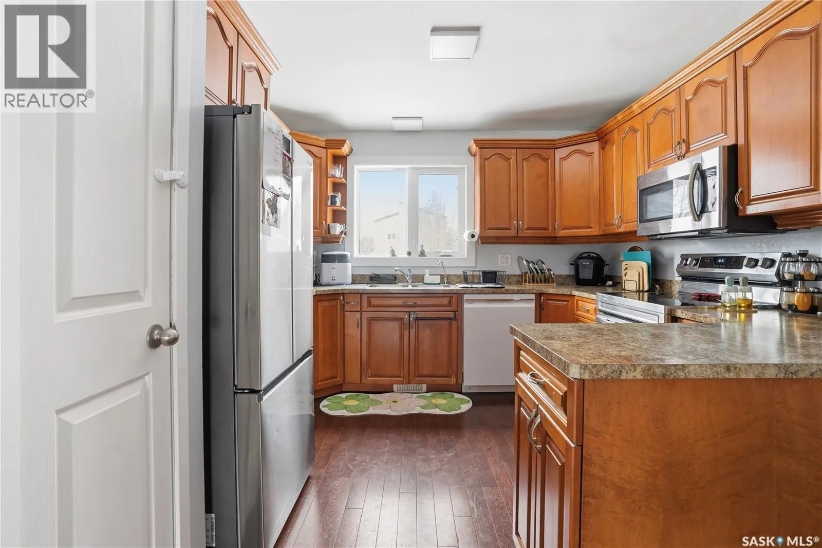 Move-in ready, updated, and ideally located in Reginaâs Northwest â just minutes from schools, parks, and everyday amenities. This spacious home offers a functional layout with multiple living areas. The main floor features a bright living room, a well-appointed kitchen with ample cabinetry, counter space, and stainless steel appliances â refrigerator (2021), stove (2021), and dishwasher (2024), Microwave plus a convenient dining nook. A sunken family room opens to the private deck and yard, perfect for relaxing or entertaining. The main floor also includes a primary bedroom with a renovated ensuite in modern tones. Upstairs offers three additional bedrooms, including a second primary with a walk-in closet and easy access to the 4-piece bathroom. Recent updates include triple pane PVC windows, new exterior doors(2022), furnace & A/C (2022), recently replaced house shingles, and garage shingles (2025) â adding efficiency and value. The basement features a rec room, laundry, and excellent storage space. Outside, enjoy a private yard with deck, green space, and an oversized double detached garage. A great opportunity to own a well-updated home in a family-friendly location close to schools and amenities. Book your showing today. (id:27476)