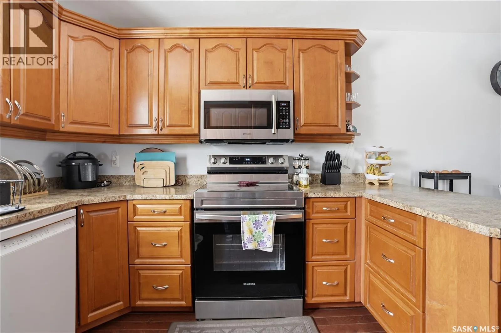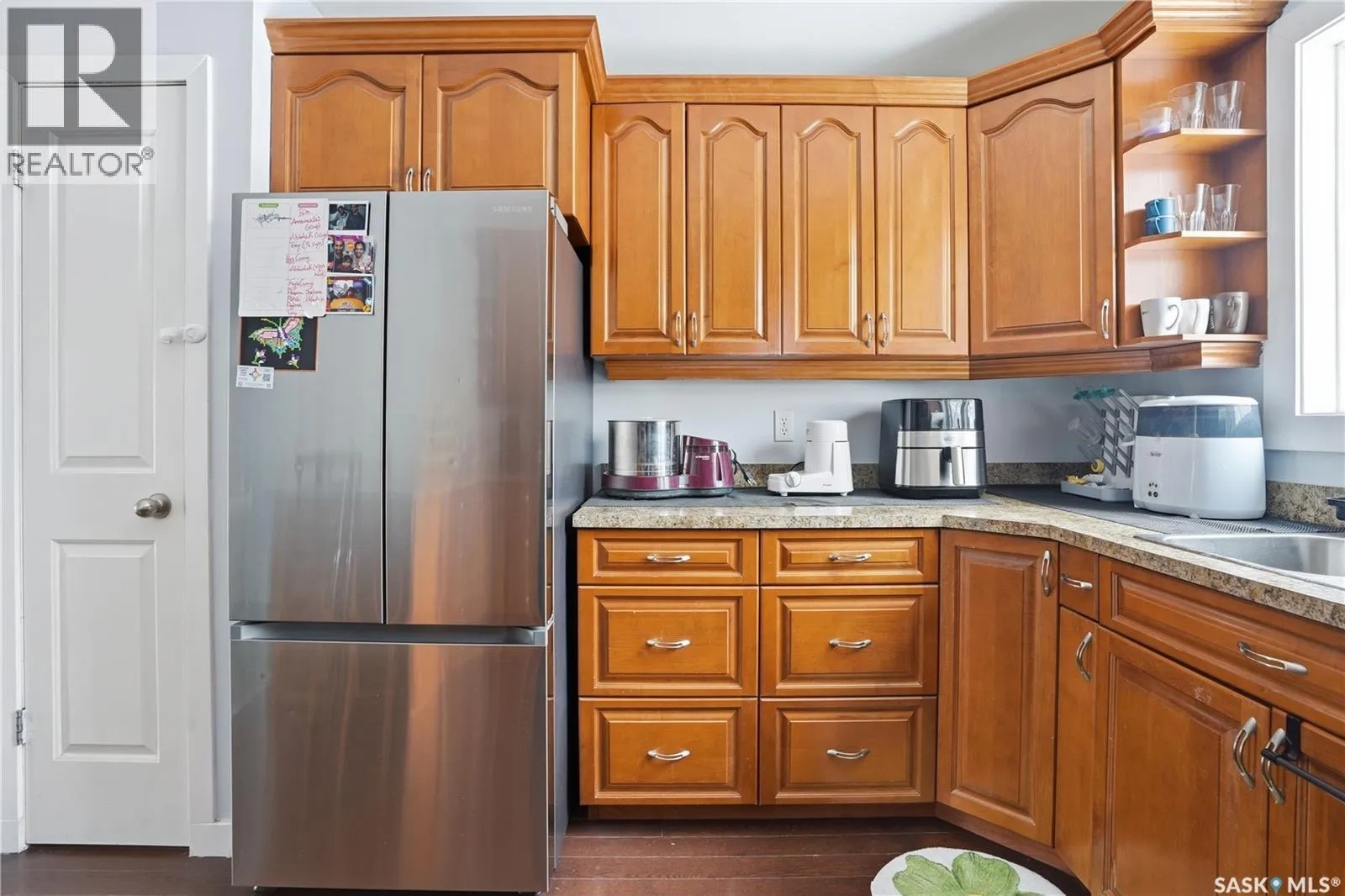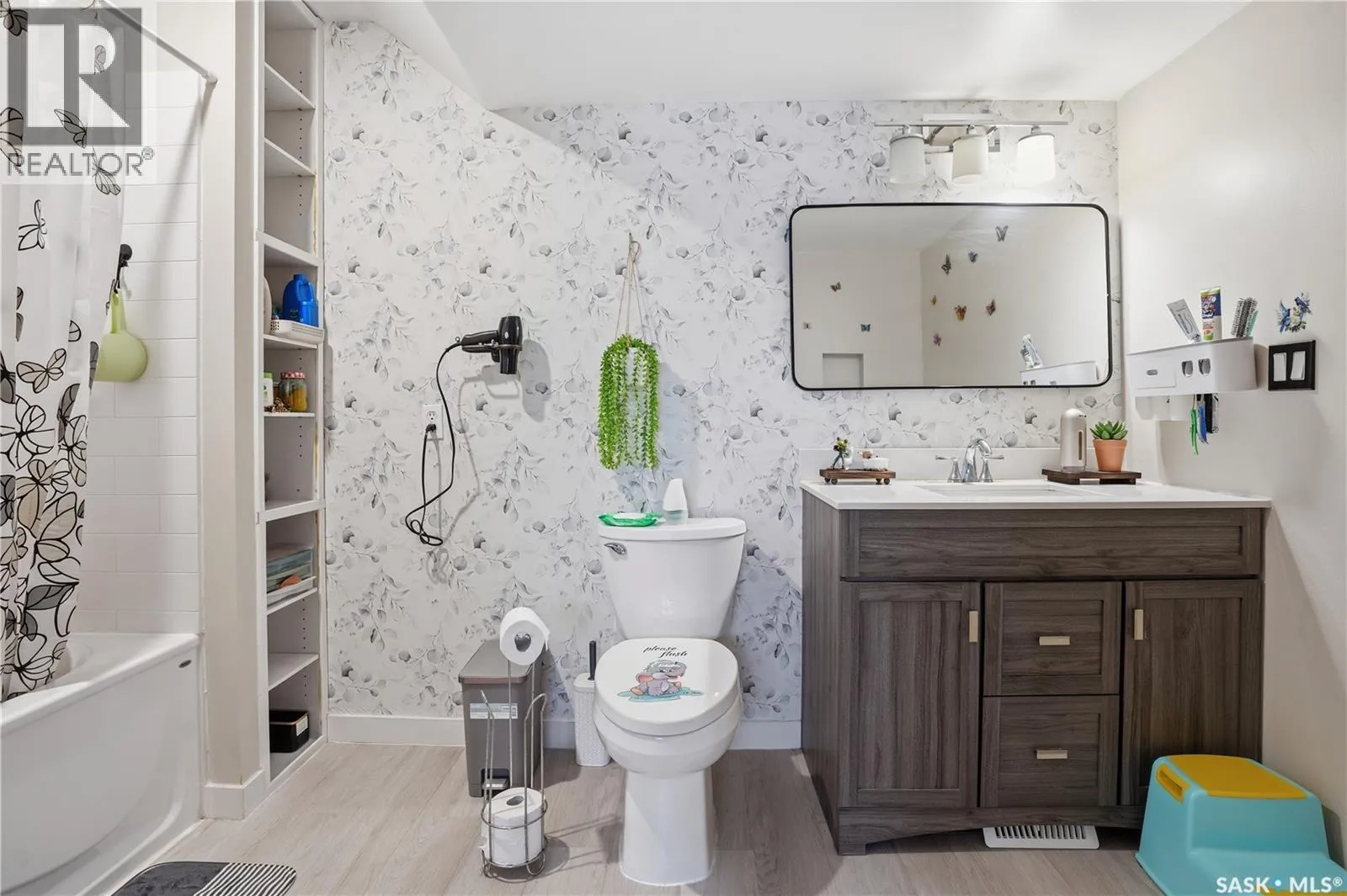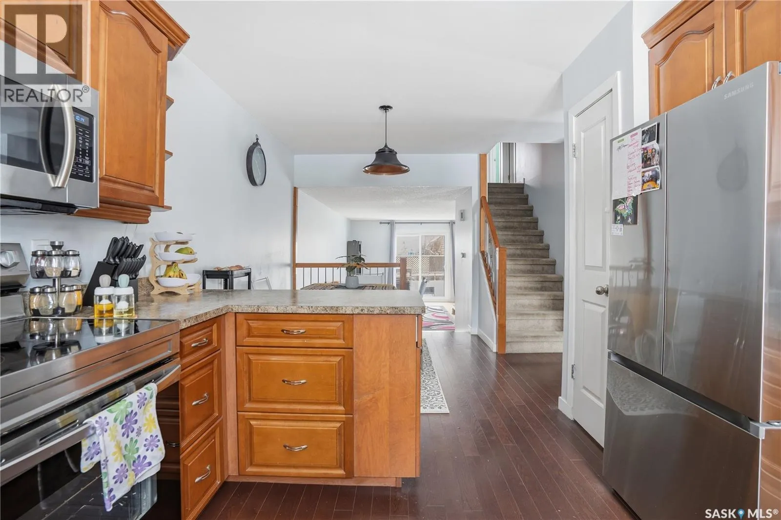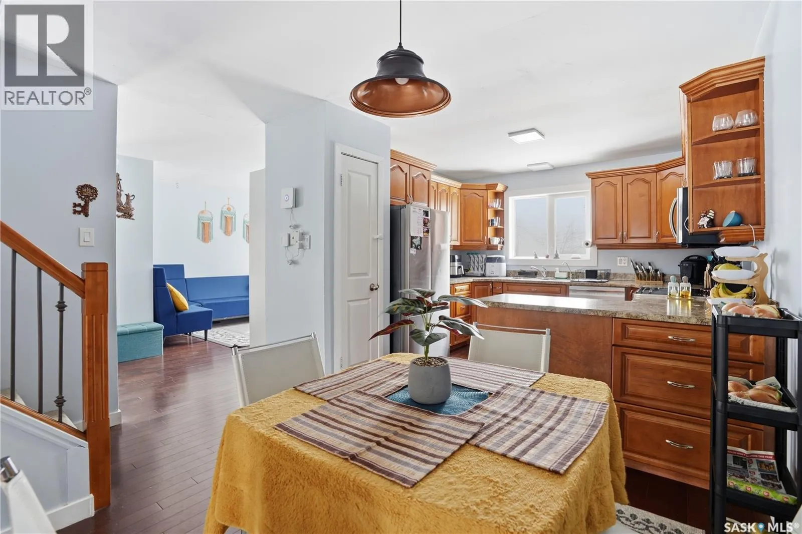 Move-in ready, updated, and ideally located in Reginaâs Northwest â just minutes from schools, parks, and everyday amenities. This spacious home offers a functional layout with multiple living areas. The main floor features a bright living room, a well-appointed kitchen with ample cabinetry, counter space, and stainless steel appliances â refrigerator (2021), stove (2021), and dishwasher (2024), Microwave plus a convenient dining nook. A sunken family room opens to the private deck and yard, perfect for relaxing or entertaining. The main floor also includes a primary bedroom with a renovated ensuite in modern tones. Upstairs offers three additional bedrooms, including a second primary with a walk-in closet and easy access to the 4-piece bathroom. Recent updates include triple pane PVC windows, new exterior doors(2022), furnace & A/C (2022), recently replaced house shingles, and garage shingles (2025) â adding efficiency and value. The basement features a rec room, laundry, and excellent storage space. Outside, enjoy a private yard with deck, green space, and an oversized double detached garage. A great opportunity to own a well-updated home in a family-friendly location close to schools and amenities. Book your showing today. (id:27476)