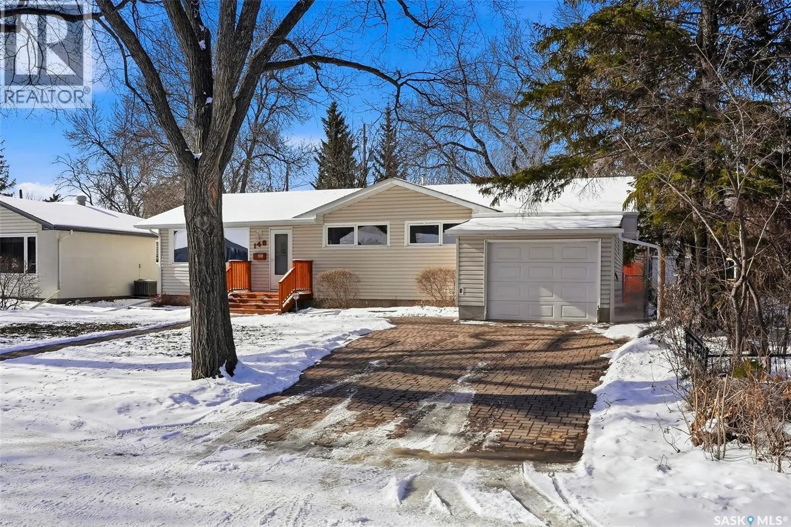 Welcome to this spacious and well-maintained bungalow in the desirable Whitmore Park neighborhood, perfectly located near schools, south-end amenities, and just steps from a passive park. This home offers exceptional space for families, featuring four bedrooms and two full bathrooms on the main floor. A thoughtful 1973 addition expanded the home to include an attached garage, a generous primary bedroom, and a private ensuite complete with a relaxing jetted tub and separate stand-up shower. The primary suite is filled with natural light from windows on two sides and showcases beautiful hardwood flooring. The main living areas have been refreshed with brand new carpet, while the kitchen and bathrooms feature durable tile flooring. The bright kitchen is well-equipped with a cooktop, wall oven, and stainless steel refrigerator - perfect for everyday living and entertaining. All main floor windows have been upgraded to PVC, adding comfort and efficiency. The basement offers a great opportunity to customize to your taste, with existing spaces including a rec room, family room, a 2-piece bathroom, and a large storage/laundry area. Additional features include a high-efficiency furnace, HRV system, 100-amp electrical panel, sump pump, and backflow valve for added peace of mind. Step outside to enjoy the west-facing backyard, complete with plenty of mature trees, a deck, chain-link fencing on three sides and convenient access to the easement. Recent exterior updates such as vinyl siding, shingles, gutters with leaf guard and the deck further enhance the value of this home. Donât miss your chance to own this well-located home with plenty of space and potential, contact your REALTOR® today to book a private showing! As per the Sellerâs direction, all offers will be presented on 04/02/2026 12:00PM. (id:27476)