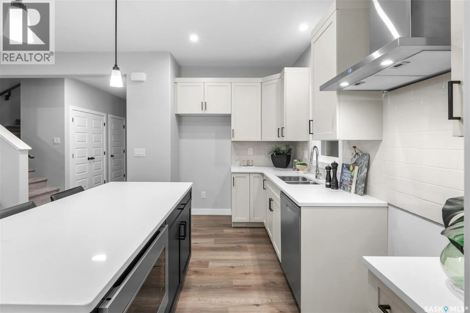 UNDER CONSTRUCTION: Welcome to "The Holdenberg" by premier builder Ehrenburg Homes in the desirable Harbour Landing community! This exceptional park backing home showcases top-quality craftsmanship and premium materials throughout. The main floor boasts an open-concept layout perfect for entertaining. A welcoming front entry leads to a bright and expansive living room, highlighted by a stunning stack stone feature wall and an elegant electric fireplace. The contemporary kitchen offers a sleek center island with an eating bar, a large pantry, and quartz countertops, while the oversized dining area is ideal for family gatherings. A convenient 2-piece bath is located off the front foyer. Upstairs, the expansive primary suite includes a walk-in closet and a private 3-piece ensuite. The second level also features a fantastic bonus room, two additional well-sized bedrooms, a full bath, and a laundry room for ultimate convenience. The basement is suite-ready with a side entrance offering endless potential. The exterior is just as impressive, with front landscaping, a front sidewalk, and underground sprinklers included. Plus, enjoy peace of mind with a Saskatchewan New Home Warranty. This home blends style, function, and superior constructionâyour dream home awaits! (PST/GST are included within purchase price). Photos from a previous build. (id:27476)