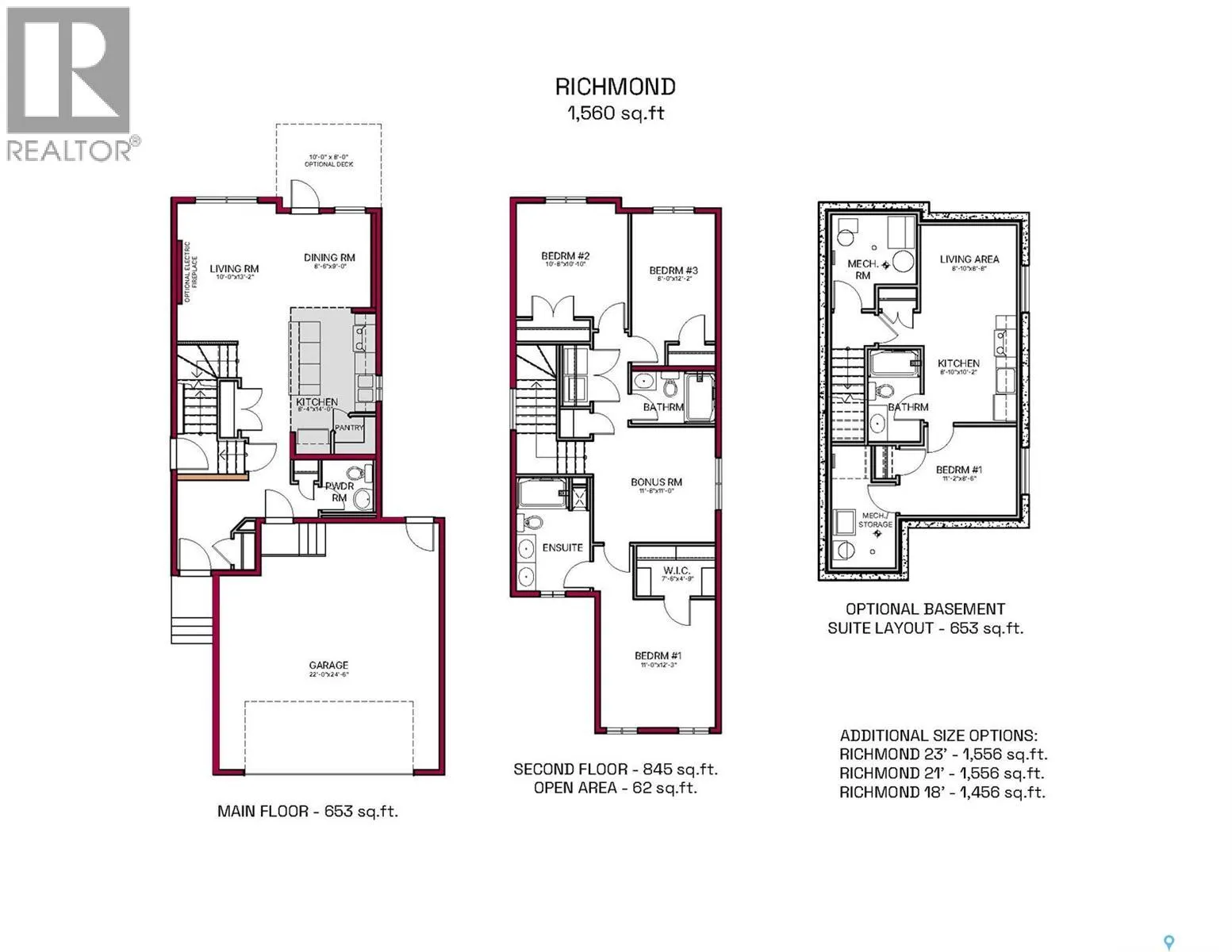Welcome to "The Richmond" by premier builder Ehrenburg Homes, located in the vibrant Eastbrook community. This beautifully designed two-storey offers 1,556 sq. ft. of functional living space with premium finishes throughout. The main floor welcomes you with a bright, open-concept designâperfect for family living and entertaining. The spacious living room features a striking stack stone feature wall and an elegant electric fireplace, while large windows fill the space with natural light. The contemporary kitchen is the heart of the home, complete with quartz countertops, a large island with eating bar, and modern cabinetry. The adjoining dining room is ideal for gatherings, and a convenient 2-piece bath rounds off the main level. Upstairs, youâll find three generous bedrooms. The primary suite boasts a walk-in closet and private 3-piece ensuite with dual sinks. Two additional bedrooms, a full bath, and a dedicated laundry room provide comfort and practicality for busy households. A versatile bonus room adds even more living spaceâperfect as a family lounge, playroom, or home office. The basement is open and ready for your future development, whether you envision a rec room, gym, or guest suite. Outside, front landscaping, underground sprinklers, a front sidewalk, and a double attached garage. With Saskatchewan New Home Warranty protection and Ehrenburgâs superior craftsmanship, The Richmond is the perfect blend of style, space, and peace of mind. (PST/GST are included within purchase price). NOTE: Interior photos are from a previous build. Same model but some colours may vary. (id:27476)
