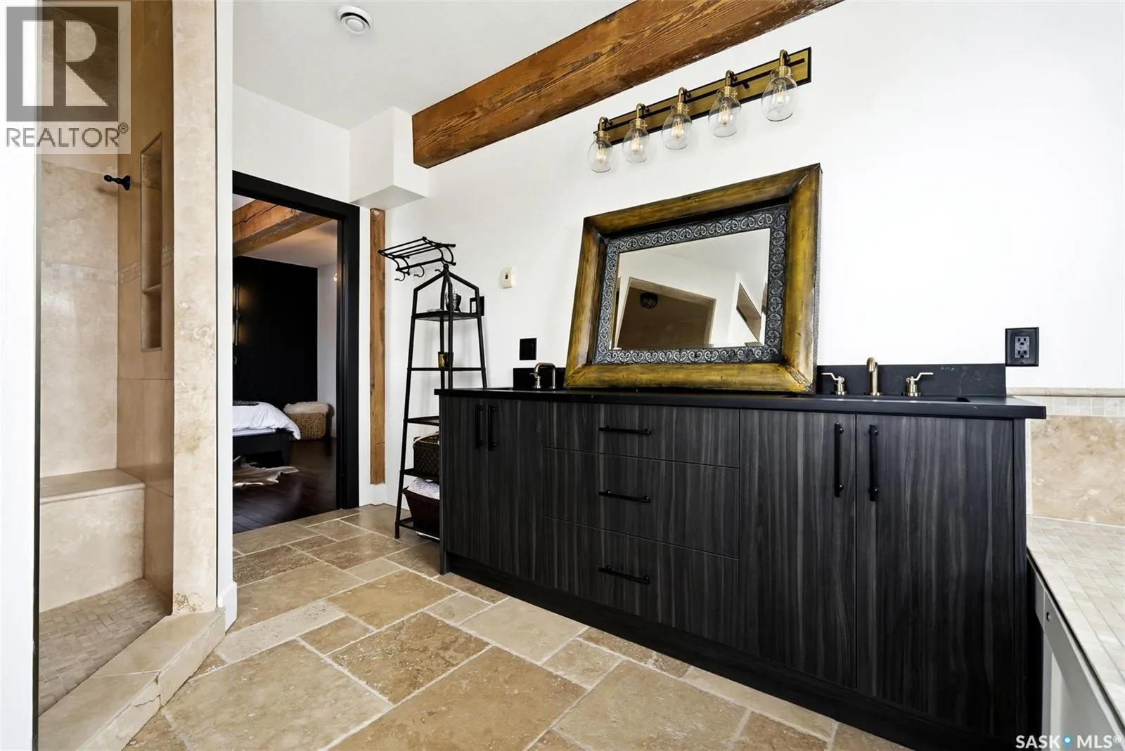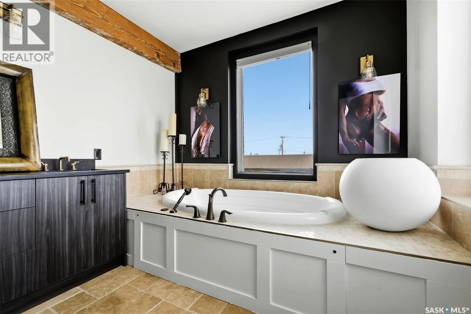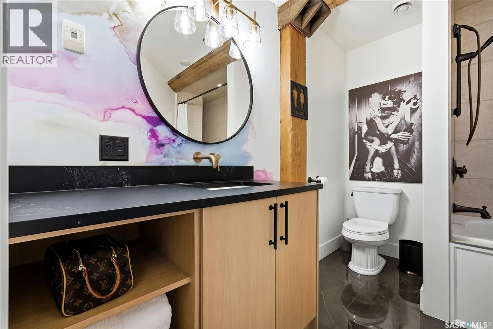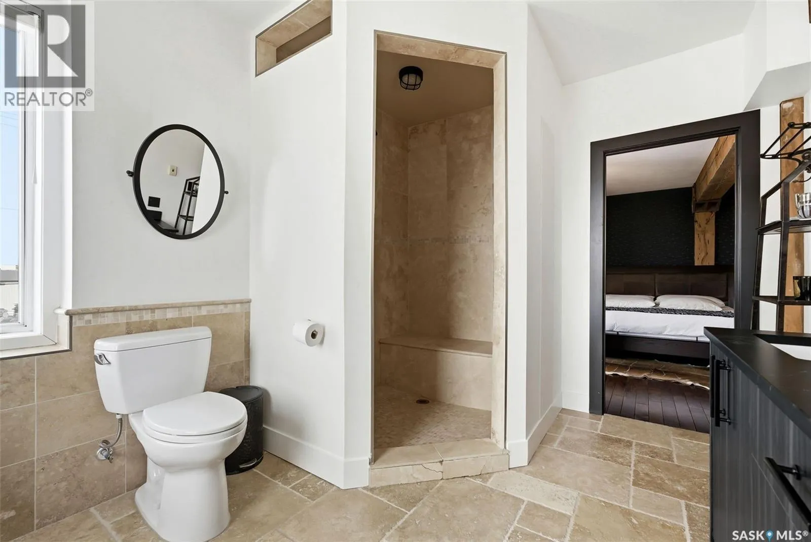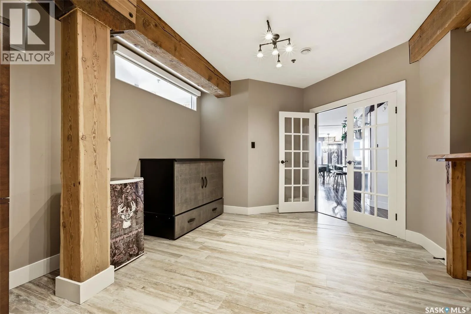 Located in Reginaâs Warehouse District, this stunning one-of-kind loft delivers a rare blend of character, space, and modern updates. The open-concept design features two distinct living areas, formal dining space, and beautifully updated kitchenâall anchored by rich American walnut hardwood and framed by original exposed brick and beam construction. The space feels both effortlessly cool & very functional. South & west-facing exposures flood the space with natural light while offering views of the downtown skyline, and our iconic prairie sunsets. The spacious primary suite features a walk-in closet and an updated ensuite complete with soaker tub, custom tile shower, & double vanity. The 2nd bedroom also includes a walk-in closet w/custom organizers. The main bath has also been updated, elevating everyday comfort with heated floors and a jetted tub/shower combo. The kitchen is both stylish & functional, showcasing updated dark-stained Gun Metal Blue maple cabinetry, concrete countertops, stainless appliances, tiled backsplash & statement feature wall by Justine Marie Studios. The solid wood stand-up eating bar creates the perfect hub for hosting. And we canât forget about the newly added sleek glass-front wine cellarâan elegant focal point for entertaining and display. A versatile laundry/bonus room offers flexibility for a home office, den, guest space, or gym. Step outside to your impressive 19â x 23â private deck complete with a natural gas BBQ hookup, water line for plants, low-maintenance decking, and electronic sunshades. This outdoor space overlooks the landscaped courtyard & pool shared by only nine owners. Highlights include: Double detached garage + parking stall inside the gated compound; large basement storage unit; Updated appliances (KitchenAid French Door fridge & dishwasher); Owned water heater; Updated lighting, paint & remote blinds throughout. Contact your agent to schedule your private viewing. (id:27476)
