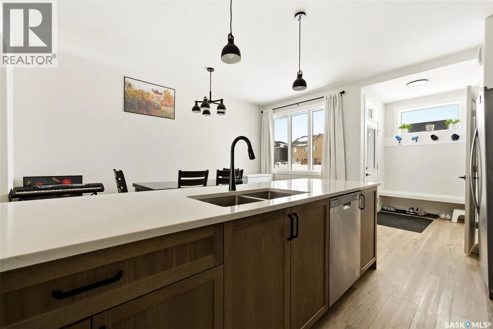 Welcome to this family friendly home in The Towns, where modern style meets a thoughtfully designed layout, perfect for todayâs lifestyle. This 3-bedroom, 3-bathroom home is bright, inviting, and finished with contemporary touches throughout. The main floor offers a seamless flow from the living room into the kitchen, complete with stainless steel appliances and a large island, ideal for both everyday living and effortless entertaining. Upstairs, youâll find three spacious bedrooms, including a well-appointed primary retreat with its own private ensuite. A versatile bonus space adds flexibility for a home office, reading nook, or kidsâ play area, while convenient second-floor laundry makes daily routines that much easier. Step outside and enjoy a location that truly stands outâfacing Horizon Park, where youâll have access to a skating rink, playground, and even the Regina Farmersâ Market right across the street. Itâs the kind of setting that brings lifestyle and community together. The basement features a separate side entrance, offering excellent potential for future developmentâwhether youâre envisioning additional living space, a suite, or a custom design to suit your needs. Outside, the yard is mostly fenced and includes a detached garage, adding both function and value. A fantastic opportunity to own a like-new home in a growing, family-friendly neighbourhoodâwhere modern living meets everyday convenience. (id:27476)
