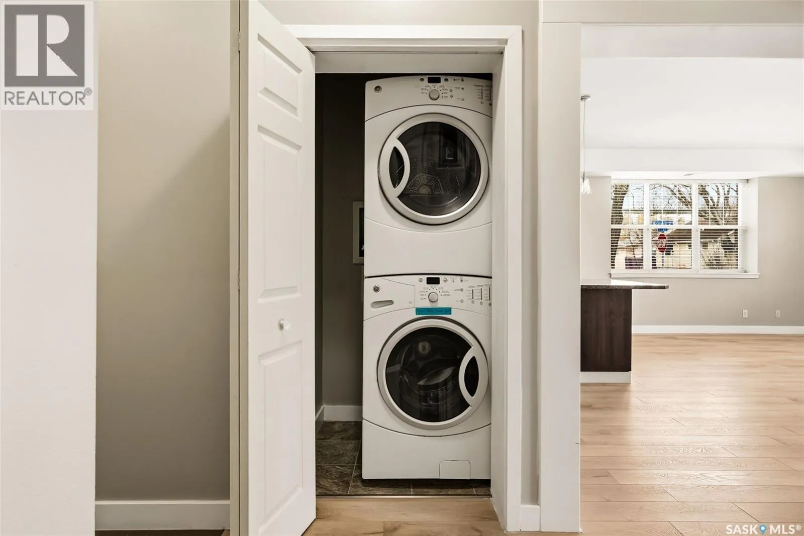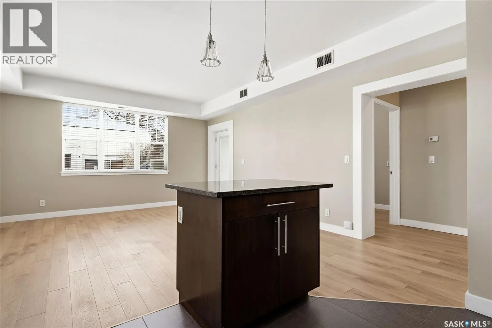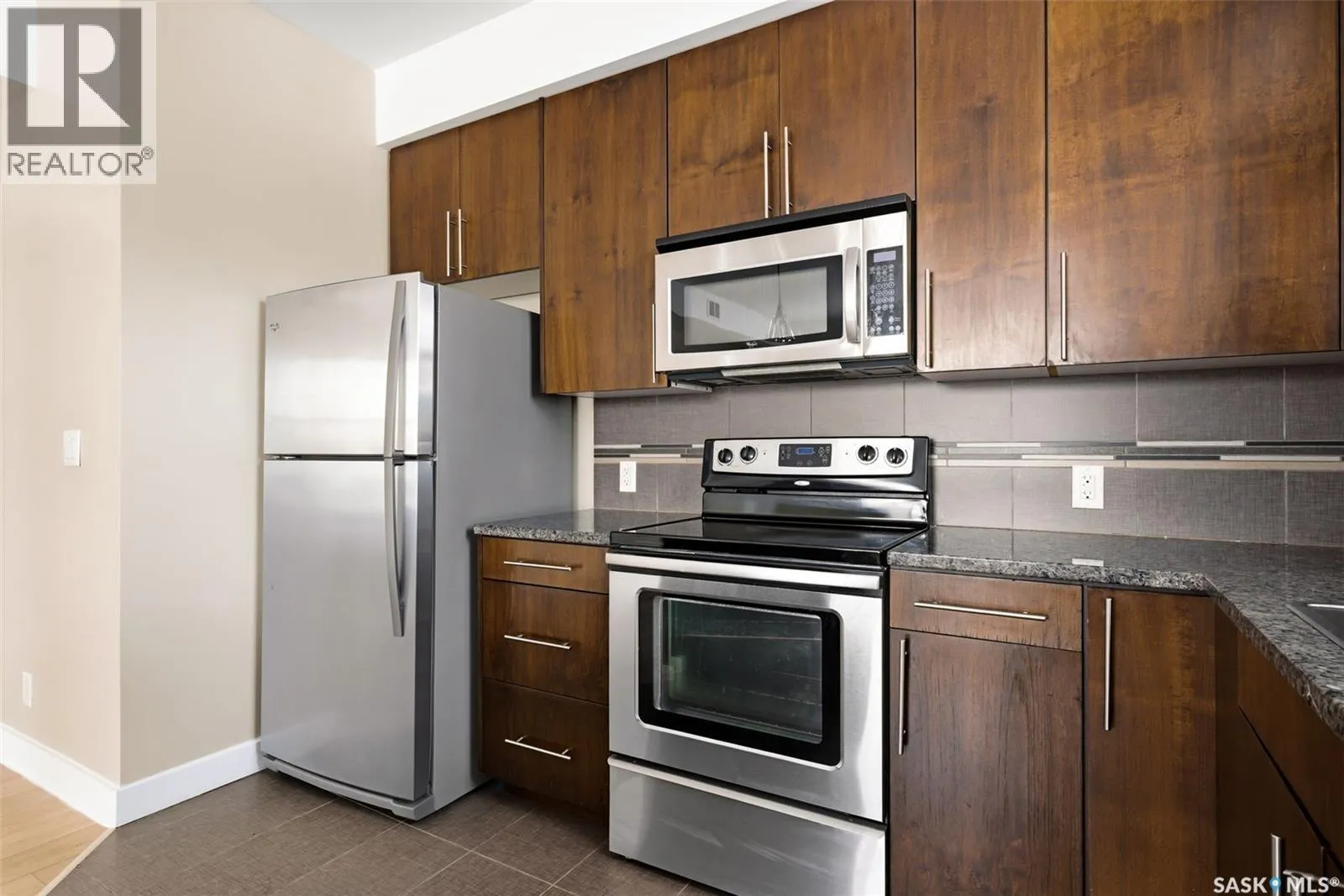 The Deveraux is a unique 2012 built condo complex, just steps from the General Hospital, high schools and more. This main floor, North-West corner unit has two bedrooms, two bathrooms and one underground parking stall. The open concept living and kitchen features granite counter tops, quartz tile and luxury vinyl plank flooring. It's bright and open with some fresh paint and recent updates. The furnace/ac unit was replaced approx two years ago. A North facing balcony gives a great outdoor space. There's one underground parking stall and one fenced storage space included with this unit. Well located in an up and coming neighbourhood. You'll fall in love with Indulge Kitchen and Malty National, both directly across the street which are great community hubs in the neighbourhood. (id:27476)