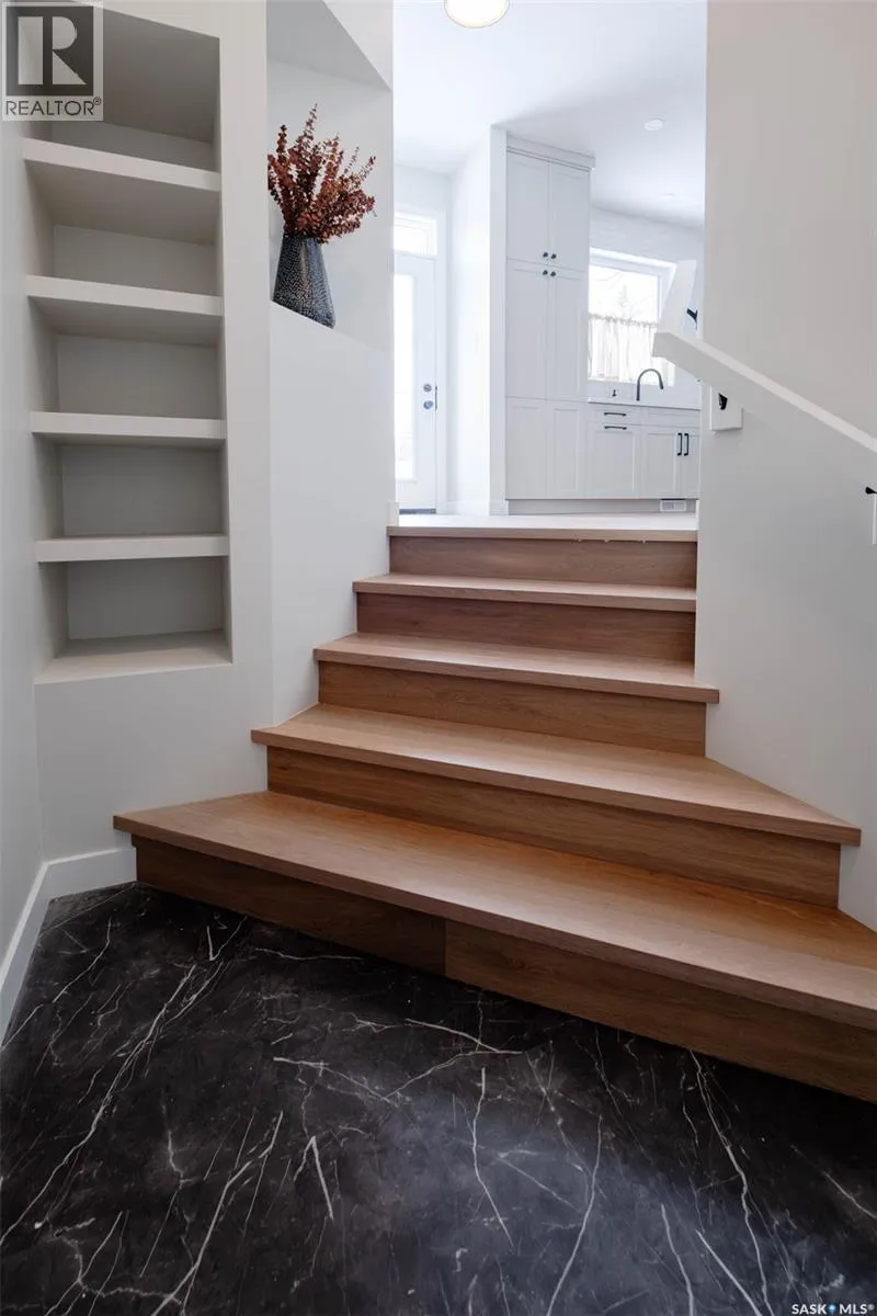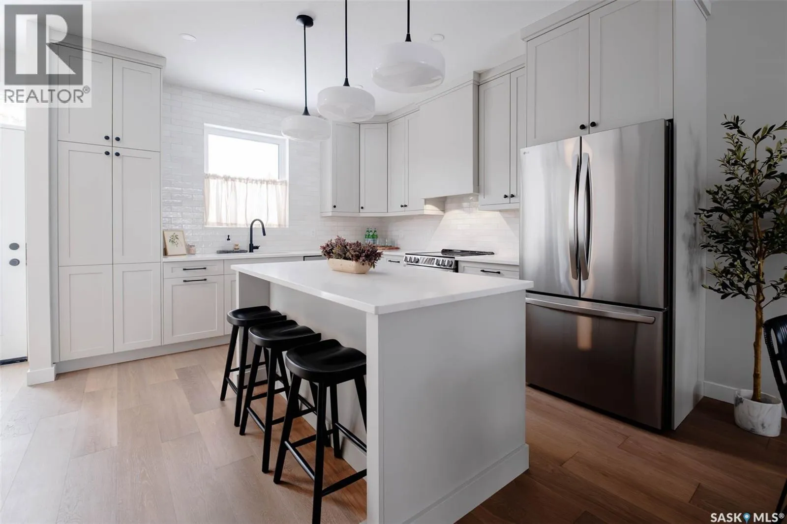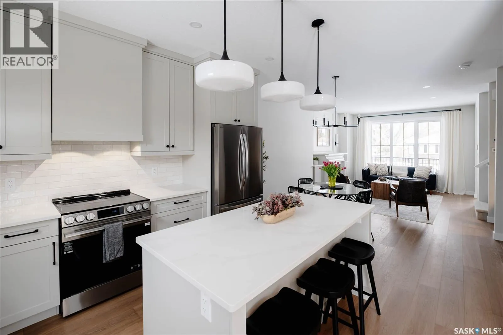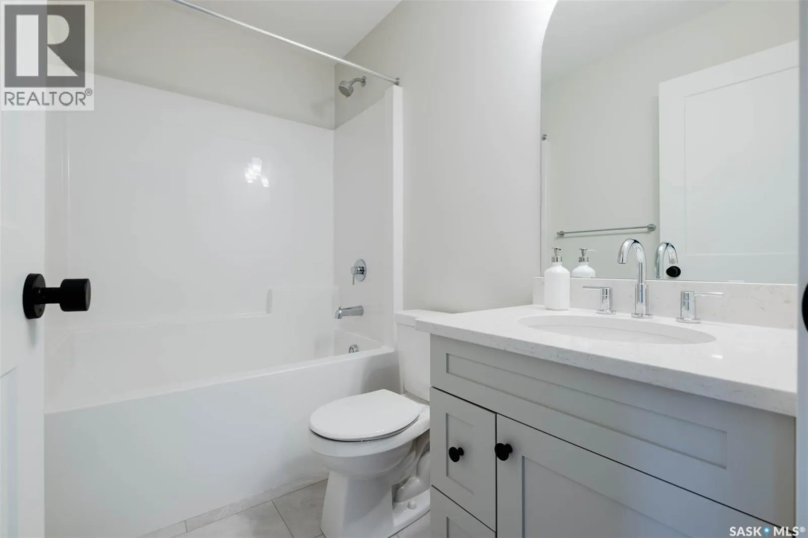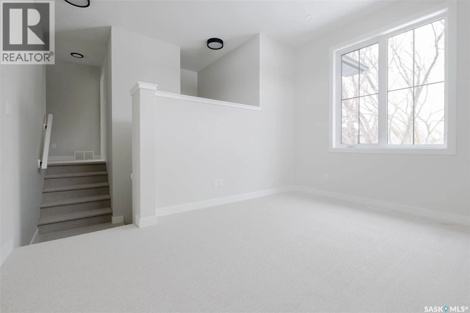 Welcome to 2808 Fleury Street in the heart of Arnheim Place. This brand new Trademark build is a 1,723 square foot two storey, ideally located just steps from Candy Cane Park and minutes from downtown Regina. The main floor features a bright open layout with a stylish kitchen, spacious dining area, and a east facing living room anchored by a gas fireplace, perfect for both everyday living and entertaining. A convenient half bath completes the main level. Upstairs you will find three bedrooms, a full bathroom, second floor laundry, and a bonus room that works beautifully as a family room, office, or play space. The primary bedroom includes a walk in closet and a private ensuite with a custom tile shower. The basement is undeveloped and ready for your future plans. The 11x25 single attached garage is fully insulated with a gas line run for a future furnace, offering added comfort and flexibility. This is a great opportunity to own a thoughtfully designed new construction home in one of Reginaâs most loved neighbourhoods. Reach out to book your private showing. (id:27476)