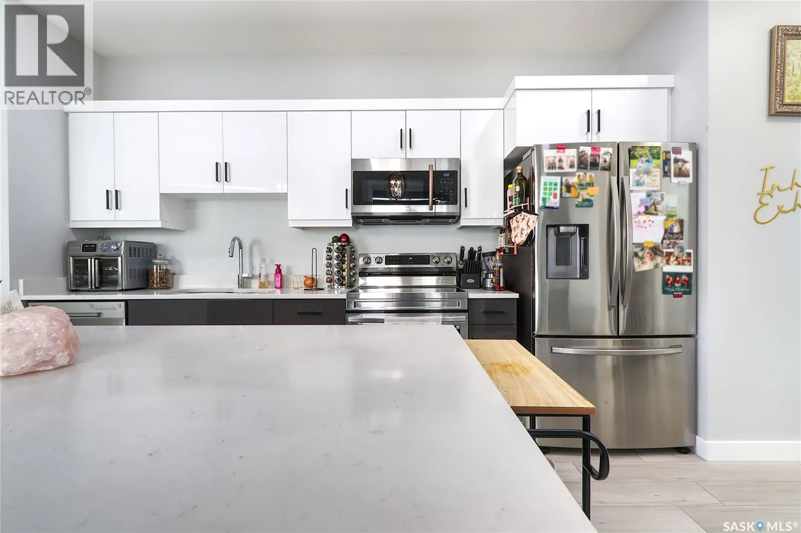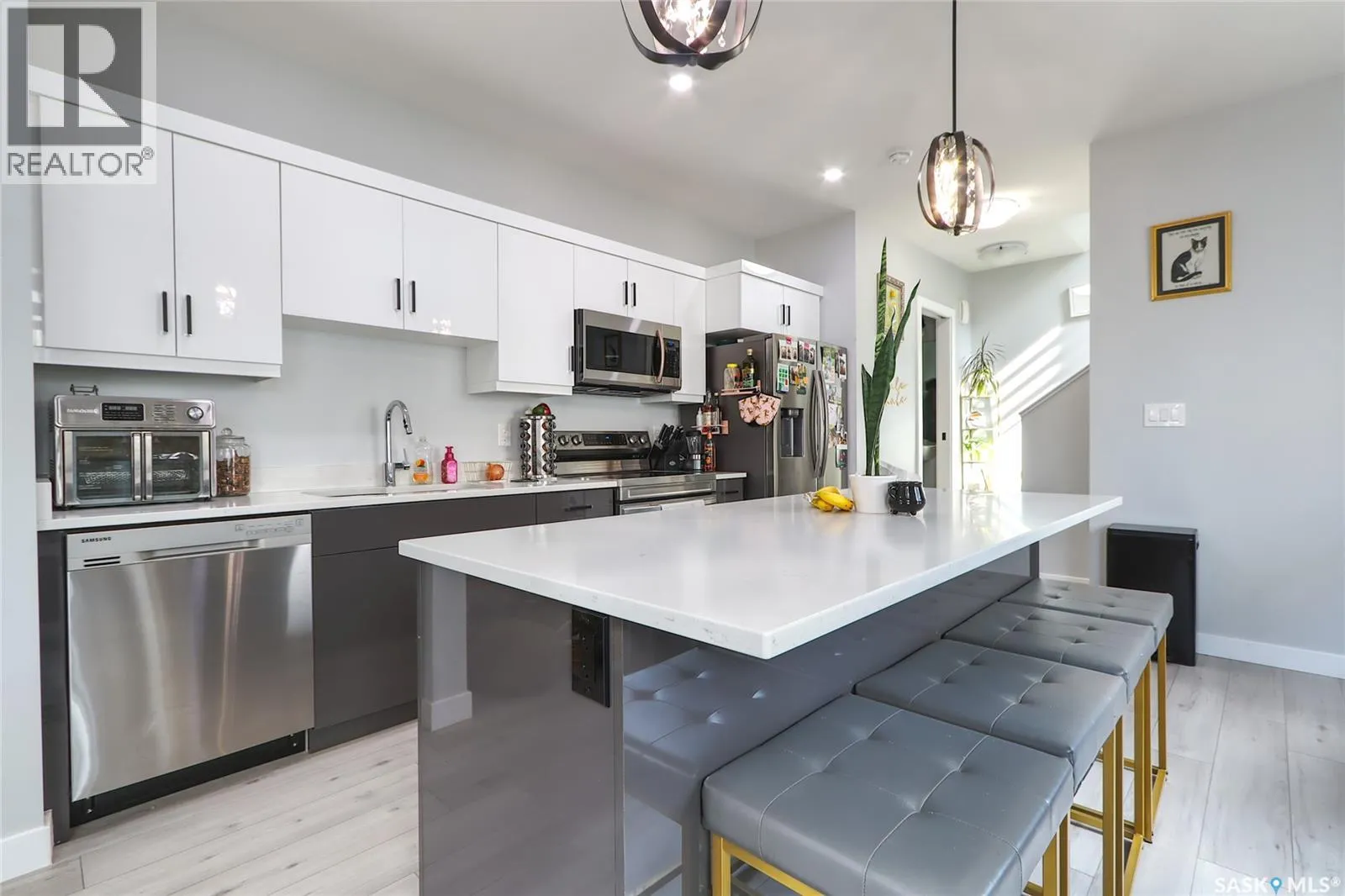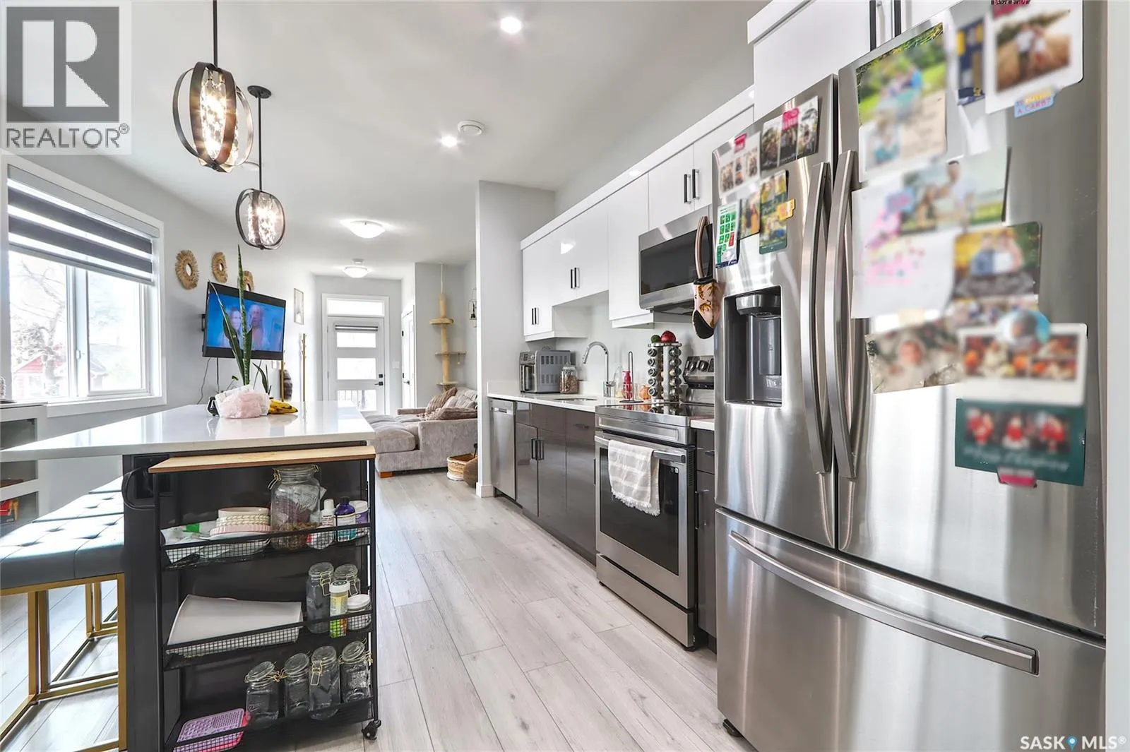 Welcome to this highly customized 2-storey home offering 1,293 sq ft of stylish and functional living space. Thoughtfully designed with modern finishes throughout, this home is perfect for homeowners and investors alike. The main floor features a bright open-concept layout seamlessly connecting the living room, dining area, and kitchenâideal for both everyday living and entertaining. The kitchen is beautifully finished with two-tone white and brown cabinetry, stainless steel appliances, and ample storage space. A convenient 2-piece bathroom completes the main level. Upstairs, youâre greeted by a unique balcony space that adds character and charm. The second floor offers two spacious bedrooms and two full bathrooms. The primary bedroom includes double closets and a private 3-piece ensuite, creating a comfortable retreat. The basement is fully developed with a regulated studio suite, complete with its own separate entrance. It features a modern two-tone white and brown kitchen, a 3-piece bathroom, and an efficient layoutâmaking it an excellent mortgage helper or investment opportunity. At the rear of the home, youâll find a detached two-car garage, providing secure parking and additional storage. Located in cathedral neighbourhood of Regina, this property offers quick access to downtown, schools, parks, and public transit. Its proximity to amenities and key institutions like the University of Regina and Saskatchewan Polytechnic makes it especially attractive for students, professionals, and investors. A fantastic opportunity to own a modern, income-generating home in a convenient and established location. (id:27476)