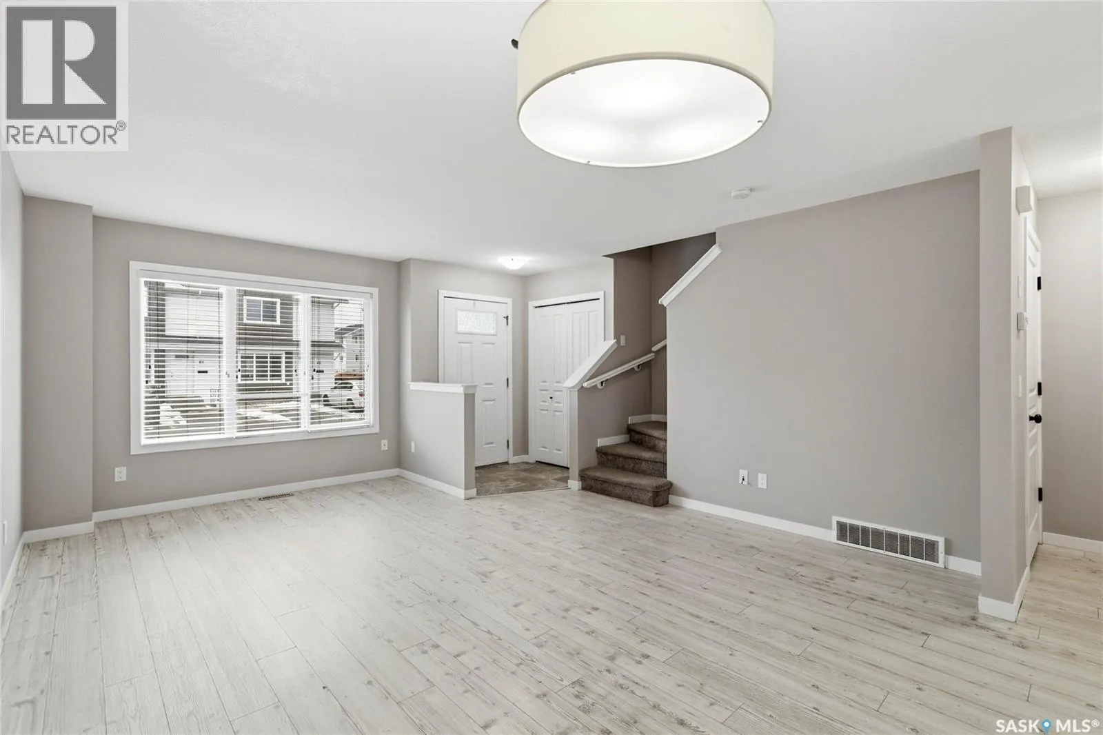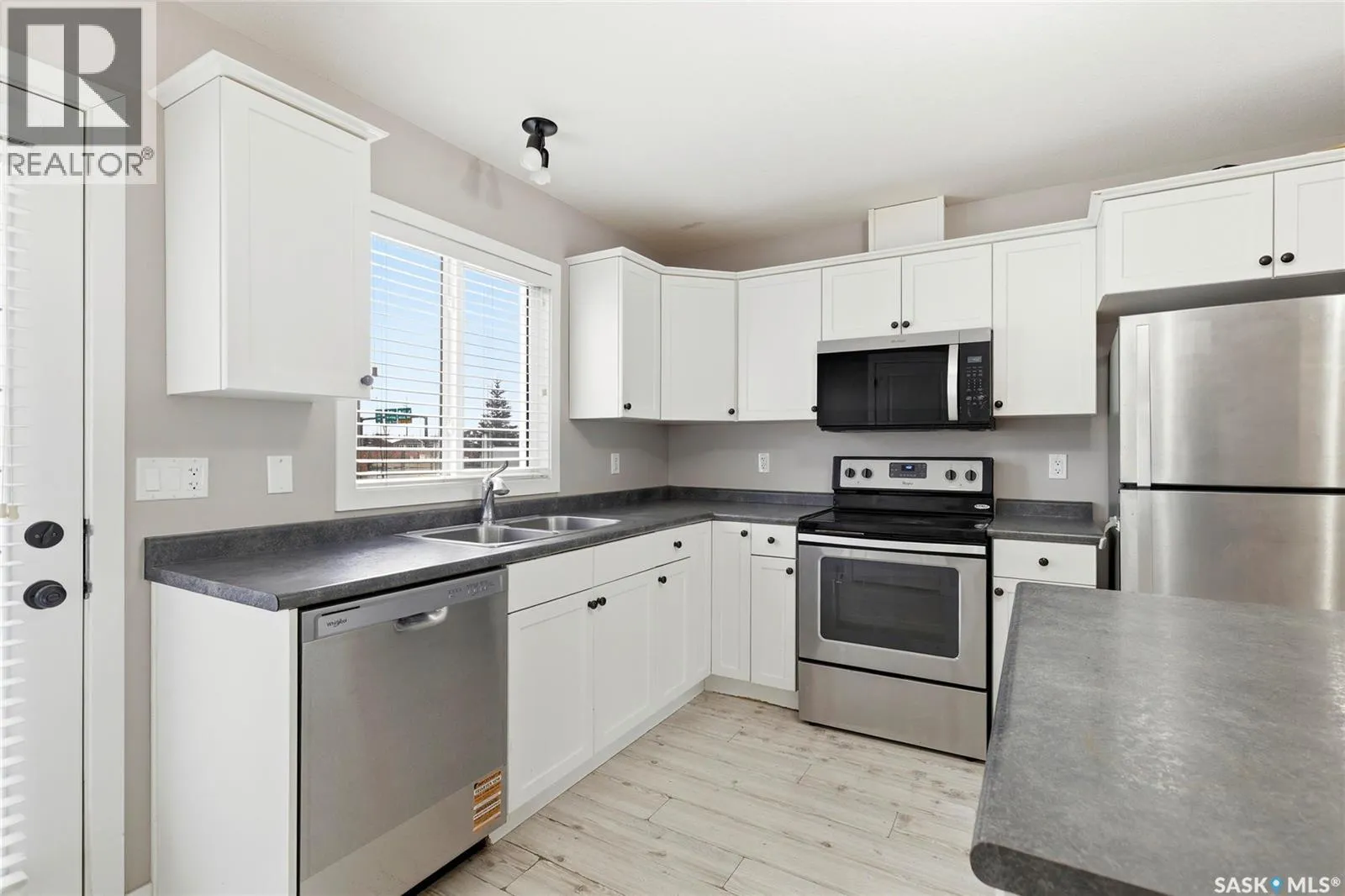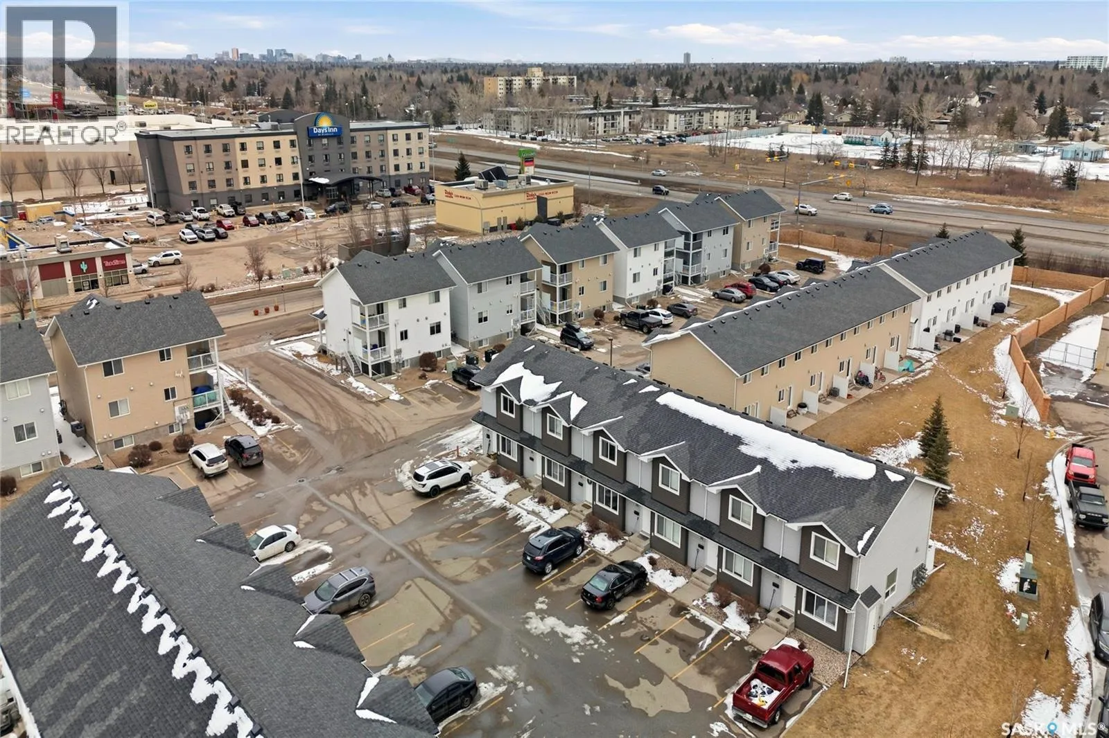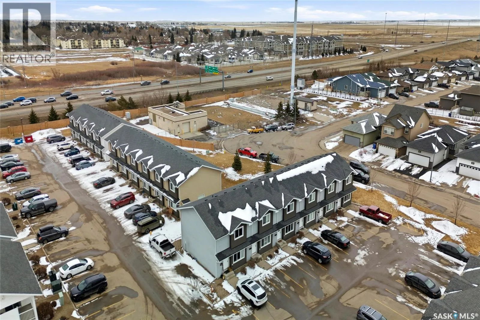 Plan: 102163698 Unit: 36 Ex 0 This beautifully and tremendously townhouse condo in amazing Harbour Landing neighbourhood community is less than 9 minutes drive to Regina International Airport, quick access to Ring Road, short walking distance to green space, shopping centres, restaurants, coffee shops, clinics, and other amenities. The main level has an open flow with L-shaped kitchen fitted with stainless steel appliances, closet system pantry, plenty of cabinets, counter space with an eat-up island open to dining and a living room area with large window that illuminate natural lights. 2nd level features sizable primary bedroom with walk-in closet, two decent size bedrooms, and 4pcs bathroom complements this level. Basement level is large, spacious for storage and ready for development. Newly painted and built-in dishwasher replaced April 2026. Condo fee is $256 and include: Common Area Maintenance, External Building Maintenance, Lawncare, Snow Removal, Insurance (Common). Schedule your showings. (id:27476)