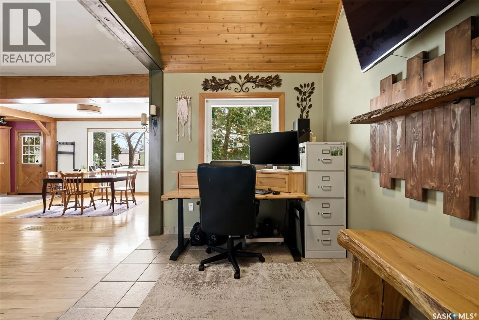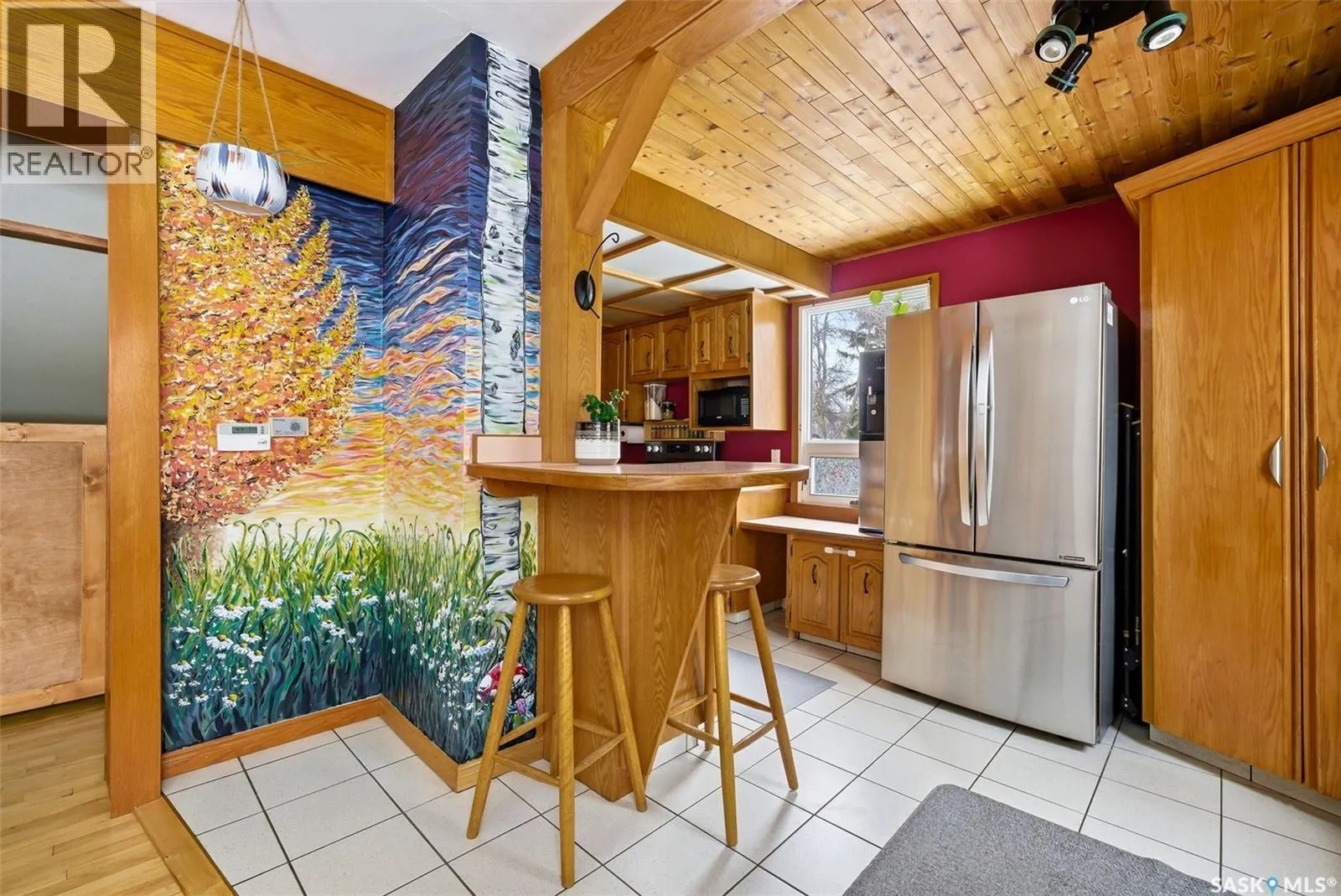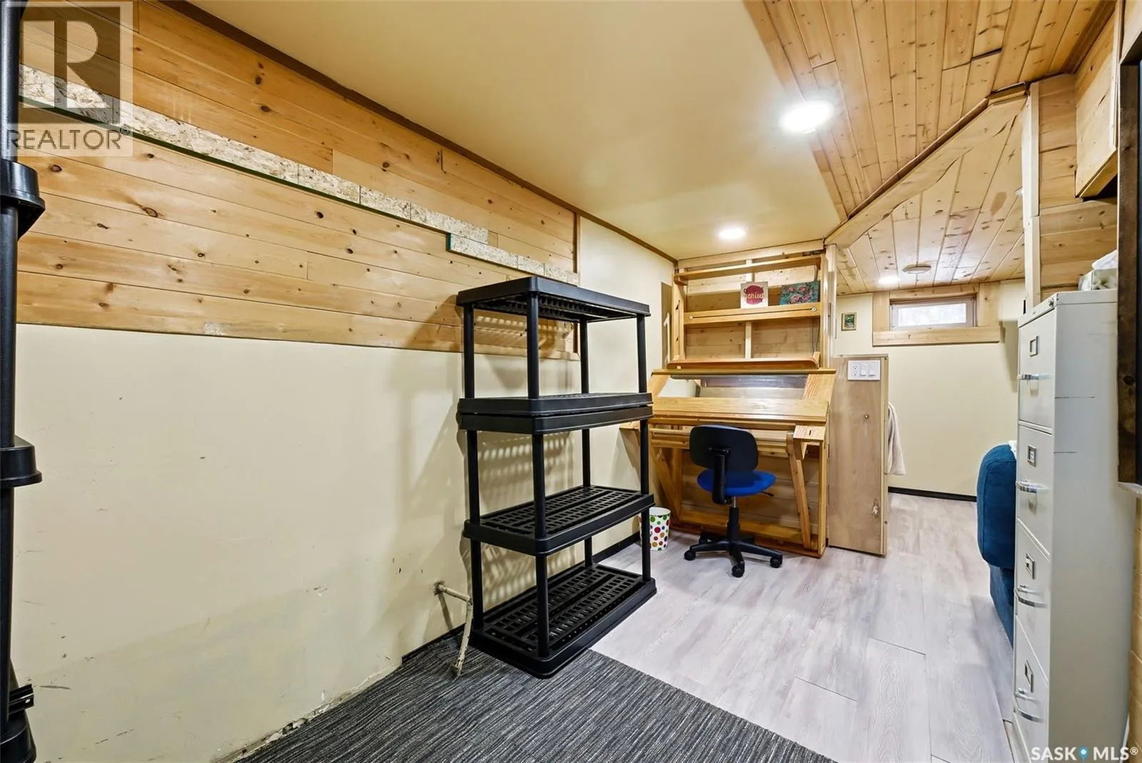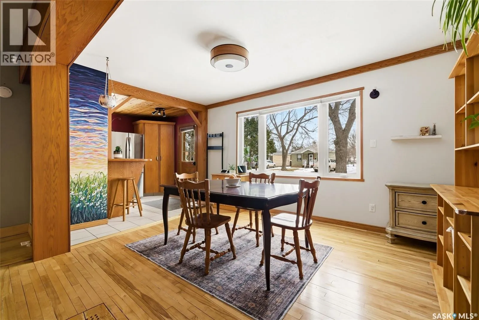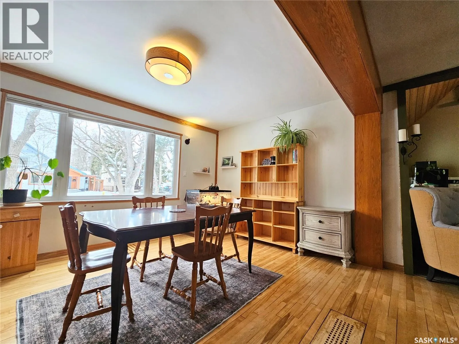 Welcome to 2612 Lindsay Street! This one-of-a-kind home blends character, craftsmanship, and an unbeatable location. Featuring a custom cedar exterior, vaulted wood ceilings, exposed beams, and beautiful hardwood floors, the main floor offers bright, open living and dining spaces. An amazing home for those looking for something unique with an artist's touch. The kitchen includes updated appliances and functional layout, while two bedrooms feature recent updates and smart storage solutions. The finished basement adds additional living space with new pot lights, updated mechanical systems, a renovated bathroom with custom shower, and upgraded plumbing. Major improvements include some newer windows, central A/C, radon mitigation system, and added insulation for efficiency and comfort. Outside, enjoy a fully fenced yard with multiple gates, garden space, and alley access. The standout 18â x 40â heated and insulated garage is perfect for a workshop or additional storage. Plenty of parking with the extended drive, garage spaces and an additional parking spot off the back alley. Located on a quiet, well-treed street just steps from parks, schools, Wascana Lake, the Science Centre, and more, with quick access to Ring Road. Take a few steps down the alley to find the quiet and secluded Holland Park. NOTE: The owners are also selling a vacant lot at 2610 Lindsay Street. Properties can be purchased together or separately. (id:27476)