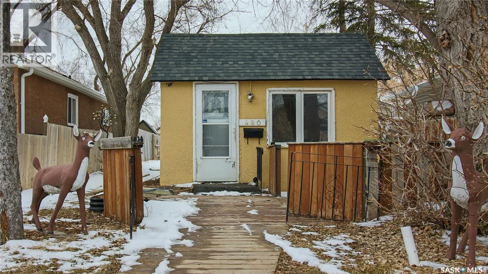 This home has a handy location within walking distance of the Regent Park Shopping Centre, the Regent Pool Park, The Regent Park Disc Golf and an off-leash dog park. This 1967 built, 475 square foot, 1 bedroom 1 bathroom, bungalow sits on a 3124 square foot, rectangular lot. The front yard has a lawn with trees and shrubs while the partially fenced backyard provides parking space and has two included sheds! This home is a great option for investors and an exceptional opportunity for first-time buyers who could own at a fraction of the price of renting. The layout of the home consists of a fairly bright living room with multiple windows. Next is the kitchen with the included fridge and stove. Adjacent to this is the sole bedroom with itâs own closet. Finishing off the home is the back porch/utility area which leads to the bathroom. (id:27476)