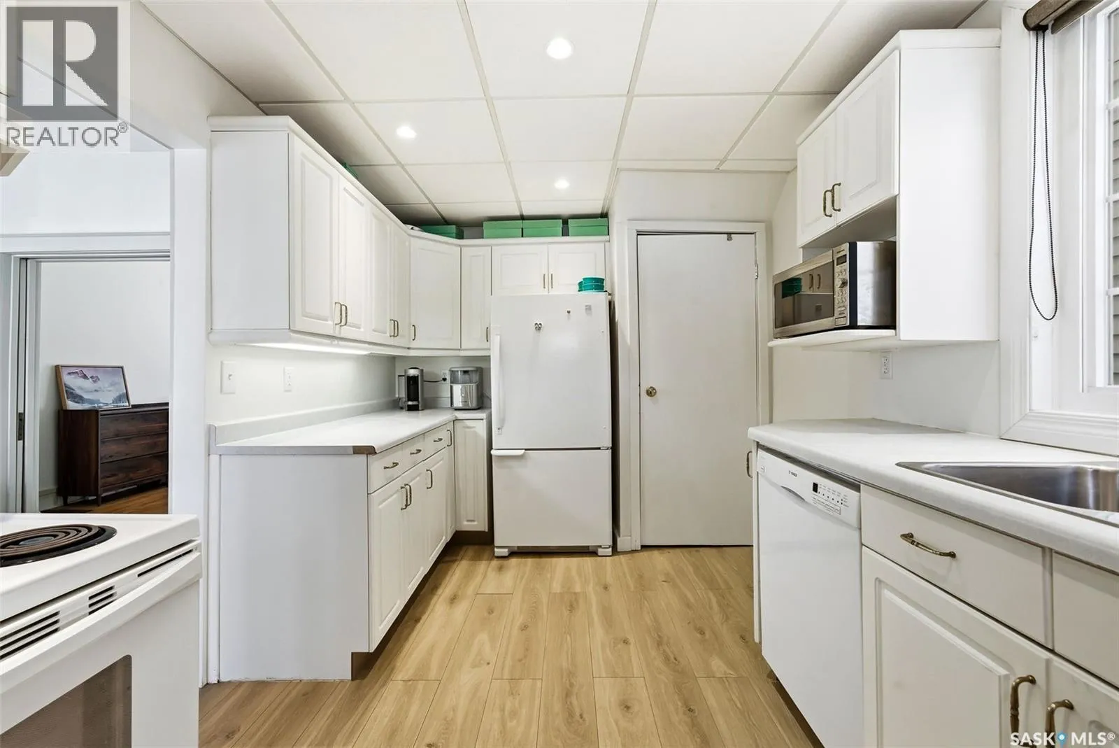 Welcome to 2231 Cameron Street, a well-maintained two-storey home in the heart of Cathedral Village. This 1,499 sq ft property offers three bedrooms, one bathroom, a formal dining area, and a bright living room with large windows that provide plenty of natural light. The functional kitchen offers plenty of cabinet & counter space and direct access to the backyard. Laundry is conveniently located off the primary bedroom, with two additional spacious bedrooms and a 4-piece bathroom completing the second floor. Patio doors lead to a PVC deck and a private, fully fenced backyard with an oversized single garage (18x21) built in 2006. Updates include shingles, PVC windows, flooring, and paint, while maintaining the homeâs original character. The home features a solid concrete foundation, is move-in ready, and offers quick possession. Contact your real estate professional for more information. (id:27476)