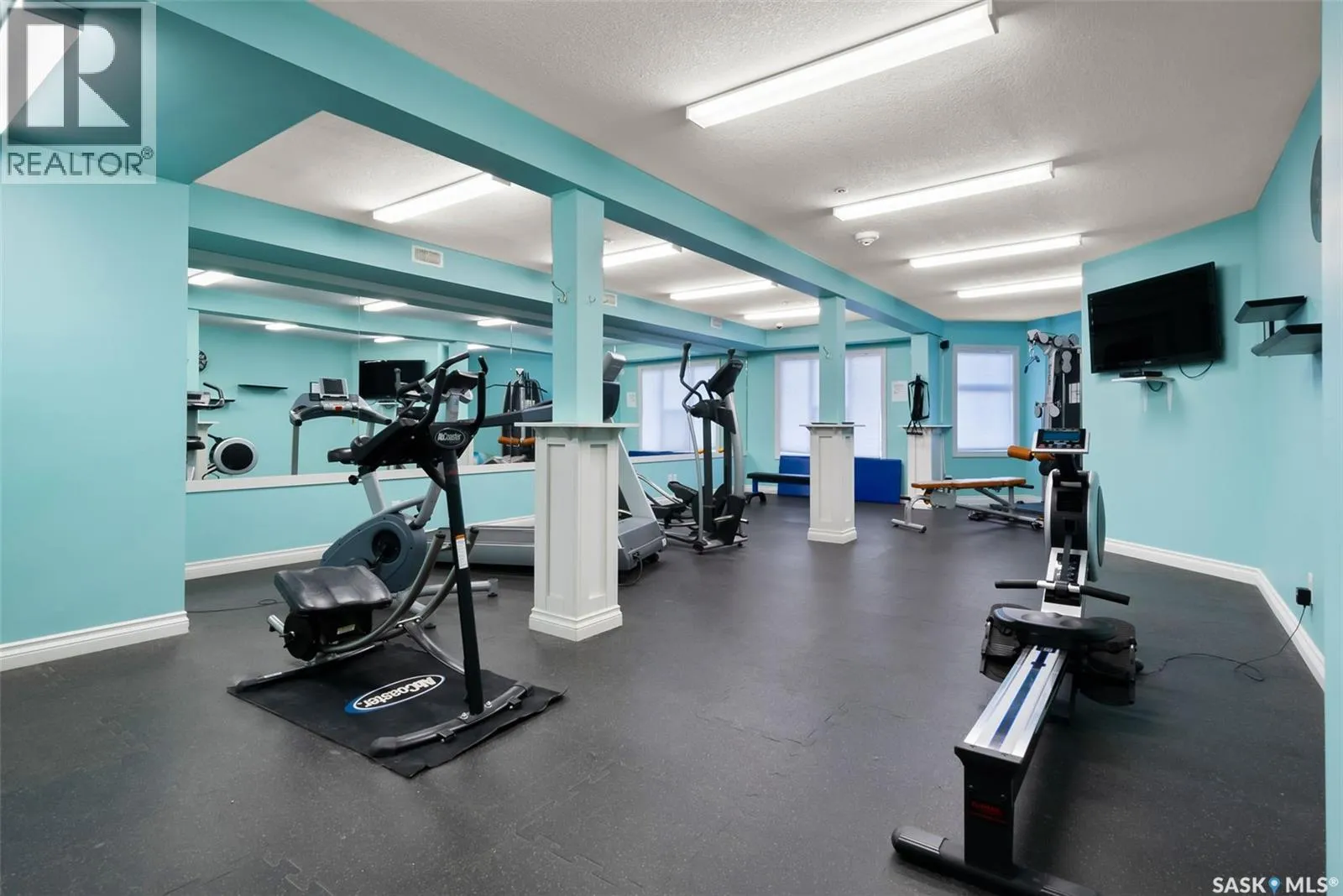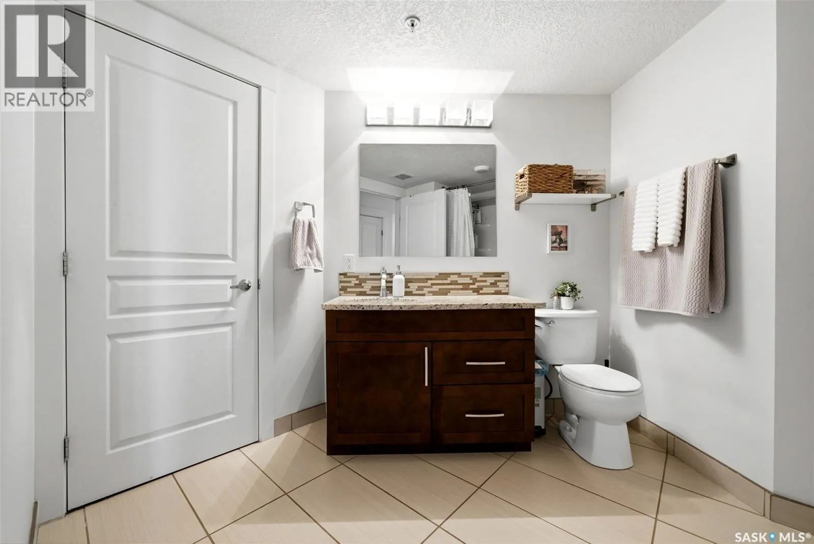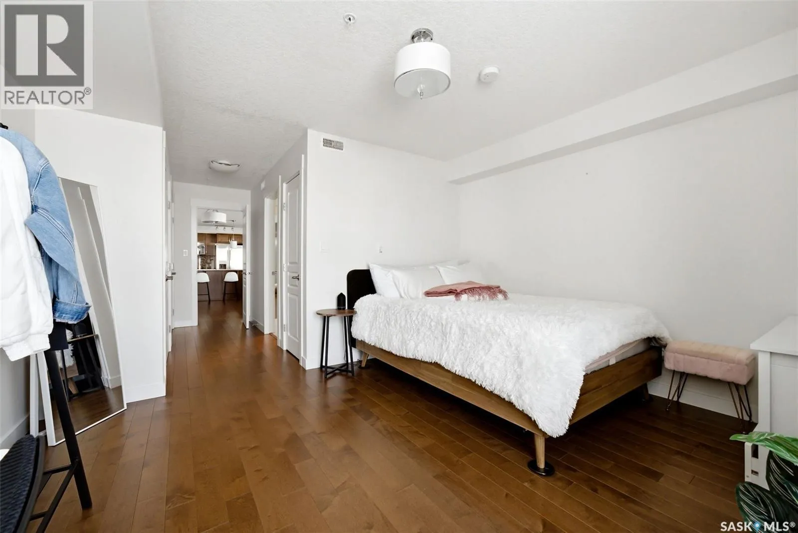 Meticulously maintained and move-in ready, this is one of the more spacious one-bedroom suites Fontaine Bleu has to offer. The open-concept layout flows seamlessly from the kitchen through the dining and living areas, all finished with beautiful hardwood flooring. Complete with high-end finishes the kitchen features maple cabinetry, stone countertops, tile backsplash, matching appliances, and a large island. The bright living room opens onto a generous west-facing balcony with a natural gas BBQ hookup, ideal for enjoying Saskatchewan summers. Down the hall, the comfortable primary bedroom offers ample closet space, complemented by an adjoining four-piece bathroom with tile floor. To top it all off, you'll enjoy the peace of mind of a heated underground parking stall, a dedicated storage locker, and condo fees that cover both heat and water. The building itself offers a fantastic range of amenities including a theatre room, gym, carwash bay, bike storage, and even a dog washing room, everything you need right at home. The perfect option for anyone seeking low-maintenance living in South Regina. (id:27476)