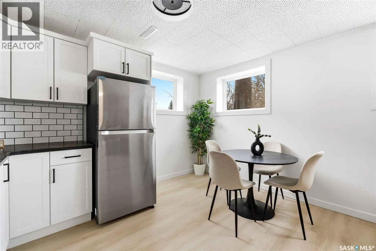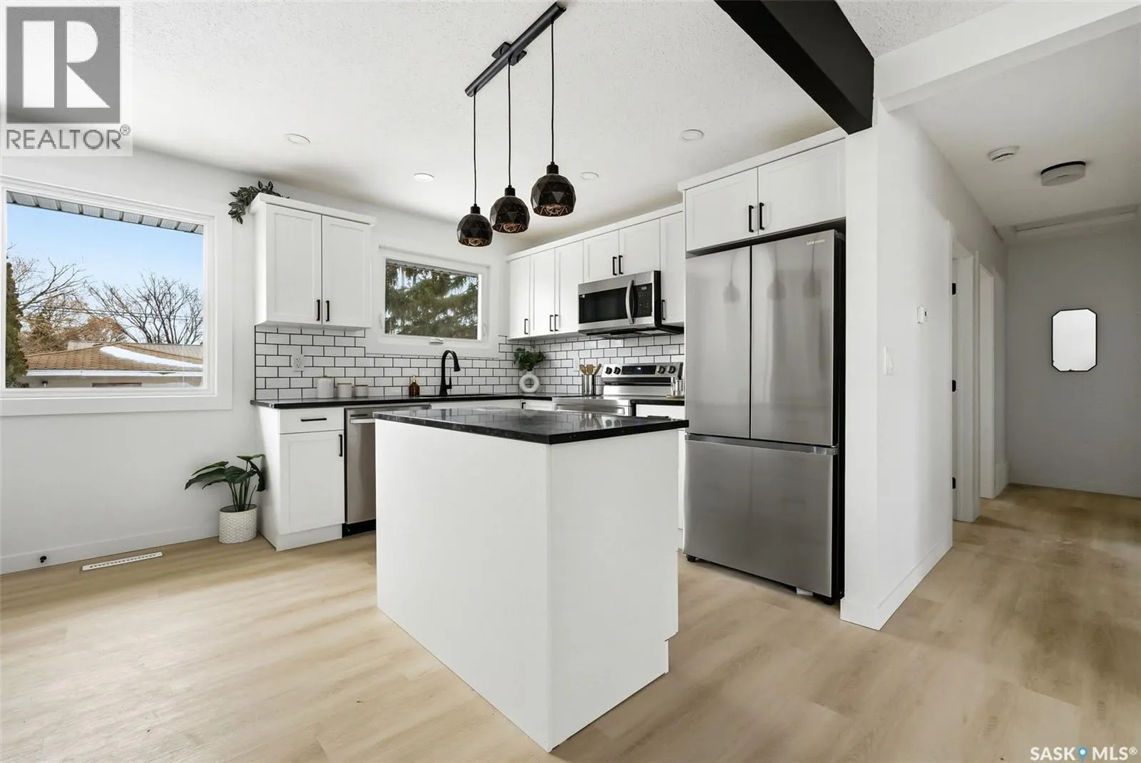 Welcome to 809 Horace Street in Reginaâs Rosemont neighborhood! This updated bungalow offers 974 sq ft on the main floor with a fully developed basement, providing excellent value for homeowners or investors alike. The main level features a bright and modern interior with luxury vinyl plank flooring throughout, a spacious living room with large front windows, and an updated kitchen complete with white cabinetry, subway tile backsplash, black countertops, and stainless steel appliances. Three comfortable bedrooms and a 4-piece bathroom complete the main floor. The basement is fully developed with additional living space, including a second kitchen, living/recreation area, bedroom, and a 4-piece bathroomâoffering great potential for extended family or revenue opportunities. Situated on a 5,611 sq ft lot, the property features a large backyard with mature trees, a double detached garage, and plenty of space to enjoy the outdoors. Located close to schools, parks, and amenities, this home is a great opportunity in an established neighborhood. RECENT UPDATES INCLUDE A NEW FURNACE AND NEW WINDOWS. Donât miss your chance to own a move-in ready home with income potential! (id:27476)