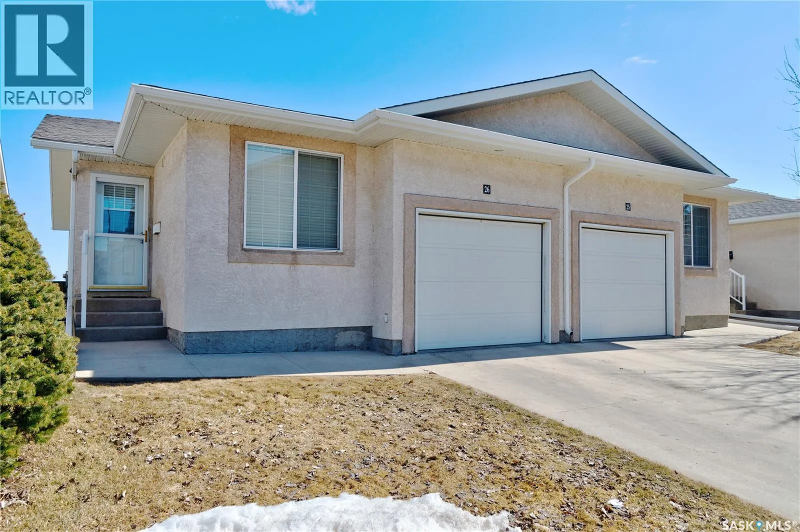 Plan: 101876520 Unit: 26 Excellent 2 bedroom, 2 bathroom bungalow style condo located in Regina's Windsor park area. This condos has been meticulously maintained and loved by its owner. The open concept kitchen, living/dining areas are perfect for entertaining and hosting family. The kitchen features plenty of counter and cupboard space and has an island for extra work space. Both bedrooms are a good sized and the primary bedroom has a w/i closet and its own ensuite bathroom. The laundry and main floor bathroom complete this level of the condo.. The basement is huge and is open for development. There is roughed in plumbing for a future bathroom i one wants. The garden door from the living room area leads you to a nice sized deck that is maintenance free. You get a beautiful mount of morning sun and get to enjoy your morning coffee on the deck. There is a single attached garage with direct entry to the condo. This is such a great location and a terrific opportunity to be close to all East end amenities . (id:27476)