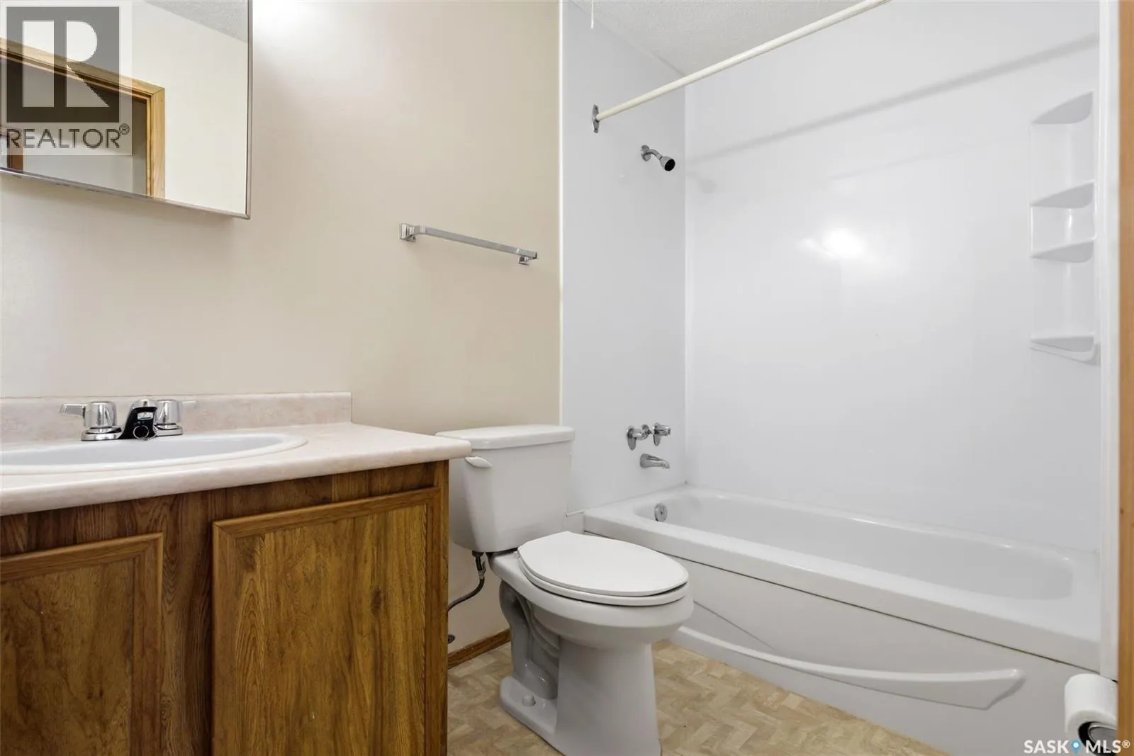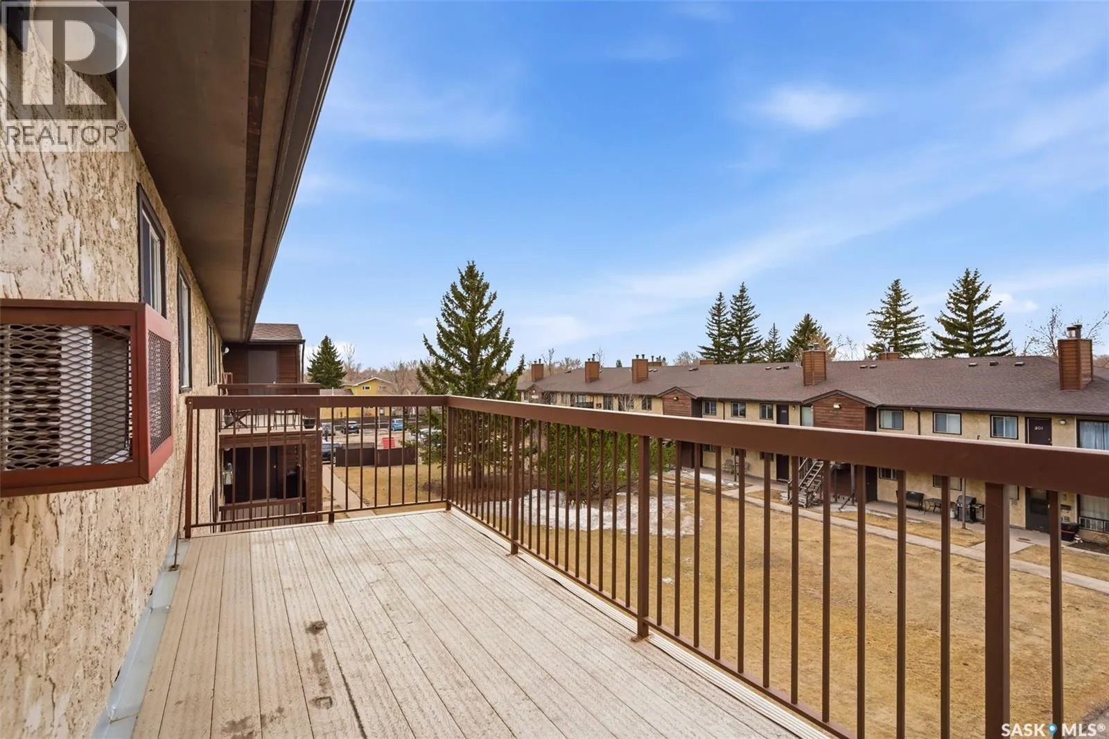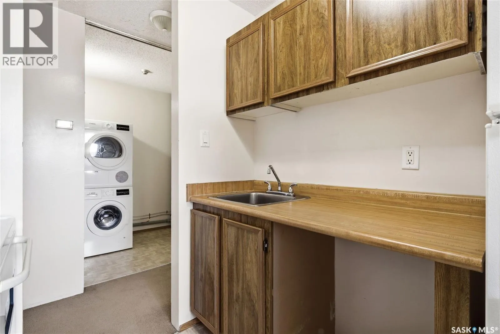 Top-floor 1-bedroom condo in Sunrise Gardens offering excellent potential for first-time buyers or investors alike. Enjoy the comfort and security of apartment-style living paired with the convenience of in-suite laundry. The welcoming entryway features a dedicated coat closet and opens into a semi open-concept living space, highlighted by an ornamental fireplace and large patio doors that lead out to a spacious private deckâperfect for relaxing or entertaining. The functional galley-style kitchen provides ample cabinet space and flows seamlessly into the dining area, which overlooks the beautifully maintained courtyard. The bedroom is generously sized and includes a walk-in closet, while a full 4-piece bathroom is conveniently located just across the hall. A stackable washer and dryer are neatly tucked into the in-suite storage room, with an additional shared laundry facility just steps away for larger items. This unit also includes one electrified parking stall (#304). Residents of Sunrise Gardens enjoy well-kept grounds, an outdoor pool, on-site maintenance staff, and the added value of heat and water included in the condo fees. A great opportunity to get into the market or expand your investment portfolioâcall today to make it your own! (id:27476)