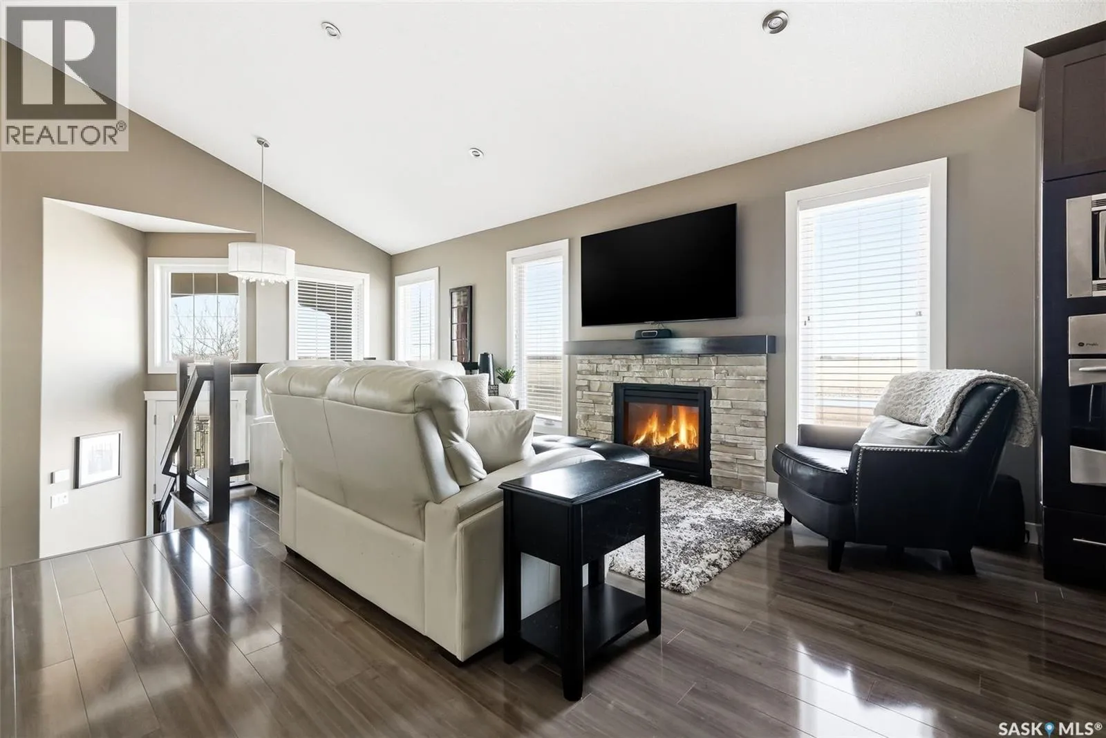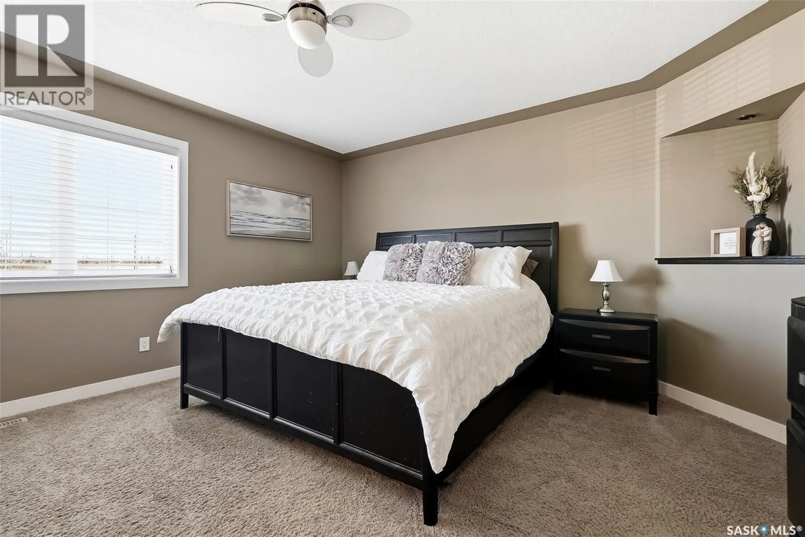 Welcome to 4127 Cumberland Road in desirable Windsor Park â a quality-built 2009 Gilroy modified bi-level offering thoughtful design, impressive upgrades, and excellent living space throughout. With one bedroom on each level, vaulted ceilings on the main floor, and an open, inviting layout, this home combines comfort and function beautifully. The kitchen is well appointed with stainless steel appliances, granite countertops, soft-close cabinetry, built-in oven, ceramic cooktop with hood fan, and garburator. The dining area features a built-in hutch, while the main floor living room is anchored by a gas fireplace. The main floor bedroom is next to a bathroom with heated tile floors. Privately located above the garage, the spacious primary suite offers a large walk-in closet and a 5-piece ensuite with heated tile flooring, dual vanities, separate glass and tile shower, and bathtub. The bi-level design allows for large basement windows that bring in an abundance of natural light, making the lower level feel bright, welcoming and is ideal for relaxing or entertaining with a wet bar, electric fireplace in the rec room, and a bedroom with a large window. There is also excellent storage space under the foyer, mudroom, and laundry area. Step outside to enjoy the 9.8' x 14.7' screened and covered deck, as well as composite deck upgrade completed in 2020 with gas BBQ hookup. The low-maintenance yard features artificial turf installed in 2024, while shingles were also replaced in 2024. Underground sprinklers service the front and side yard. The electric-heated 26' x 26'/22' attached garage adds even more everyday convenience. Water heater, softener, furnace, and air conditioning are all owned and included, and the home is also equipped with central vacuum with a kick sweep in the kitchen. Built with open web floor joists, a steel beam, and piles under the garage grade beam and front step, this is a standout home in a sought-after neighbourhood. (id:27476)