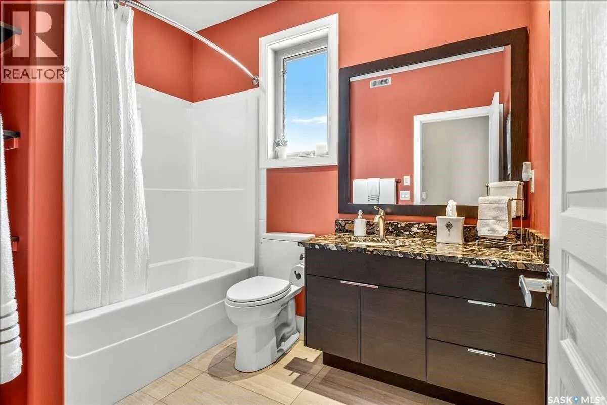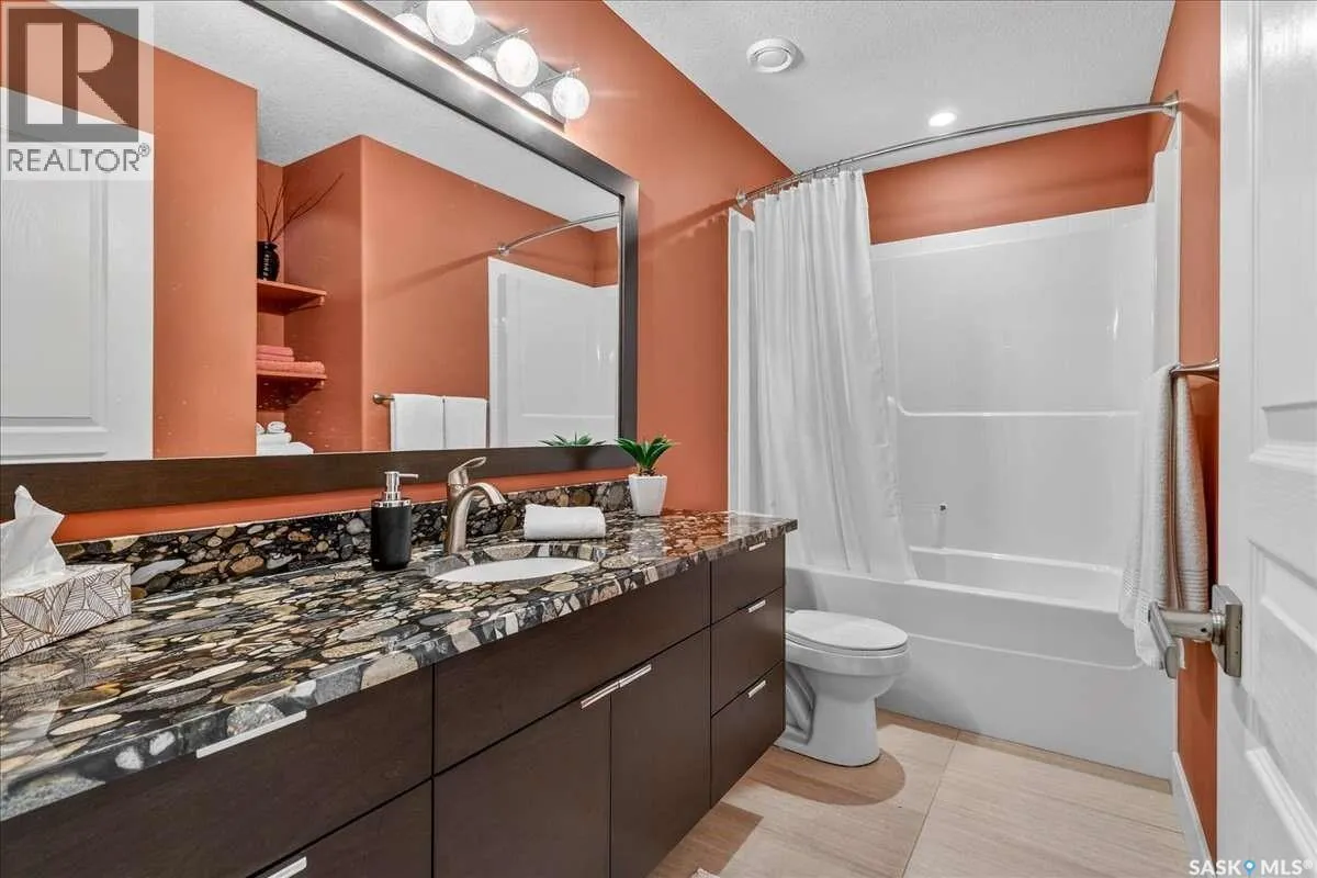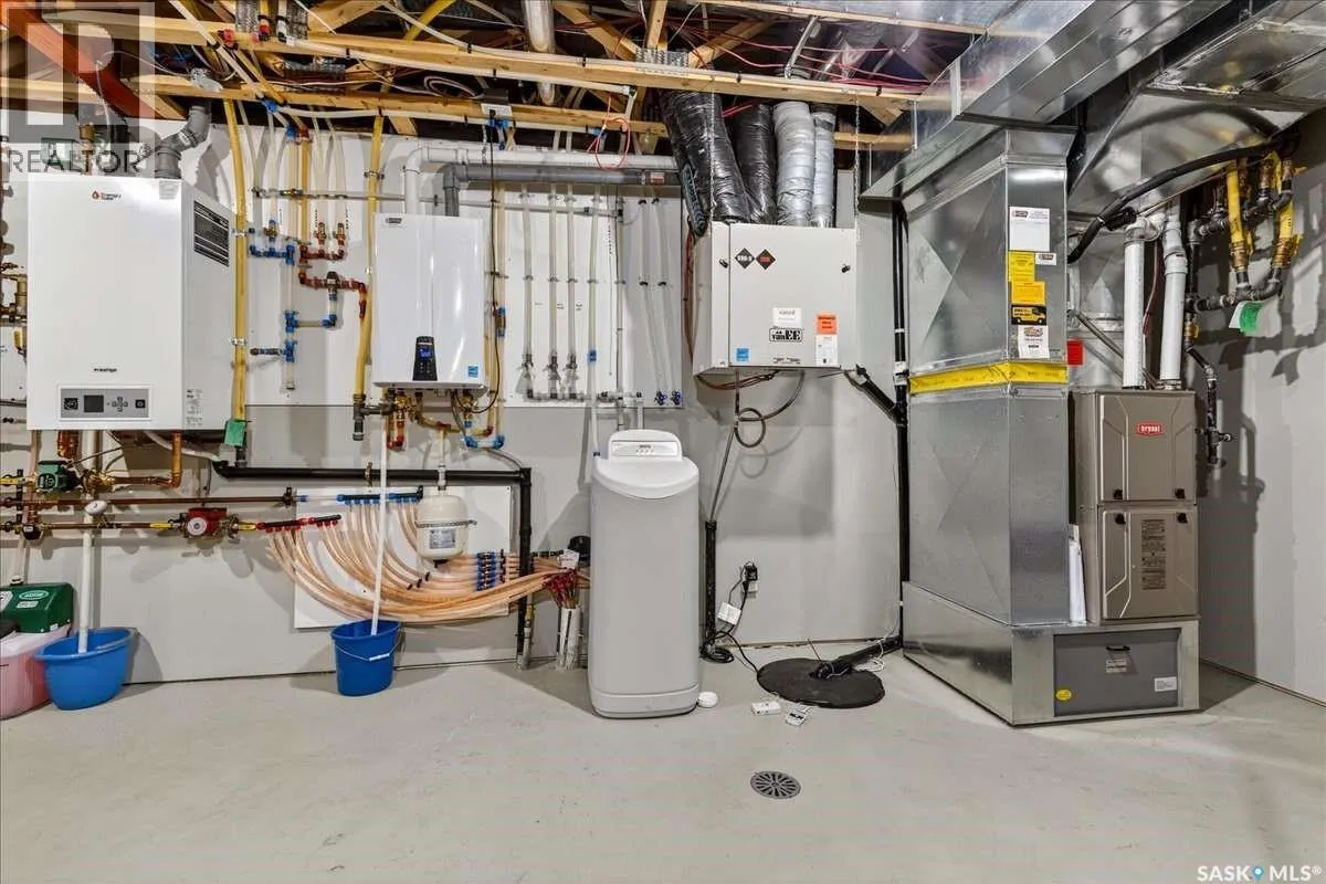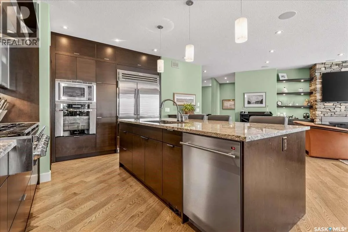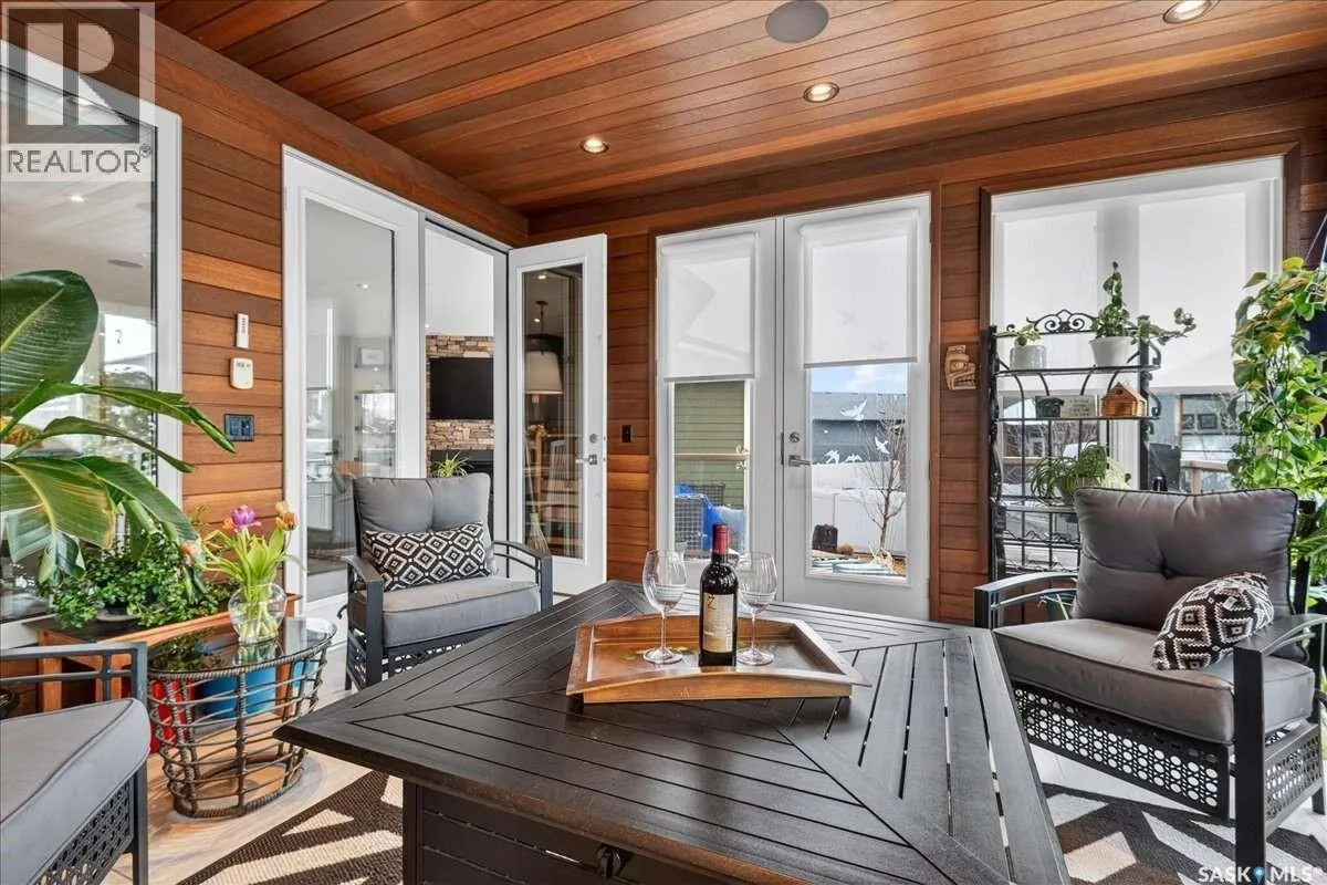 For more information, please click the "More Information" button. 4134 Timber Creek Place, Regina, Saskatchewan S4V 3G7 is a beautifully crafted custom Munro home offering 2,273 sq ft on the main floor, designed with high-end finishes throughout. The home welcomes you with 9-foot ceilings, hardwood flooring, and large windows with electric light-filtering blinds that bring in abundant natural light. The open-concept layout features a spacious living room with a stunning stone gas fireplace, built-in shelving, and cabinetry. The kitchen centers around a large island with granite countertops and includes premium appliances such as a Decro 6-burner gas stove, wall oven, microwave, Sub-Zero fridge/freezer, and a walk-in pantry. The dining area includes matching cabinetry and opens to a four-season sunroom with radiant in-floor heating, along with an adjacent screened and covered space featuring a Hot Springs hot tub. The primary bedroom is generously sized with a large closet and a luxurious ensuite featuring a soaker tub, custom tiled shower, and dual sinks. The main floor also includes an additional bedroom, bathroom, den, and a laundry room with custom cabinetry. The finished basement offers two more bedrooms, a 4-piece bathroom, and a large recreation room with a granite bar and appliances, ideal for entertaining. The mechanical room includes a Control-4 system managing heating, cooling, sound, and TV, plus a Sub-Zero freezer. The garage, basement, and sunroom all feature in-floor heating supported by a Triangle Tube boiler, Navien system, and Bryant furnace. The triple garage includes 15-foot ceilings, epoxy heated floors, and a vehicle lift. Outside features include a patio, planters, mature trees, a Generac generator, gemstone lighting, and a security system, with snow and lawn care handled by the bare-land strata. (id:27476)