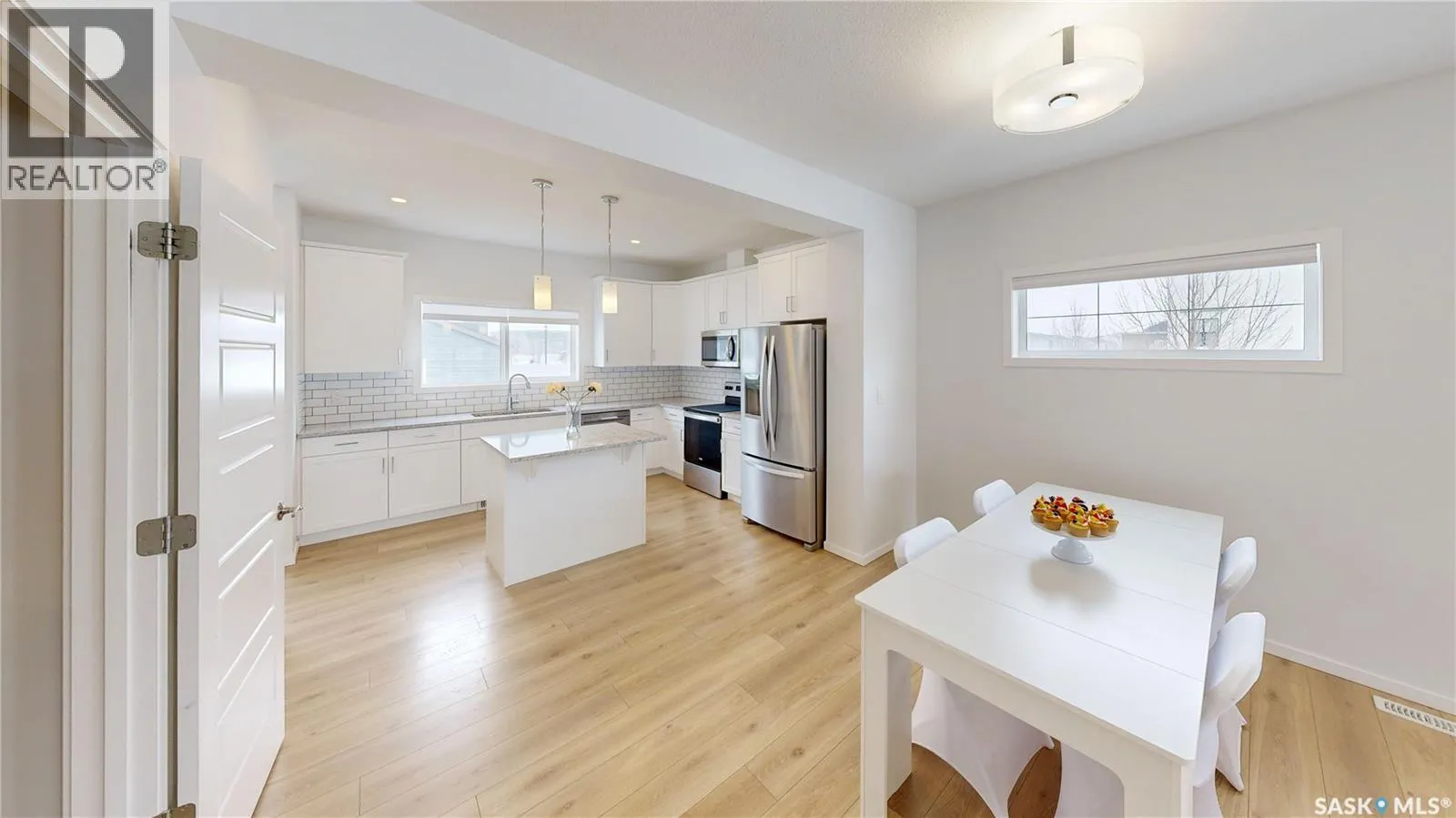 Welcome to 3100 Crosbie Crescent in the sought-after Eastbrook neighbourhood, ideally located near Pirate Park, Crosbie Park, St. Elizabeth School, Wascana Plains School, and a variety of shops, services, and restaurants. This 1,472 sq ft two-storey, built in 2022, offers 4 bedrooms and 4 bathrooms on a generous 5,045 sq ft corner lot. The front yard features great curb appeal with a lush lawn, maturing tree, and a covered front deckâperfect for morning coffee or relaxing with a book. The fully fenced backyard includes a deck, patio, lawn, landscaping, and laneway access to the 22 x 24 double detached garage. Inside, the foyer welcomes you with a coat closet. The bright living room offers multiple windows, laminate flooring, and LED pot lights for a warm, inviting feel. The open layout continues into the dining area with plenty of space for family gatherings. The kitchen is both stylish and functional, featuring quartz countertops, tile backsplash, stainless steel appliances, a large pantry with double doors, island, pendant lighting, and ample cabinetry. A convenient 2-piece bathroom and rear entry complete the main floor. Upstairs, a small nook and stacked laundry (included front-load washer and dryer) add practicality. The primary bedroom includes a walk-in closet and a 3-piece ensuite with glass shower. Two additional bedrooms and a 4-piece bathroom complete the level. The fully finished basement offers a cozy recreation room, an office nook under the stairs, a fourth bedroom, and a 3-piece bathroomâideal for guests or growing families. The utility room provides additional storage and houses the owned furnace, HRV, and gas water heater. (id:27476)