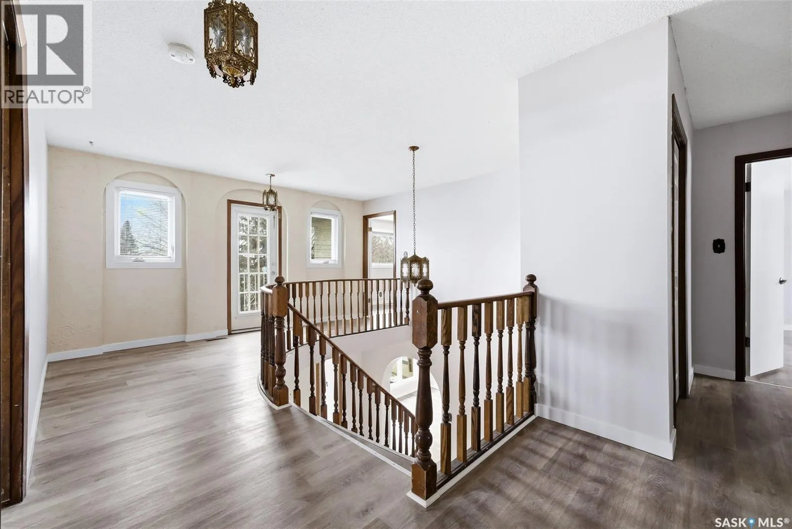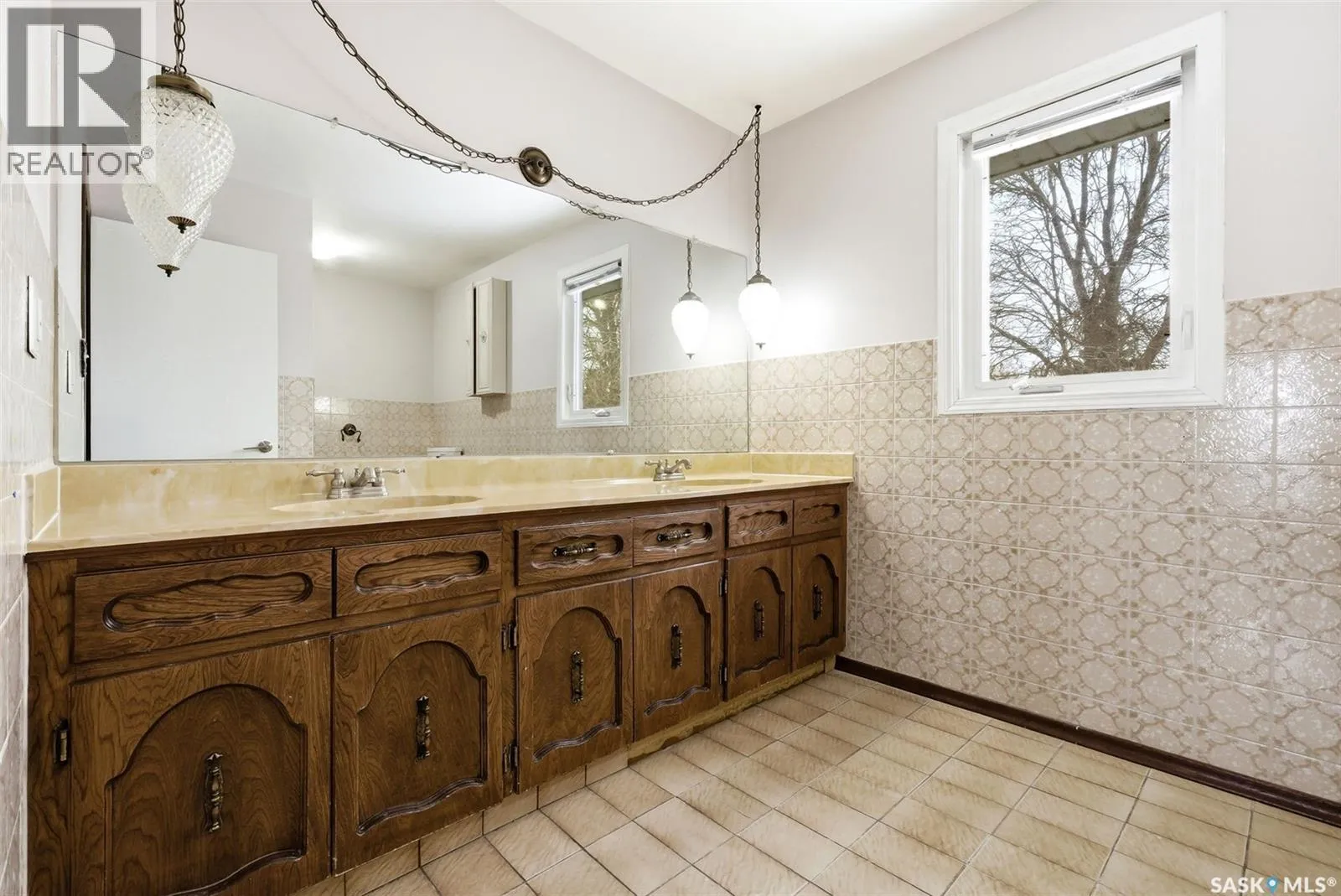 Welcome to 30 Dalhousie Way in Reginaâs desirable University Park neighborhood! This spacious two-storey home offers 2,468 sq ft of well-designed living space and is perfect for growing families. The main floor features a bright and inviting living room with large front-facing windows, a formal dining area, and a functional kitchen with plenty of cabinetry and workspace. A cozy family room provides additional living space and is ideal for relaxing or entertaining, along with a convenient 2-piece bathroom. Upstairs, youâll find multiple generously sized bedrooms including a large primary bedroom complete with a 3-piece ensuite. A full 5-piece bathroom and second-floor laundry add to the homeâs practicality and comfort. The fully developed basement offers even more space with a large recreation room, office, and an additional 2-piece bathroomâperfect for a home office, gym, or extra living area. Situated on a 6,714 sq ft lot, the property features a fenced yard with deck, mature trees, and great outdoor space to enjoy. The double attached garage and double concrete driveway provide ample parking. Built in 1977, this home offers solid construction, a functional layout, and excellent potential in a prime east Regina location. (id:27476)