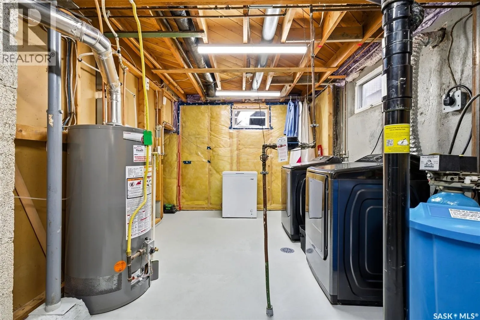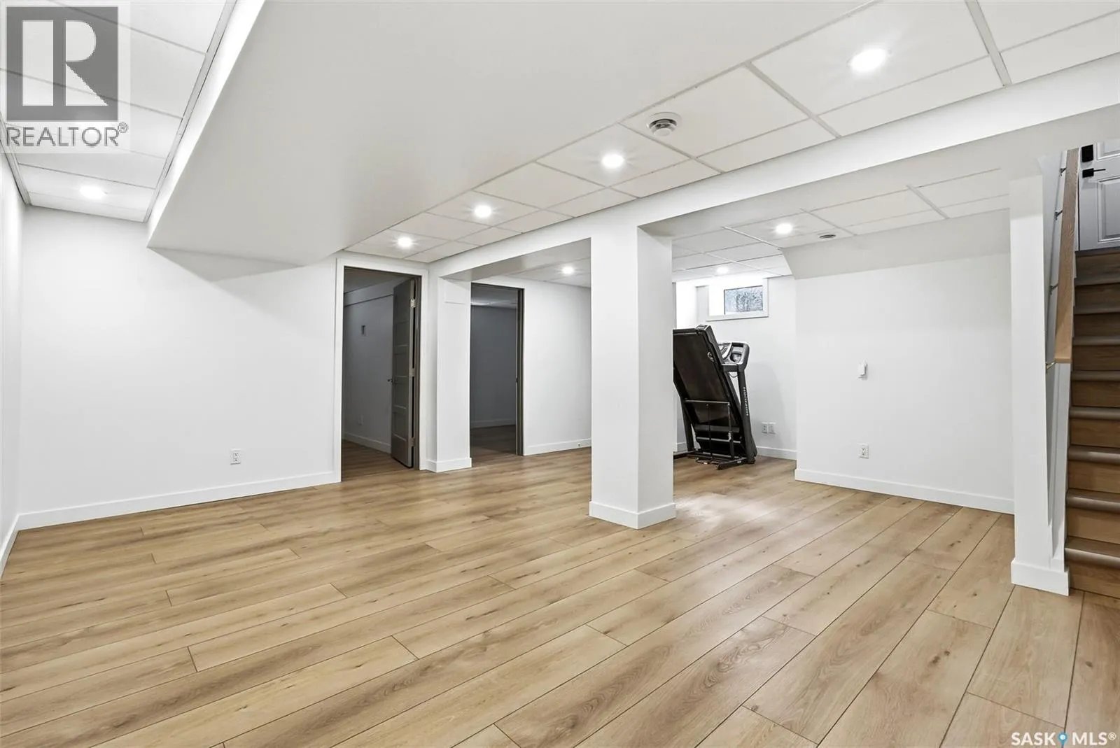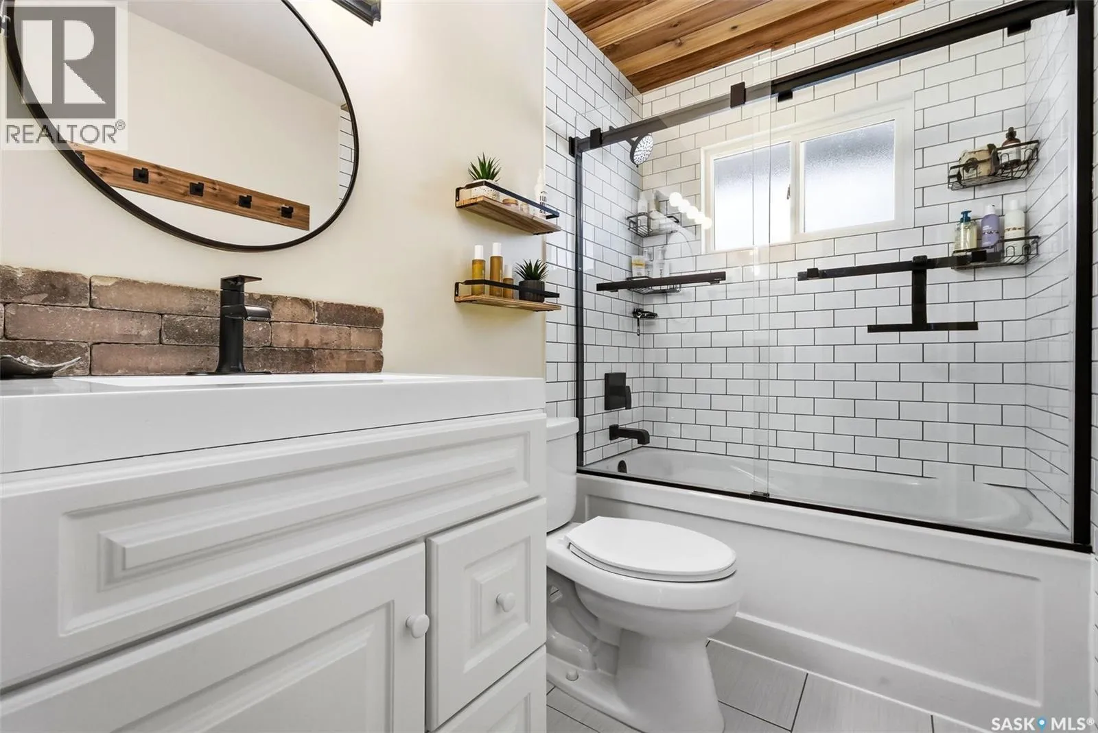 Loaded with recent upgrades and ready to move into! This fully developed Whitmore Park bungalow is so well maintained and offers desirable features throughout. A spacious bright, living room, with attractive hardwood flooring and a wood burning fireplace, is bright and opens to the dining area. The kitchen has ample oak cabinetry, stainless steel appliances and a tile floor. There are three bedrooms on the main floor all featuring hardwood floors. The bedroom facing the backyard includes a half bath making it an excellent spot for a home office. The four piece bath was recently updated and has tile flooring. New basement development includes a large recreation room, two bedrooms with egress windows, a den, a three piece bath and a utility room. This home has central air conditioning, some triple pane PVC windows and architectural shingles. Enjoy the fenced and meticulously maintained private backyard from the large deck. A large driveway off of the street provides ample parking while two sheds in the backyard offers plenty of storage. Located in a family friendly neighbourhood, close to school, parks and shopping. Call today to book your viewing! (id:27476)