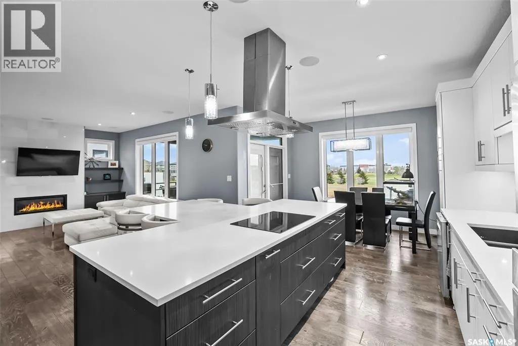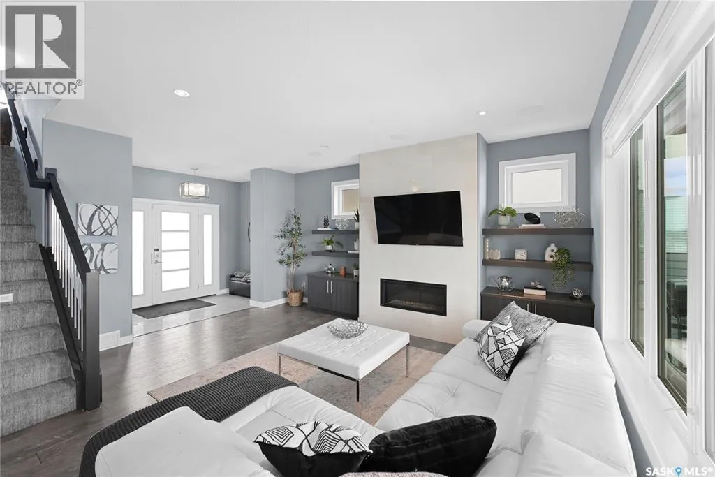 LOCATION, LOCATION!! Welcome to 4357 Albulet Dr - a stunning Devereux built 2-storey 1,970 sq ft home with the walk-out basement. The main floor showcases an impressive open-concept layout and is designed for people who love social gatherings. The generous living room includes a custom built-in gas fireplace with stylish shelving, while abundant windows fill the space with natural light. The kitchen features extensive cabinetry, elegant quartz countertops, a large unique T-shaped island perfect for meal prep and social dining, and a walk-in pantry. The dining area opens to a big covered balcony, where you can enjoy your evenings and weekends looking at the green space and the beautiful park. Upstairs, a bright and versatile bonus room above garage with 10 feet ceiling offers versatility and adapts to your needs as a lounge, a play area, or as a home office. The master bedroom features large windows, an ensuite with tile flooring, separate shower, corner soaker tub, and dual sinks. The master bedroom also leads to another balcony. Two additional bedrooms share a full 4-piece bathroom. The fully developed walk-out basement expands your living space with a 4th bedroom, family room, a den, and a 3-piece tiled bathroom. The room with the exercise material can be converted to or used as a 5th bedroom. Additional storage and mechanical room provide excellent organization. The oversized double attached garage is partially insulated. A $30,000 value (approx) Control 4 sound system, alarm and security camera system is included. The exterior of the house is fully landscaped with maintenance free front yard. In the back, sod, garden area and large patio stone area leads to the back gate to the walking paths. Just steps from Fairchild park, Elementary school, green spaces, and walking paths, this property is ideal for families seeking comfort and convenience. GREAT LOCATION AND A BEAUTIFUL VIEW. Contact your Realtor to schedule your private viewing today (id:27476)