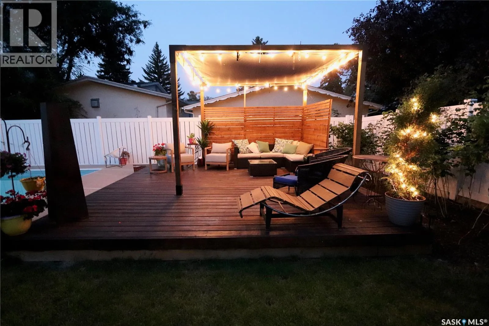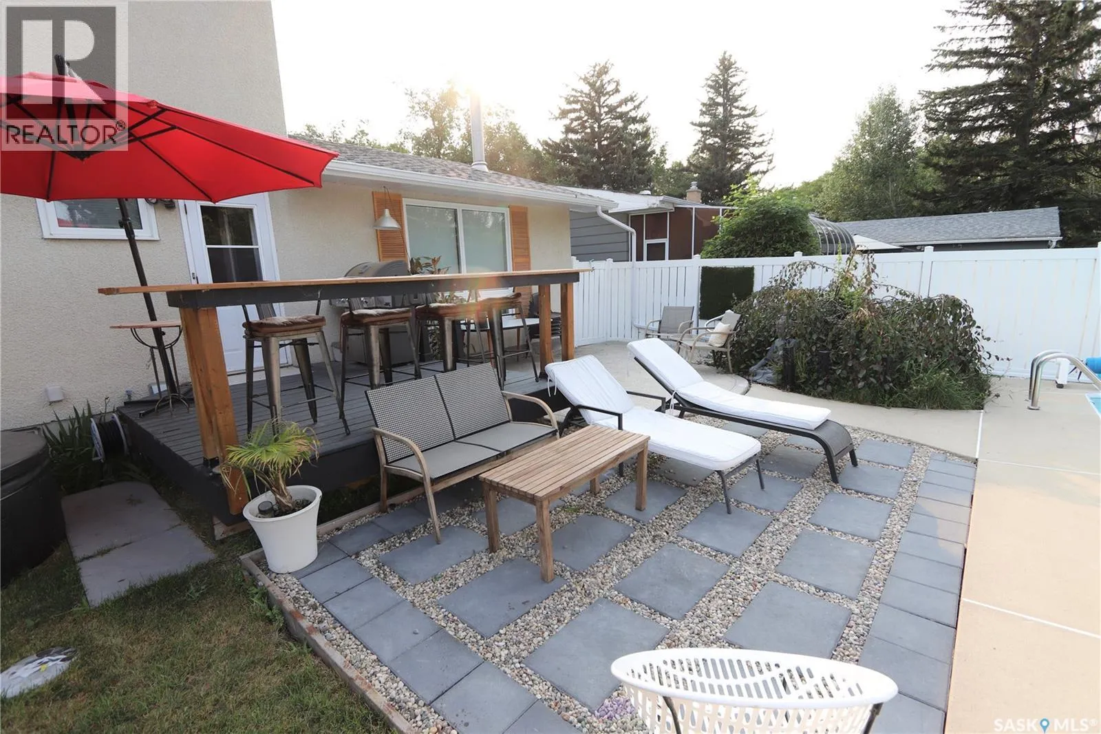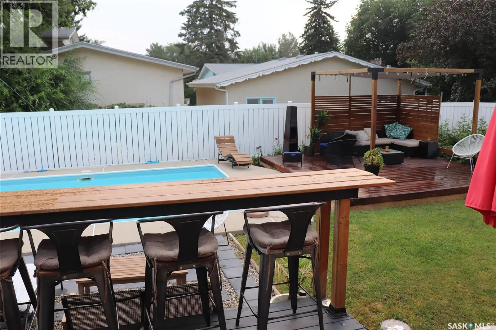 Beautifully renovated Hillsdale family home on a quiet street. 1820 square foot 2 story with 4 bedrooms, 3 baths and extensive updates and features. Modern/Contemporary style with main floor living room/dining/kitchen/bath and family room with wood burning fireplace, 4 bedrooms on the 2nd floor, developed basement with rec room and den, good sized two car attached garage, landscaped yard with in-ground pool, patio and decks. Newer windows, hardwood flooring, all appliances included and much more. Close to amenities, U of R, parks and schools. Flexible possession available and much more. (id:27476)