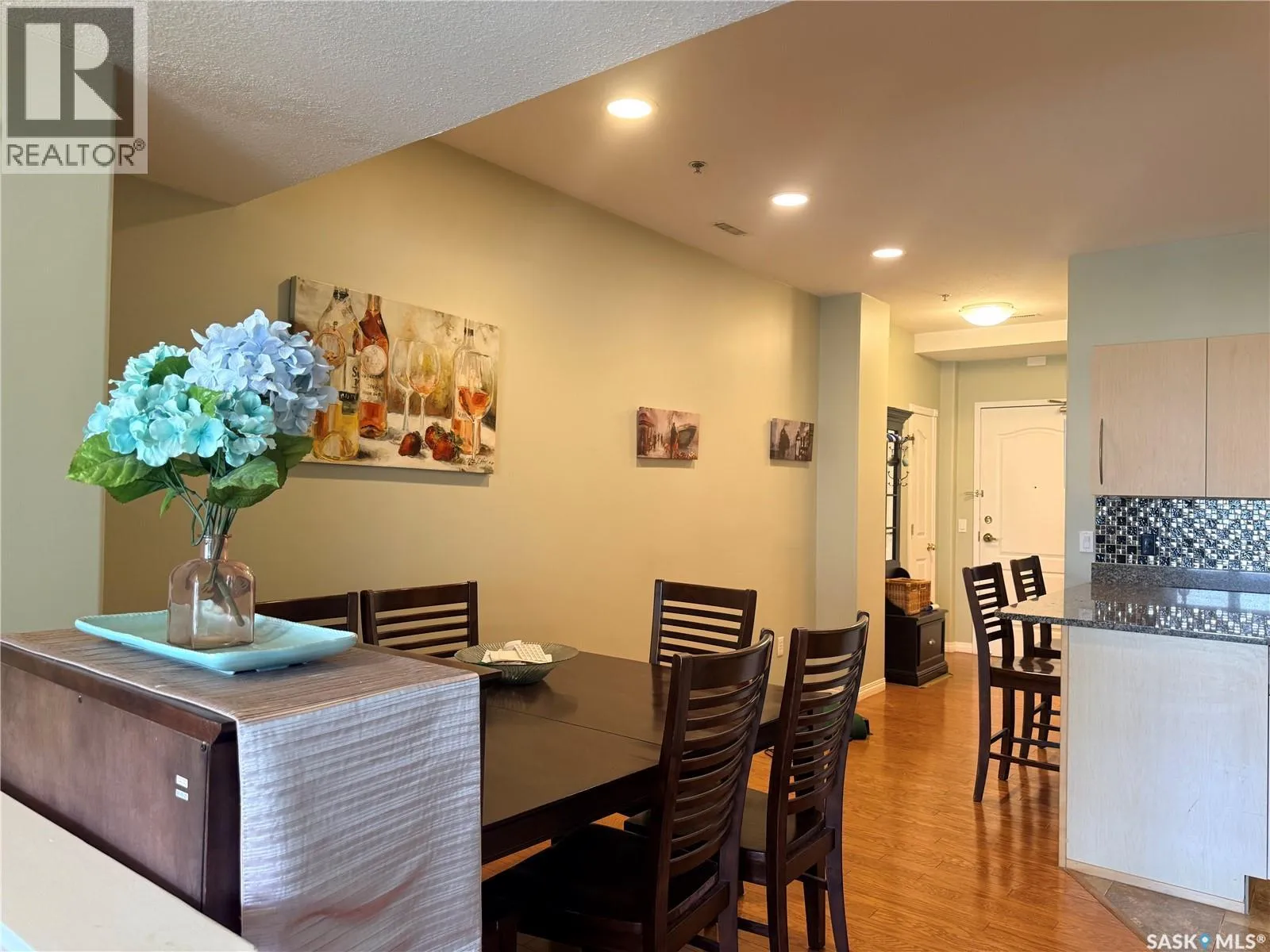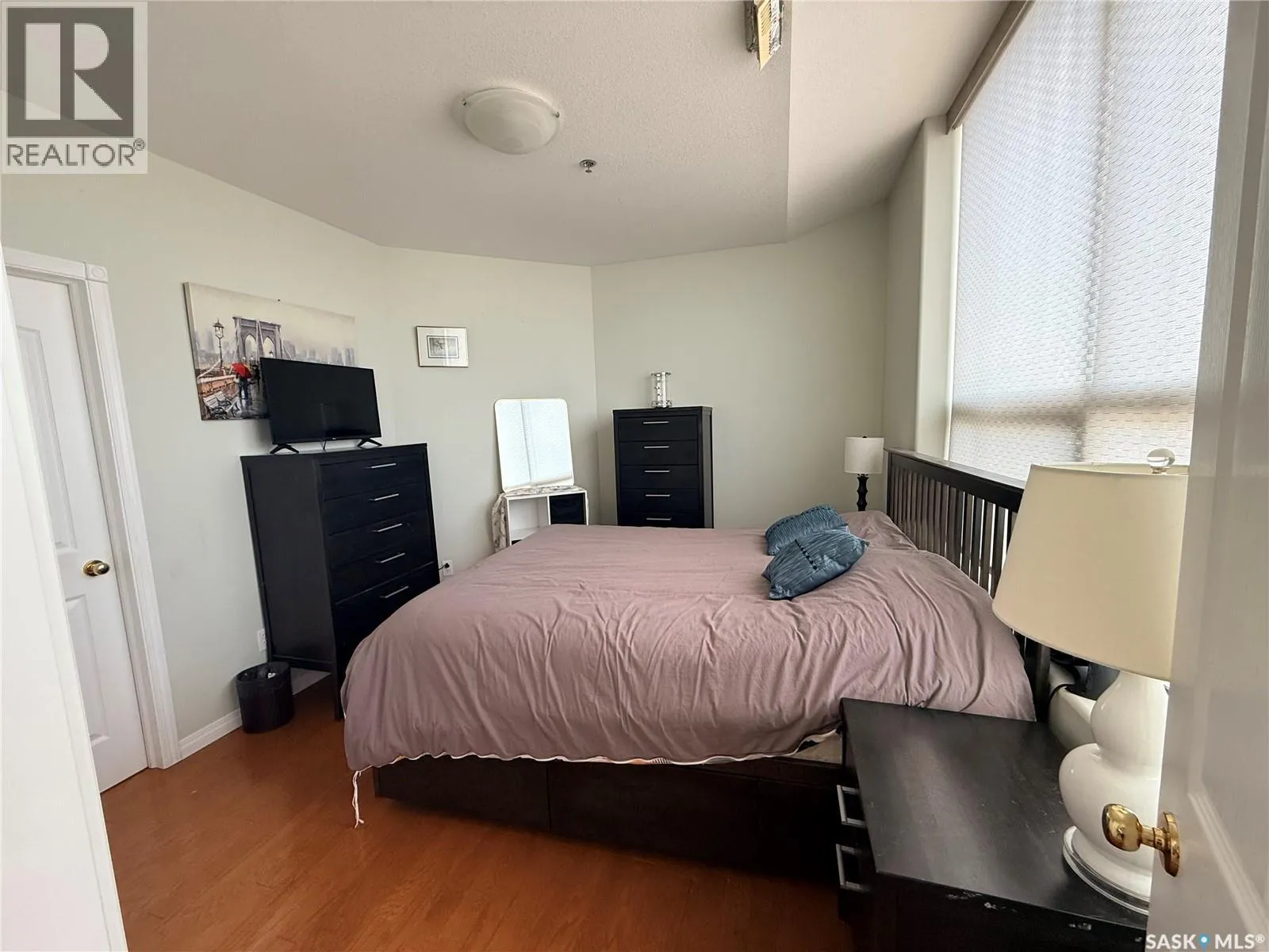Welcome to suite 1207 at 1901 Victoria Avenue, a stunning top floor, fully furnished one bedroom, two bathroom condominium offering 921 square feet of urban living in the heart of Regina. Situated on the upper floors added in 2006, this suite combines modern finishes with an elevated address that few buildings in the city can match. The open concept kitchen is a true centrepiece, finished with rich granite countertops, a mosaic tile backsplash, light cabinetry, and stainless steel appliances including a refrigerator, electric range with microwave, and dishwasher. A breakfast bar with seating flows seamlessly into the generous dining area with hardwood floors, perfect for entertaining. The living room continues the open feel with a corner gas fireplace, sliding patio doors leading to your private balcony, and soaring windows that flood the space with natural light from your top floor vantage point. The bedroom is spacious and well appointed, featuring hardwood flooring, large windows with privacy blinds. There is a three piece bathroom finished with granite counters, vanity cabinetry, and tile flooring. A second four piece bathroom serves guests with the same quality finishes throughout. This condo is being offered fully furnished and move in ready. Underground parking is included, a true premium in Reginaâs climate. Whether youâre a professional seeking a turnkey downtown lifestyle or an investor looking for an exceptional rental property, suite 1207 at 1901 Victoria delivers on every front. (id:27476)
