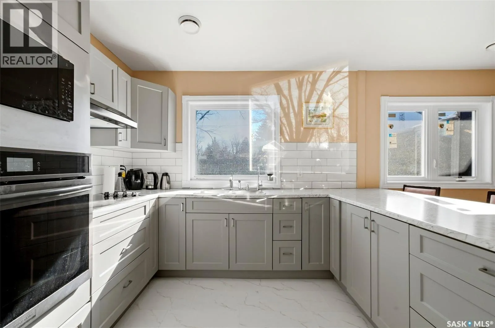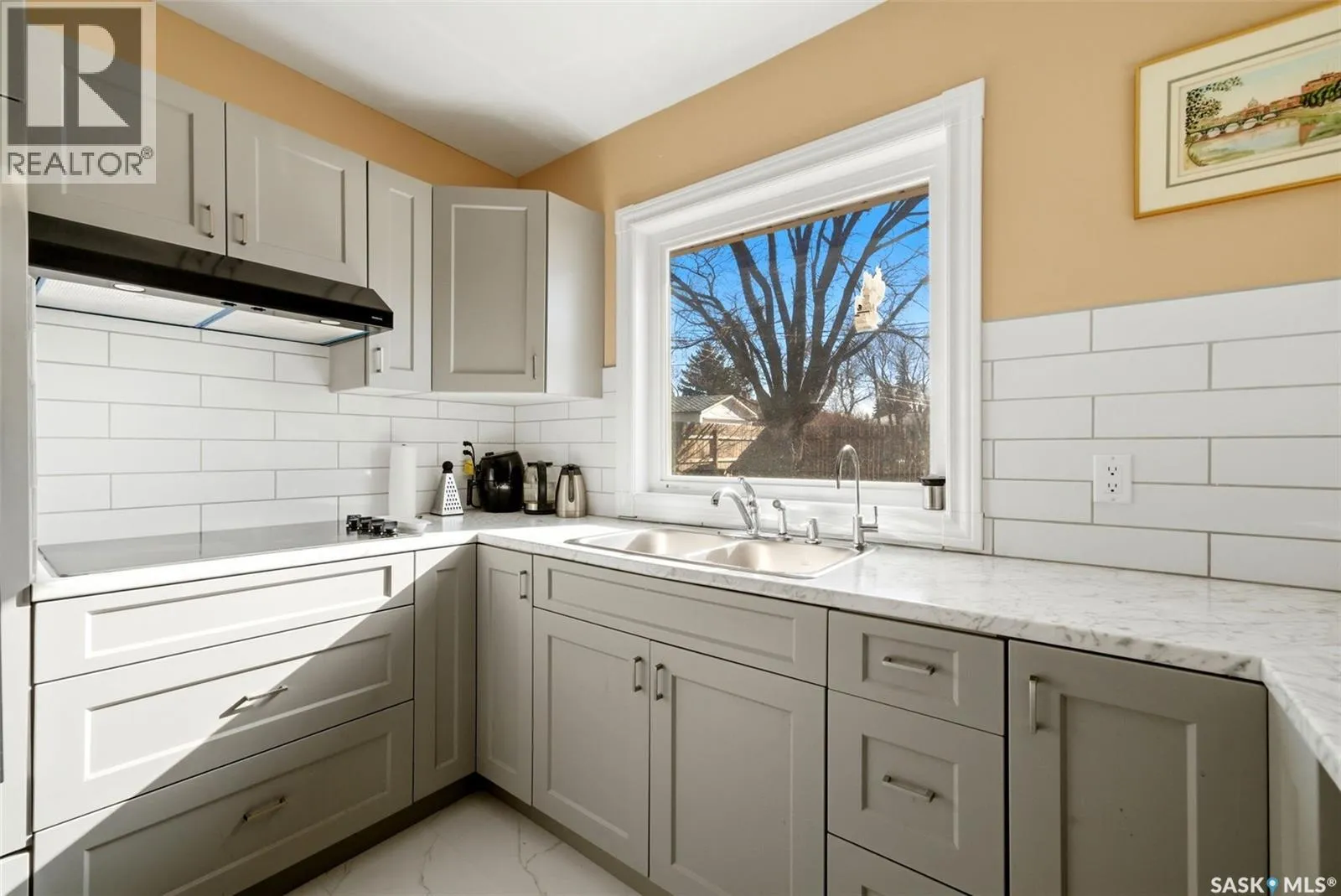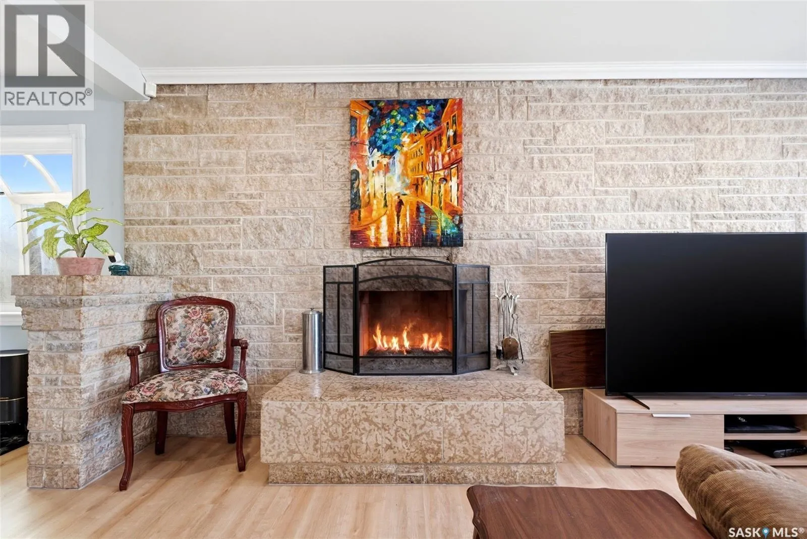 Bright, move-in ready bungalow with a warm, welcoming feel throughout. The main floor offers a spacious living room with a striking stone fireplace feature wall, large front windows, and built-in shelving, plus a fully updated kitchen completed in 2023 with modern cabinetry, counters, appliances, tile backsplash, built-in oven, cooktop, and an oversized island with seating. The main bathroom was also completely redone in 2023 with updated fixtures, plumbing, surround, and finishes. Good-sized bedrooms and new vinyl flooring throughout add to the homeâs clean, contemporary appeal. Extensive upgrades include central air (2021), new roof decking and shingles (2022), spray foam attic insulation (2022), all new vinyl triple-pane argon-filled windows (2023), upgraded utilities and aluminum mast (2023), new studding and shiplap insulation (2023), plus updated drywall, paint, ceilings, walls, and baseboards throughout (2024). Additional improvements include a high-efficiency furnace (2024), smart programmable thermostat (2024), smart high-efficiency water softener (2024), and rented high-efficiency water heater (2024). Outside, youâll find a large fenced yard, an enclosed patio/sunroom area (in need of repair), and a detached single garage with extra parking out front. A great opportunity for buyers looking for comfortable one-level living with stylish updates and functional space. (id:27476)