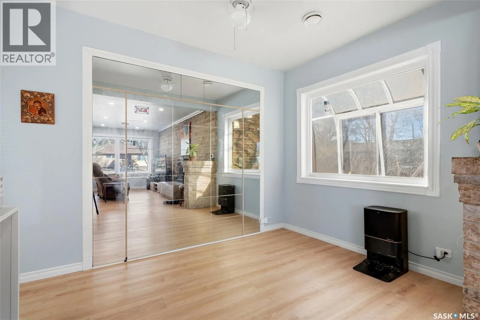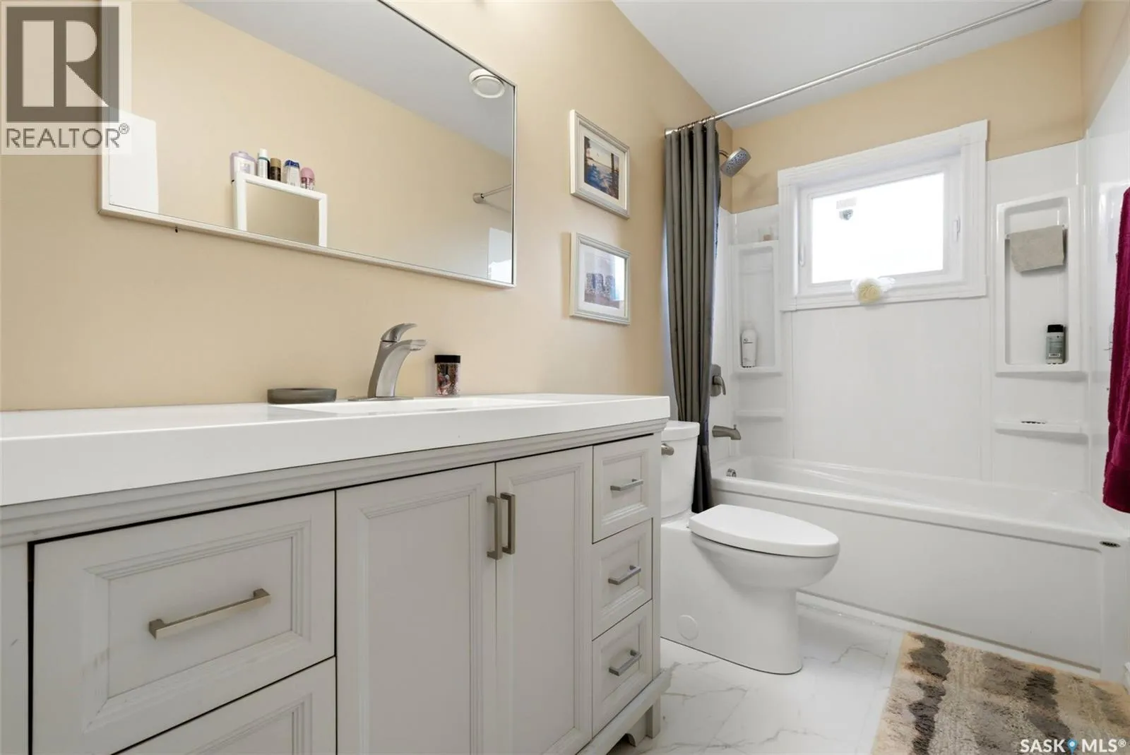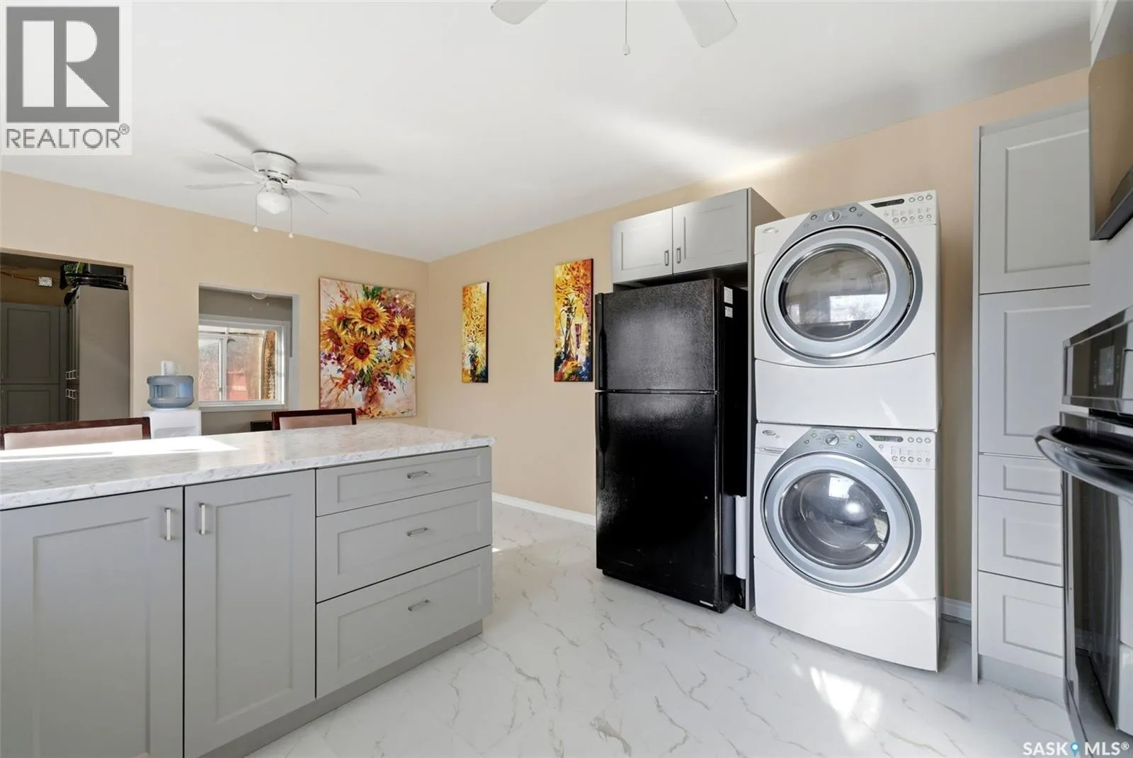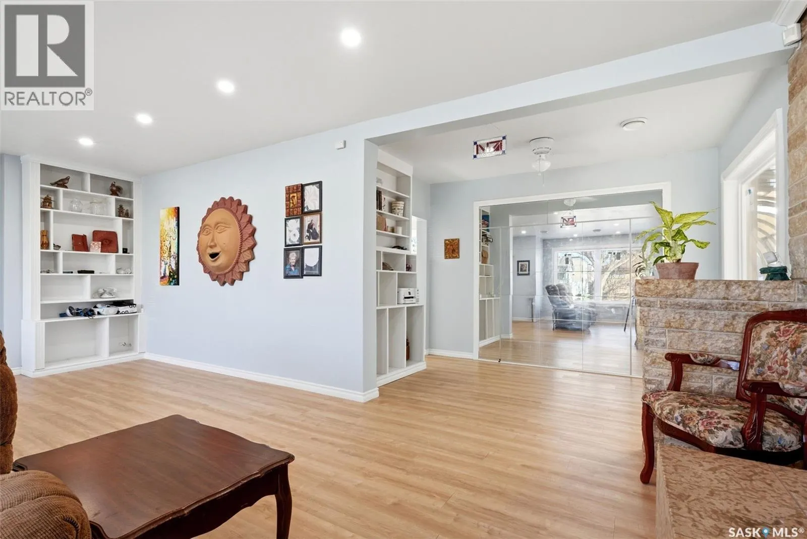 Bright, move-in ready bungalow with a warm, welcoming feel throughout. The main floor offers a spacious living room with a striking stone fireplace feature wall, large front windows, and built-in shelving, plus a fully updated kitchen completed in 2023 with modern cabinetry, counters, appliances, tile backsplash, built-in oven, cooktop, and an oversized island with seating. The main bathroom was also completely redone in 2023 with updated fixtures, plumbing, surround, and finishes. Good-sized bedrooms and new vinyl flooring throughout add to the homeâs clean, contemporary appeal. Extensive upgrades include central air (2021), new roof decking and shingles (2022), spray foam attic insulation (2022), all new vinyl triple-pane argon-filled windows (2023), upgraded utilities and aluminum mast (2023), new studding and shiplap insulation (2023), plus updated drywall, paint, ceilings, walls, and baseboards throughout (2024). Additional improvements include a high-efficiency furnace (2024), smart programmable thermostat (2024), smart high-efficiency water softener (2024), and rented high-efficiency water heater (2024). Outside, youâll find a large fenced yard, an enclosed patio/sunroom area (in need of repair), and a detached single garage with extra parking out front. A great opportunity for buyers looking for comfortable one-level living with stylish updates and functional space. (id:27476)
