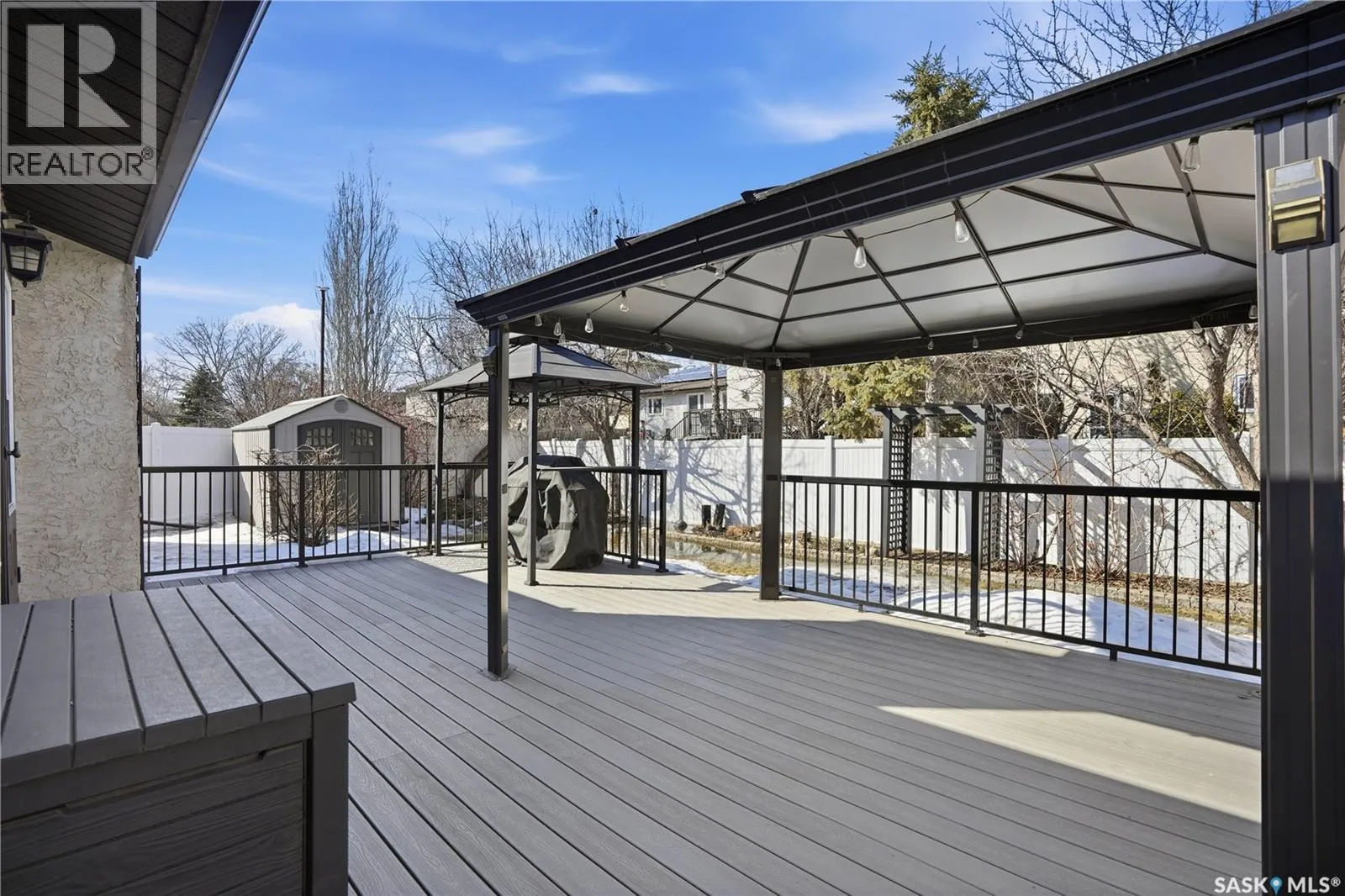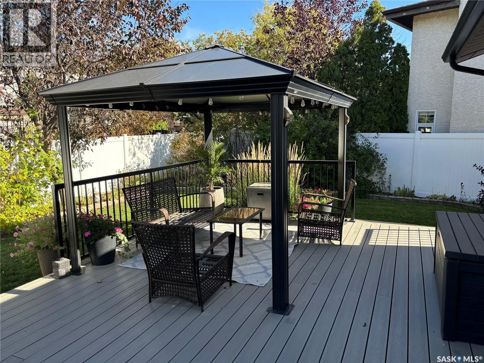 L:2 BL:22 PL:81R54051 Ext.0 Welcome to 2206 Mahony Cres. This beautiful bungalow is located in Reginaâs highly sought-after community of Gardiner Park. Built in 1982, this truly impeccable 1,587 sq ft home is sure to impress! Upon entry, the warmth of sunshine paired with neutral colors is relaxing & offers a peaceful energy throughout the stylish, exquisite home. The entry welcomes you into a lovely front living area with large south-facing windows & showcases rich hardwood flooring & an airy, light feel. A natural flow from one room to the next is seamless, & the classic dining area is both timeless & versatile. The kitchen is the heart of the home & this one is a true highlight offering great space, extensive cabinetry, granite, tiled backsplash, an abundance of drawers & cabinets, updated appliances, & modern eat-up island. The cozy family with a gas fireplace & direct access to the backyard is convenient & impressive. Completing the main floor is a tiled full bathroom with quartz sink, large laundry room with storage, & three generous-sized bedrooms with the primary bedroom featuring an elegant ensuite with tiled shower, marble flooring, barn door & more! The fully developed basement adds a tremendous amount of extra living space, with 2 bedrooms (1 bedroom doesn't have a closet), workshop area, den, storage, roughed-in-plumbing area for a future bathroom, & areas perfect to relax in. Step outside to a backyard retreat with a huge composite deck, gazebo, gas bbq hook up, a shed, & it is fully fenced with mature trees. Worth noting: kitchen ('18), front driveway ('21), shingles ('19), hi-eff furnace & AC ('18), flooring, added attic insulation to R50 ('21), gas fireplace ('18), alarm system ('19), refresh of paint, & more! Lastly, a double garage (20x21) completes the home. Location is ideal - close to a park, shopping, a school, & east-end amenities! In a fantastic location, with loads of upgrades, this truly move-in ready, modern bungalow is a rare find in a family-friendly area. As per the Sellerâs direction, all offers will be presented on 04/19/2026 2:00PM. (id:27476)